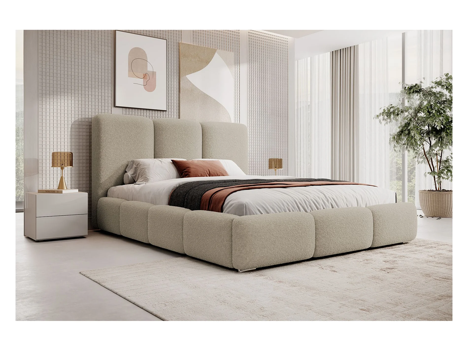 Lit coffre - 140x200 cm - en bouclette beige clair - BAURO