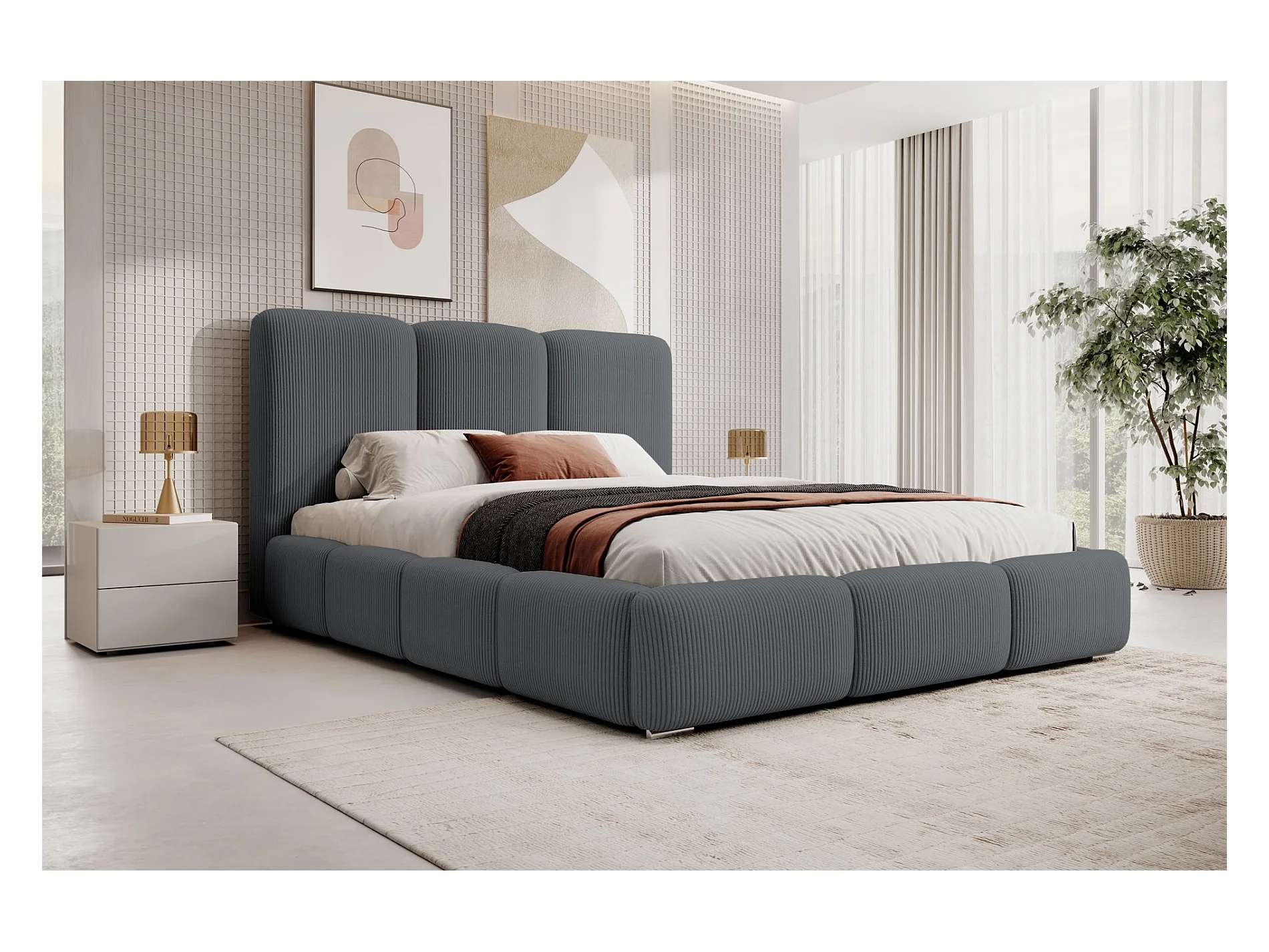 Lit coffre - 140x200 cm - en velours côtelé gris foncé - BAURO
