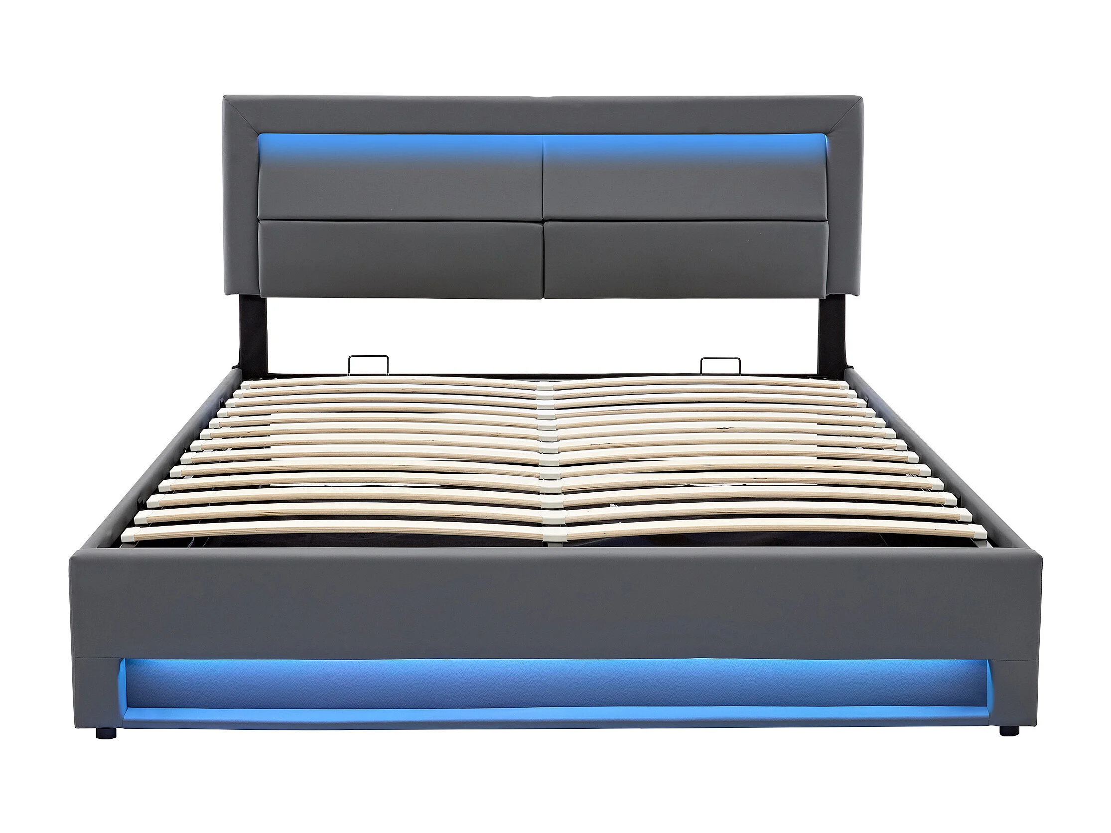 Lit coffre 140x200 cm - lit adulte avec port USB, éclairage LED et rangements - PU - gris - sans matelas