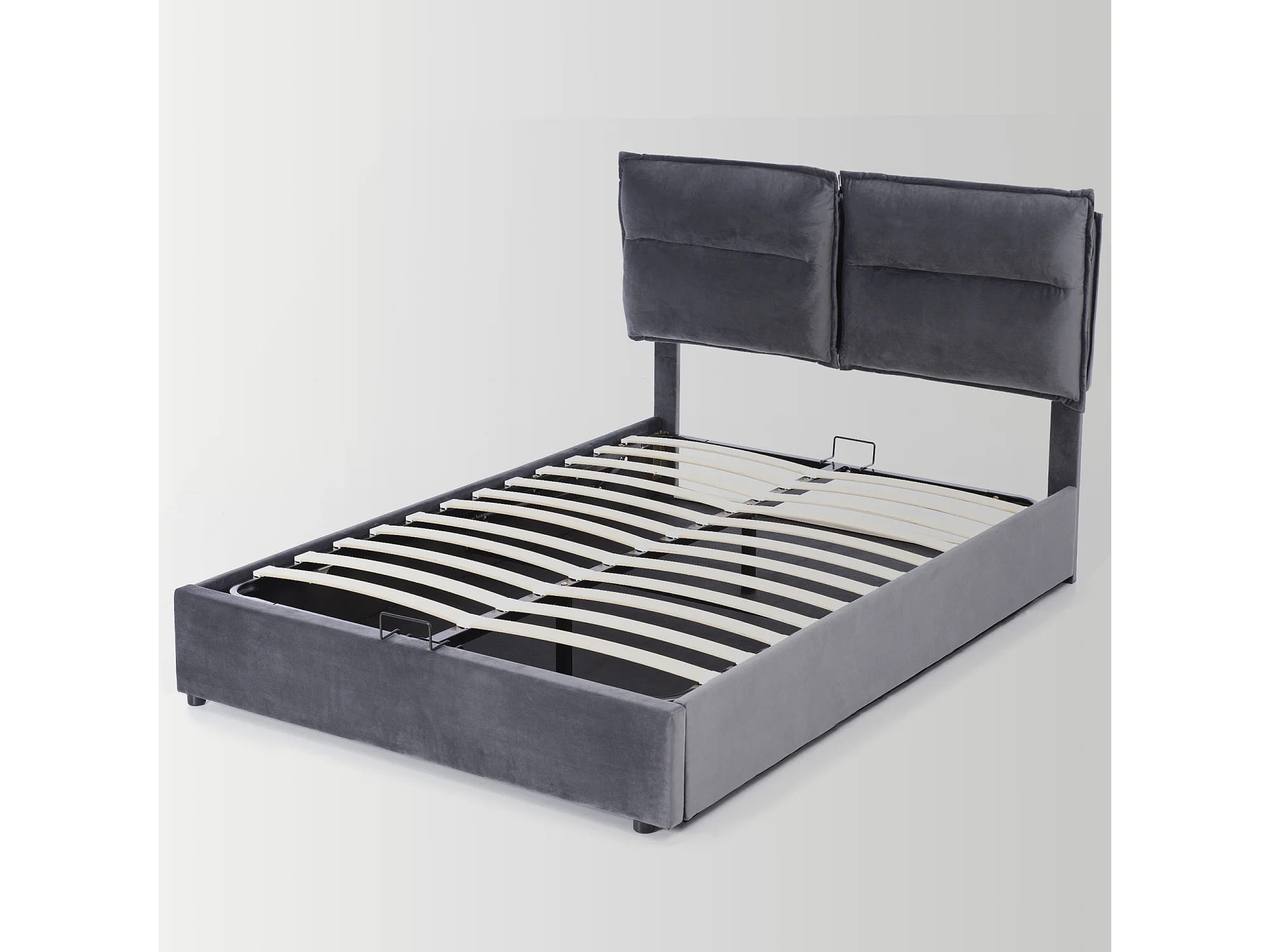 Lit coffre - 140x200cm Cadre de lit moderne en velours - gris (matelas inclus) - Sweiko