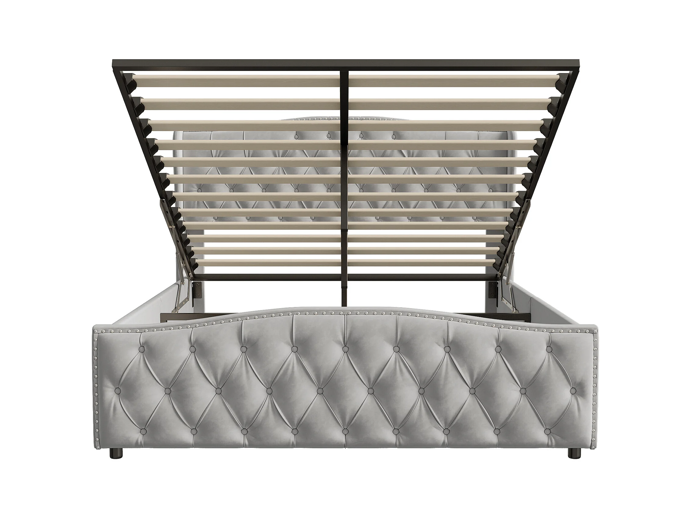 Lit Coffre 160x200 cm, Cadre de lit avec tête de Lit et sommier à Lattes, Velours, Gris