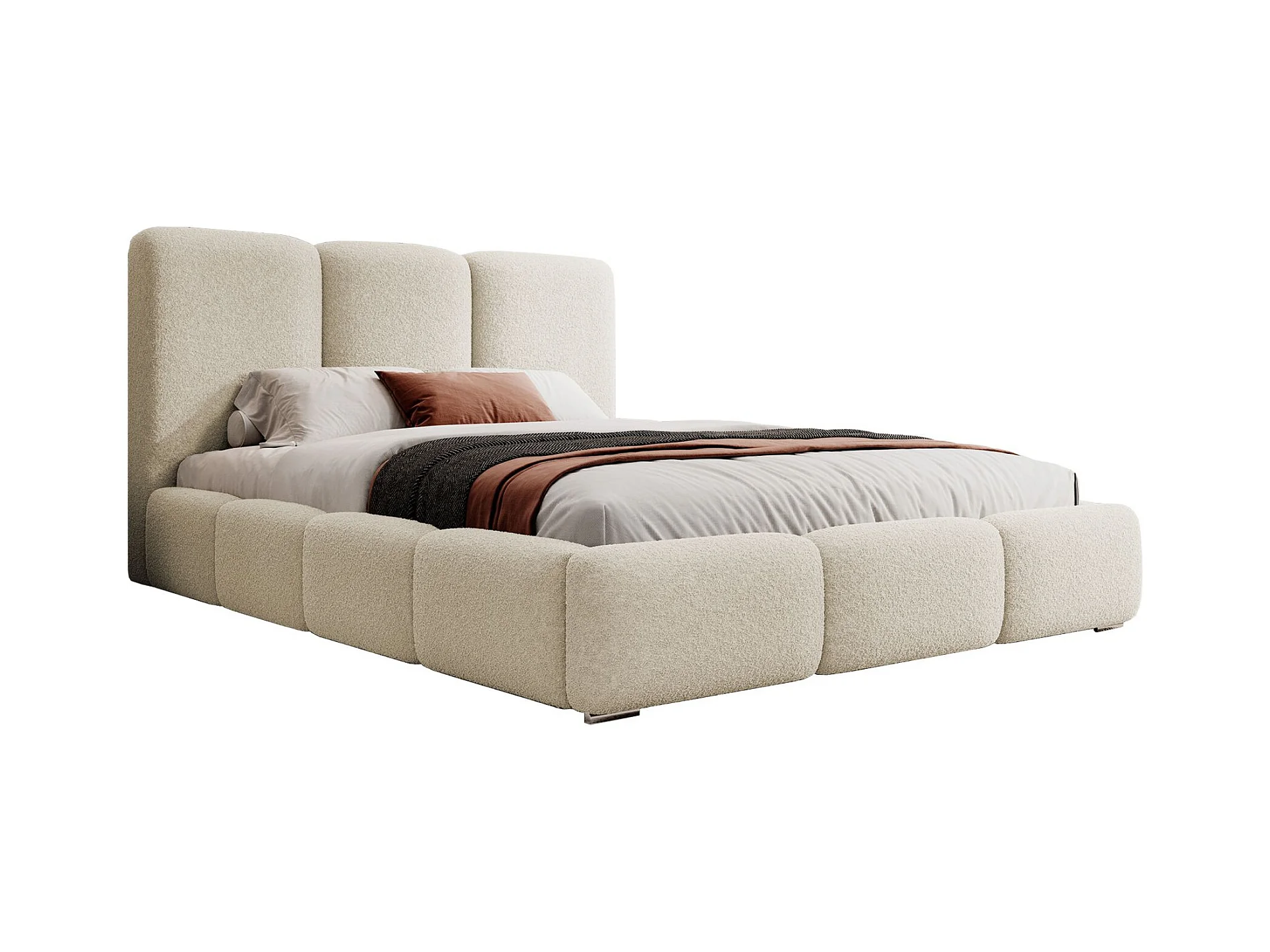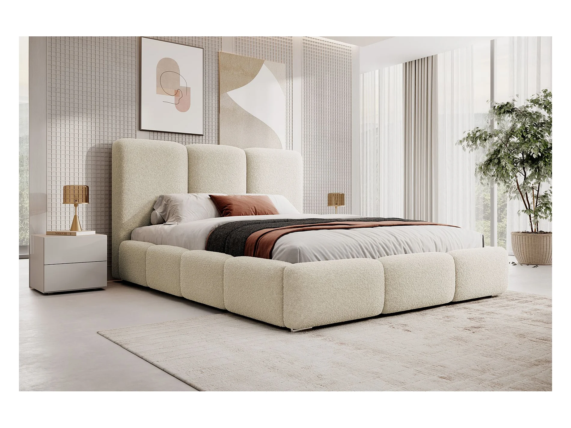 Lit coffre - 160x200 cm - en bouclette créme - BAURO