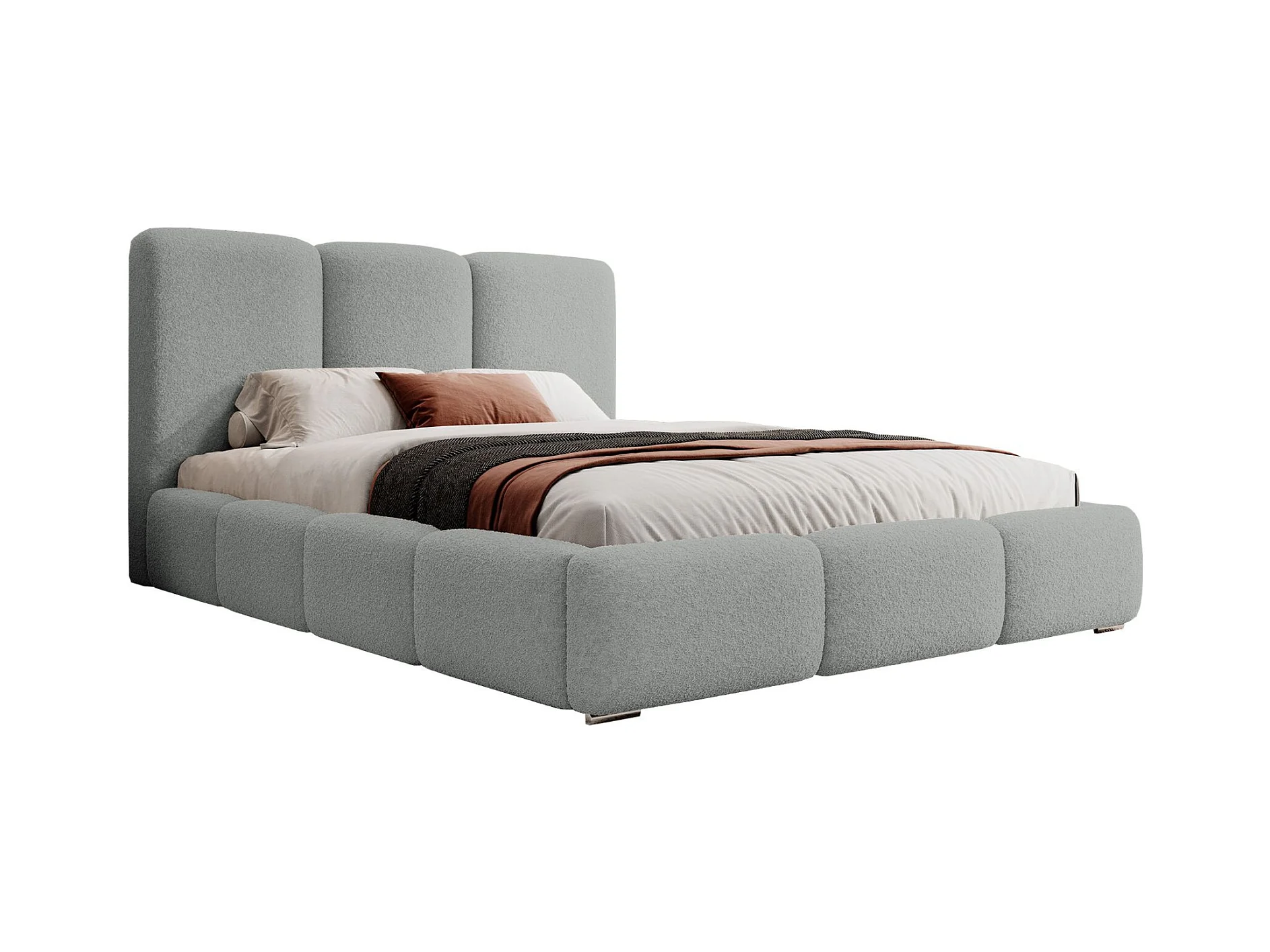 Lit coffre - 160x200 cm - en bouclette gris clair - BAURO