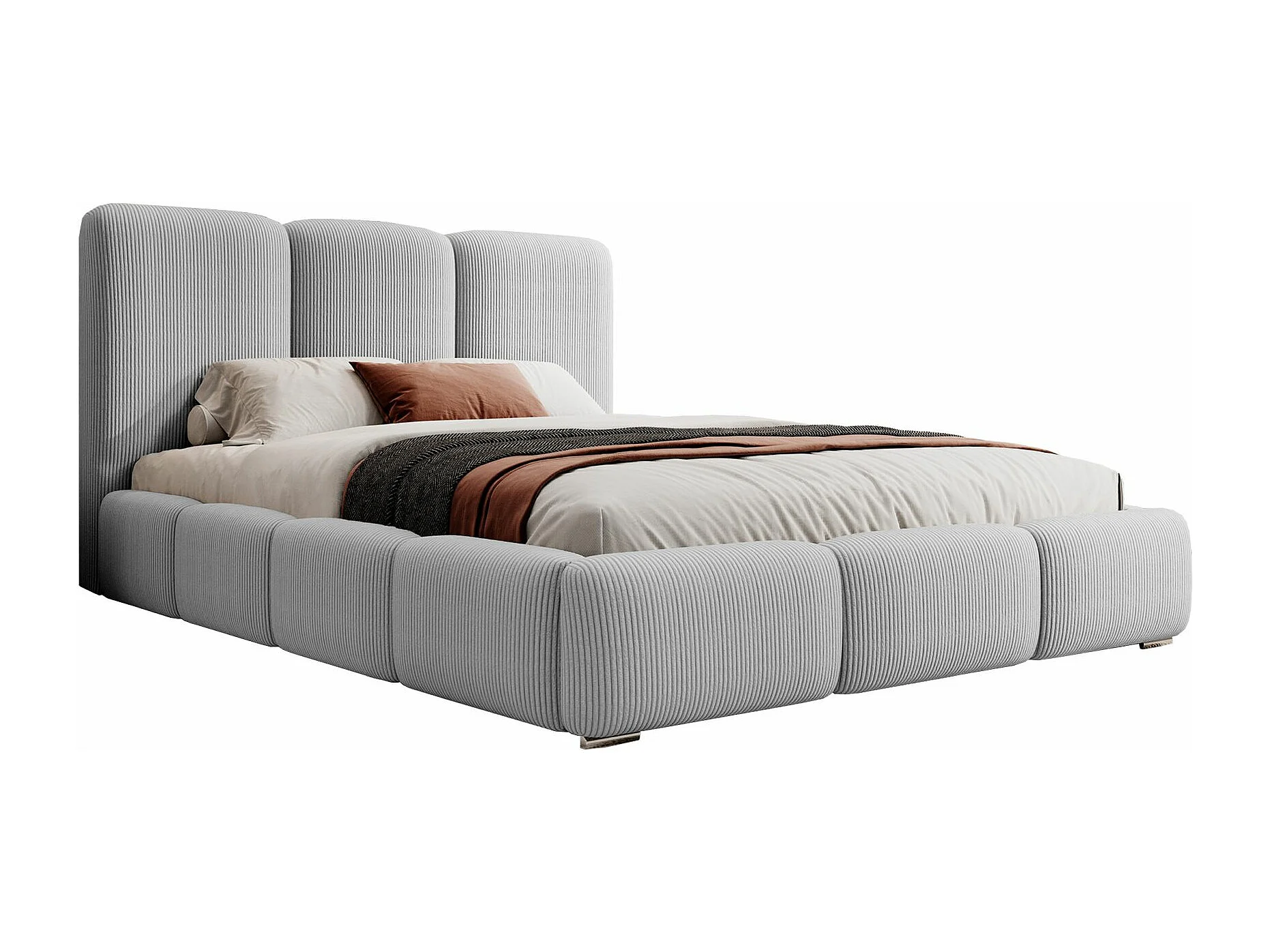 Lit coffre - 160x200 cm - en velours côtelé gris clair - BAURO