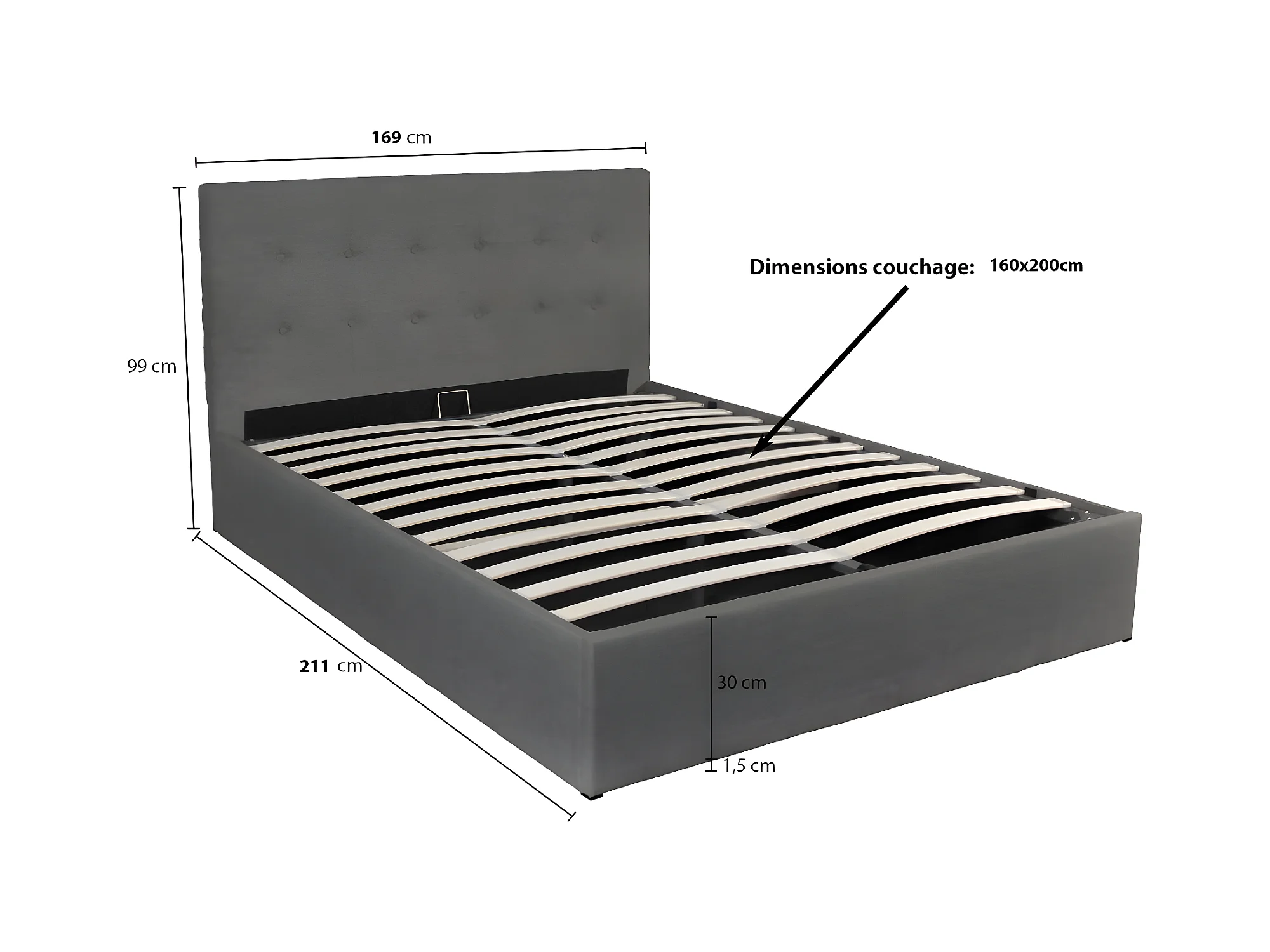 Lit coffre PARMA 160x200 + 1 sommier / Gris foncé