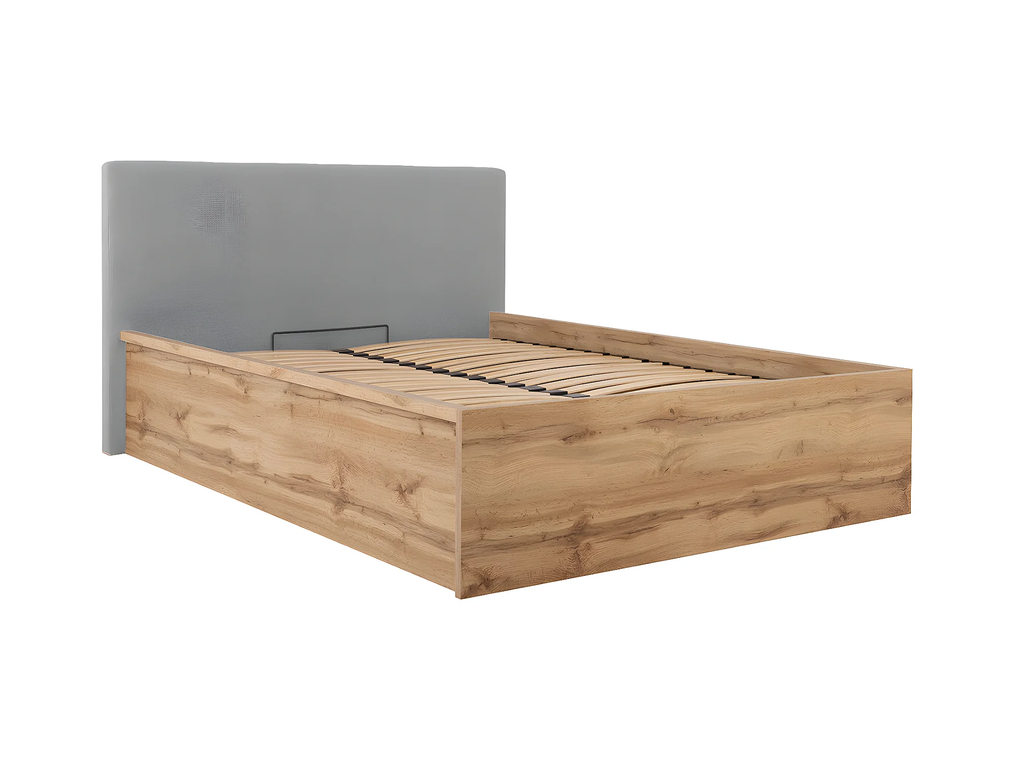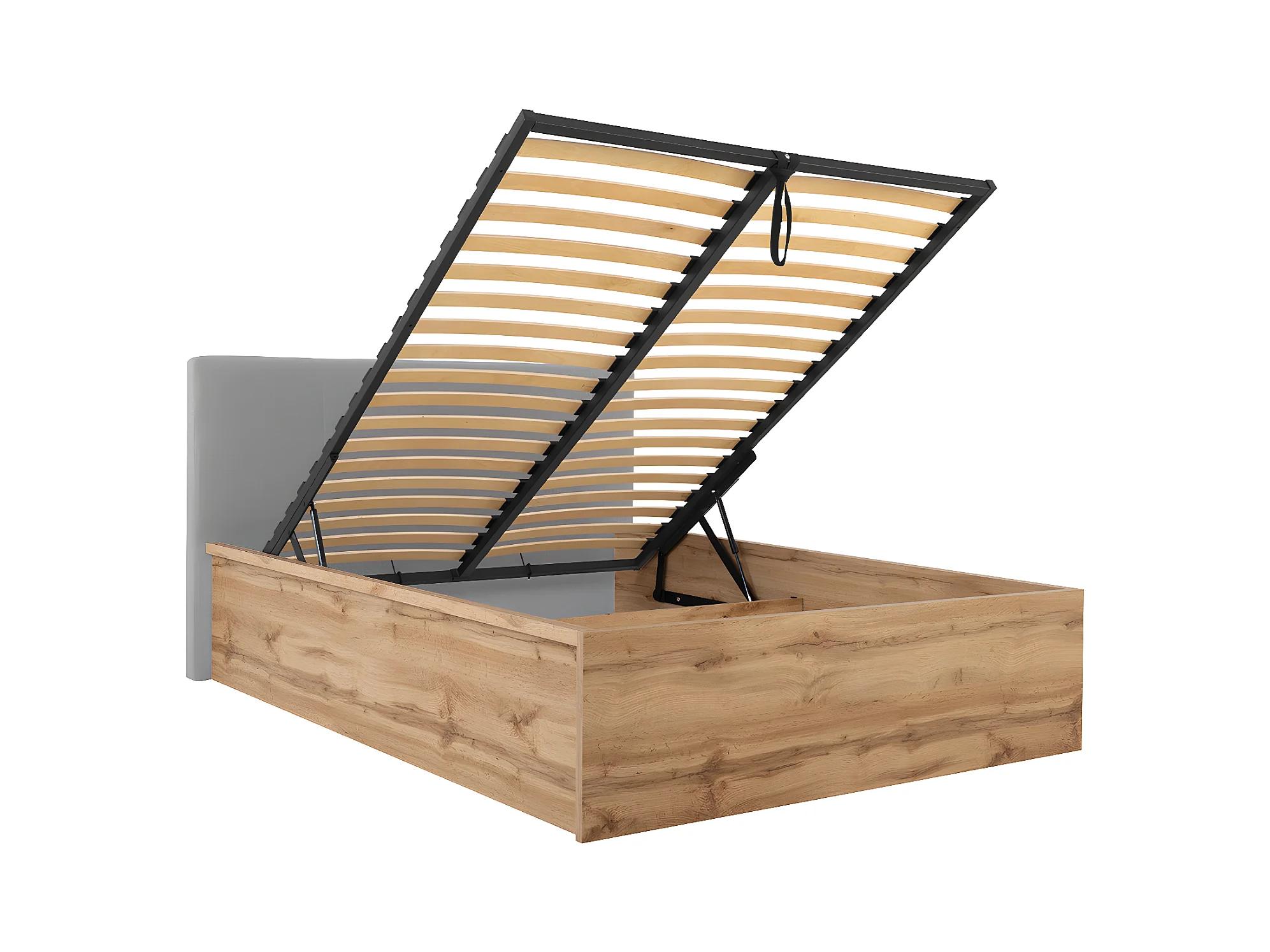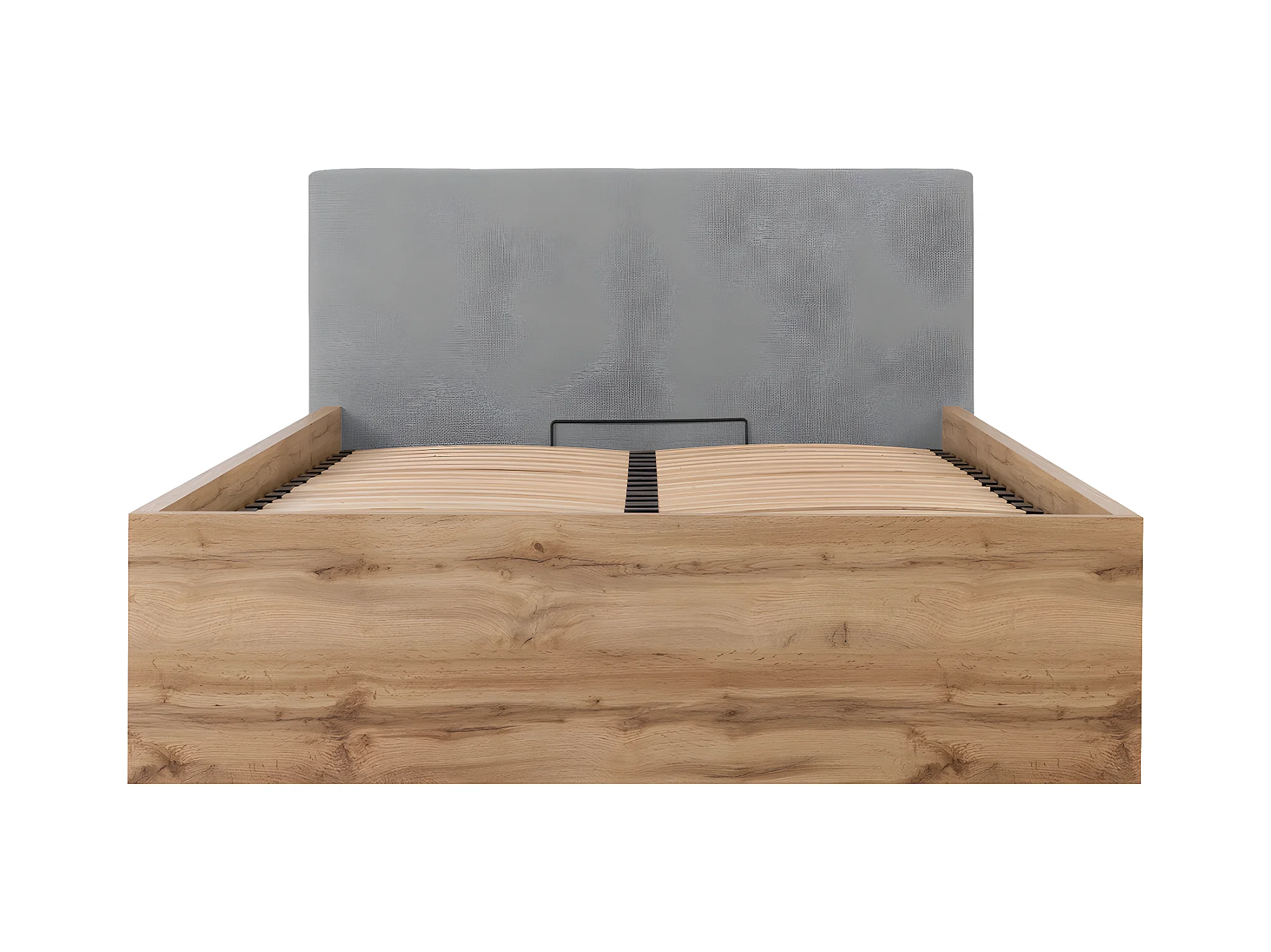 Lit coffre 160x200 tête de lit rembourrée sommier inclus Edwin Bois et Gris