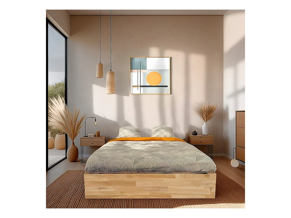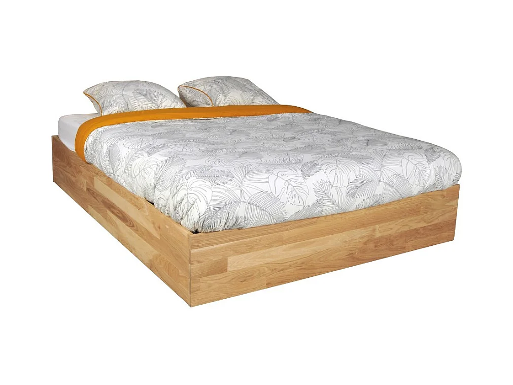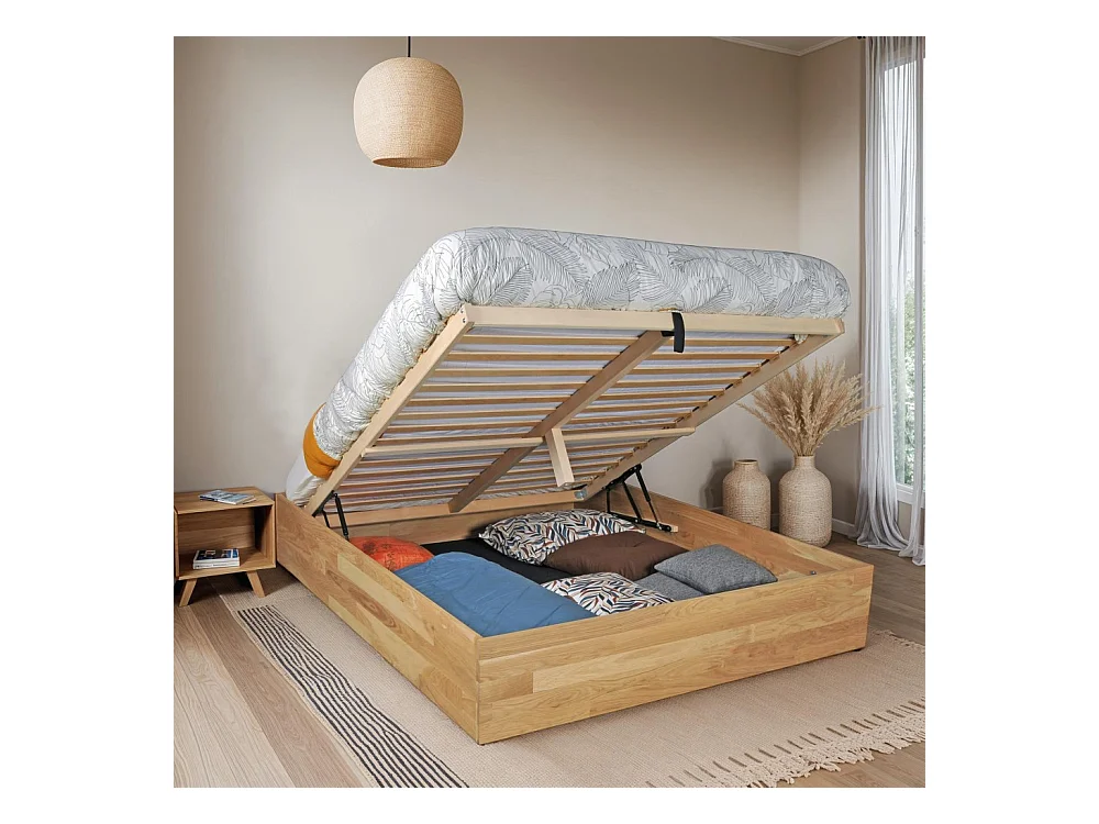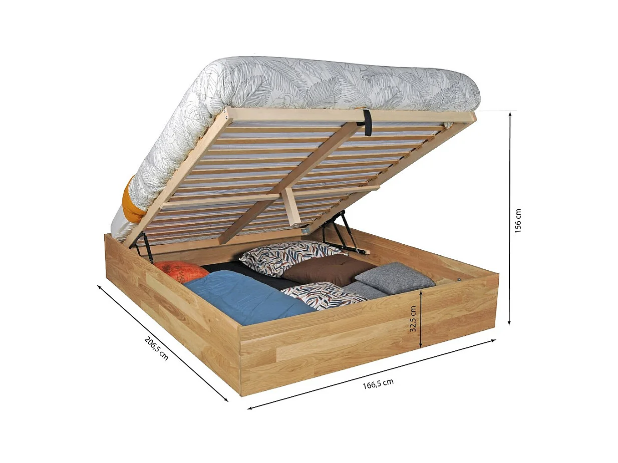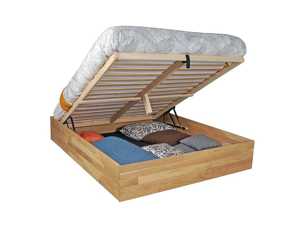 Lit coffre 160x200cm BEN + sommier/ Chêne massif huilé