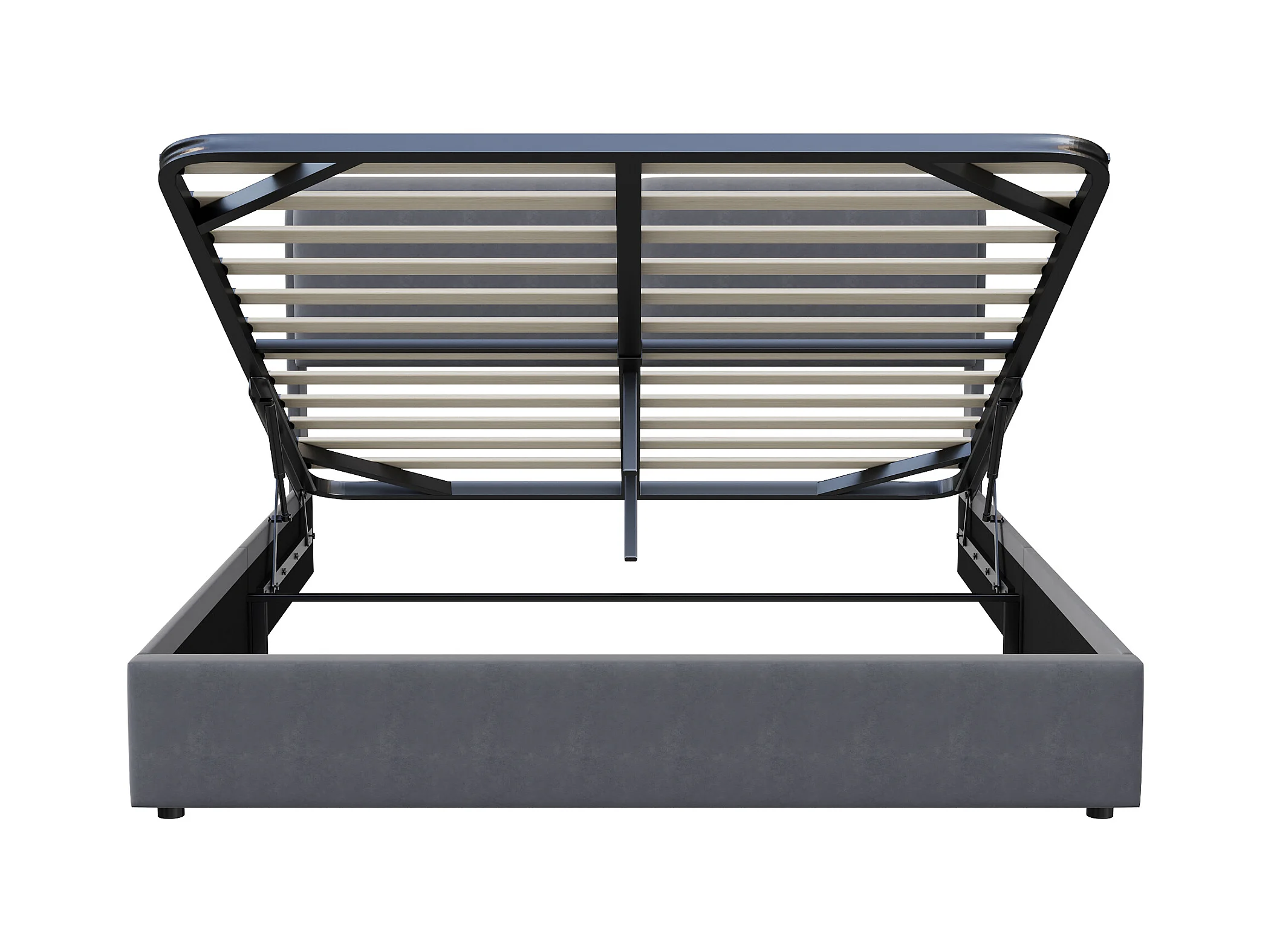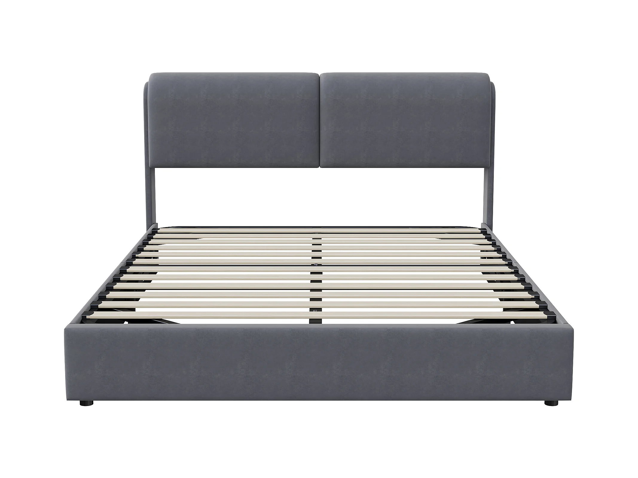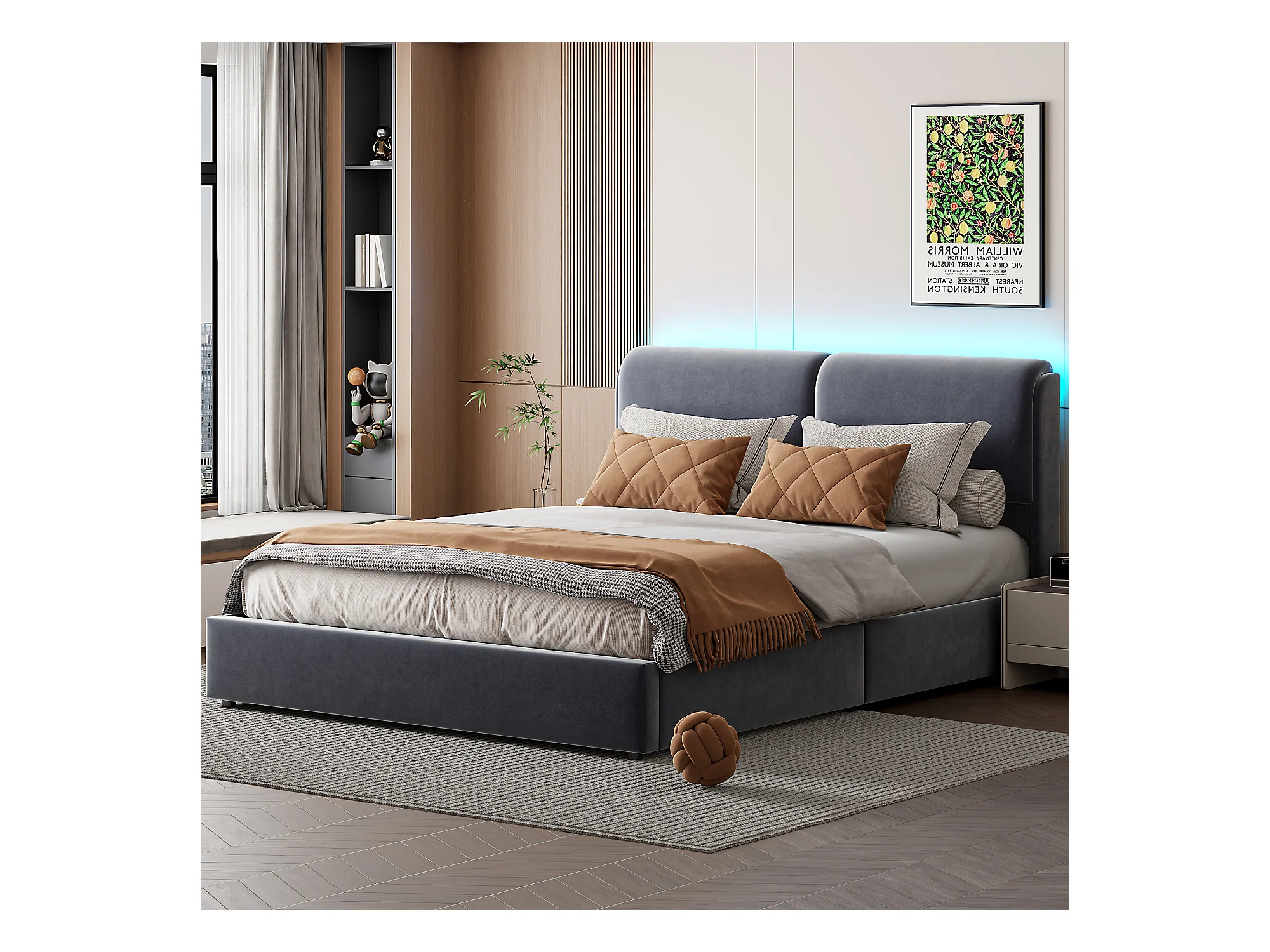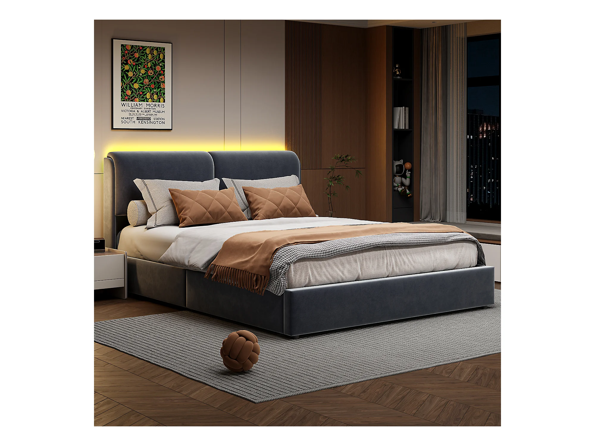 Lit Coffre 160x200cm, lit double en velours avec coffre de lit, LED, gris