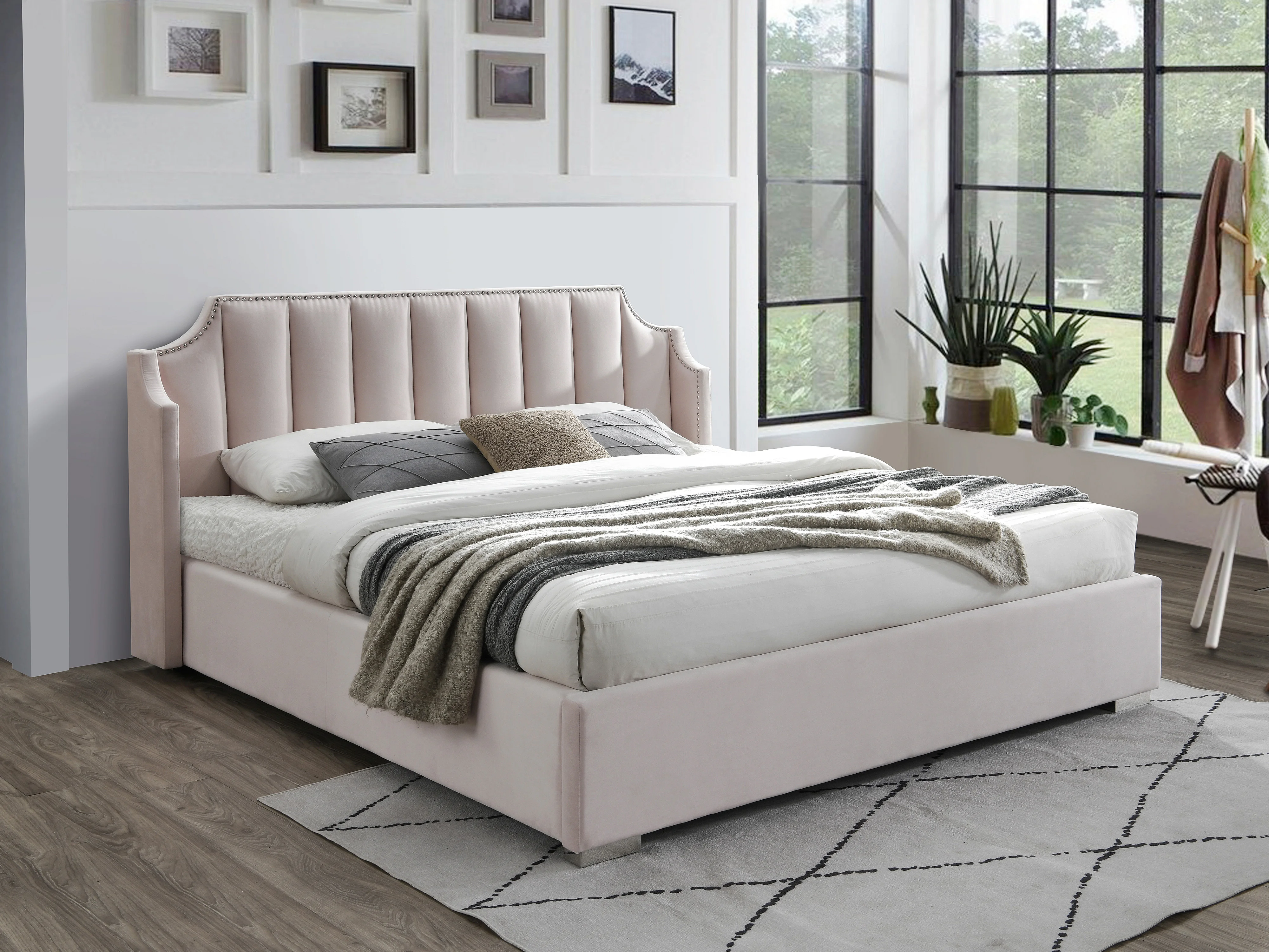 Lit coffre 180 x 200 cm avec tête de lit incurvée - Velours - Rose + Matelas - TEOMIS