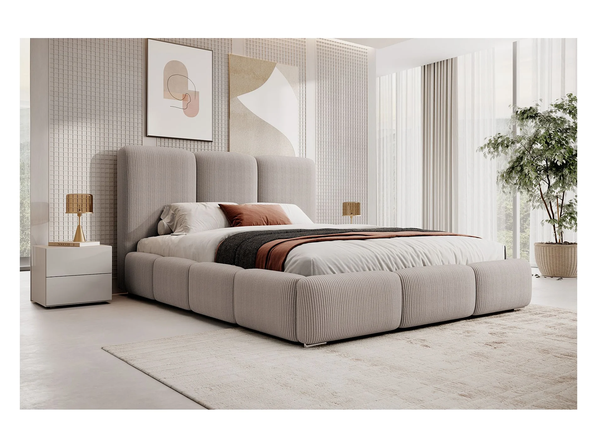 Lit coffre - 180x200 cm - en velours côtelé beige foncé - BAURO