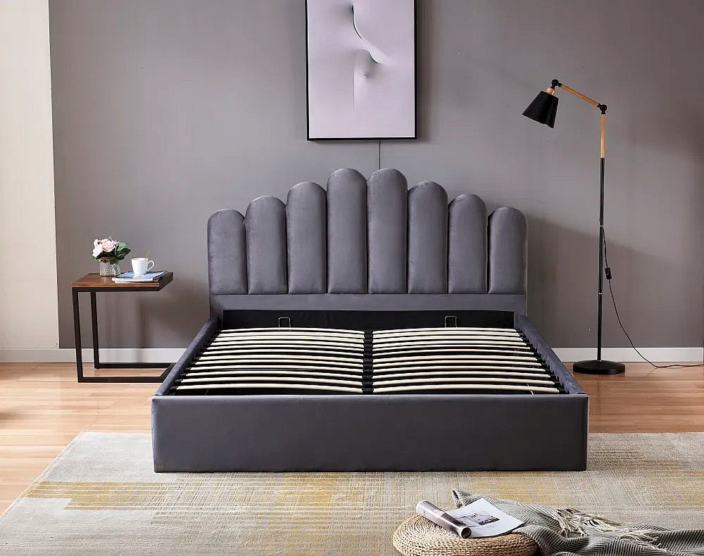 Lit coffre DOHA 2 places 140x190 cm gris sommier et coffre intégré