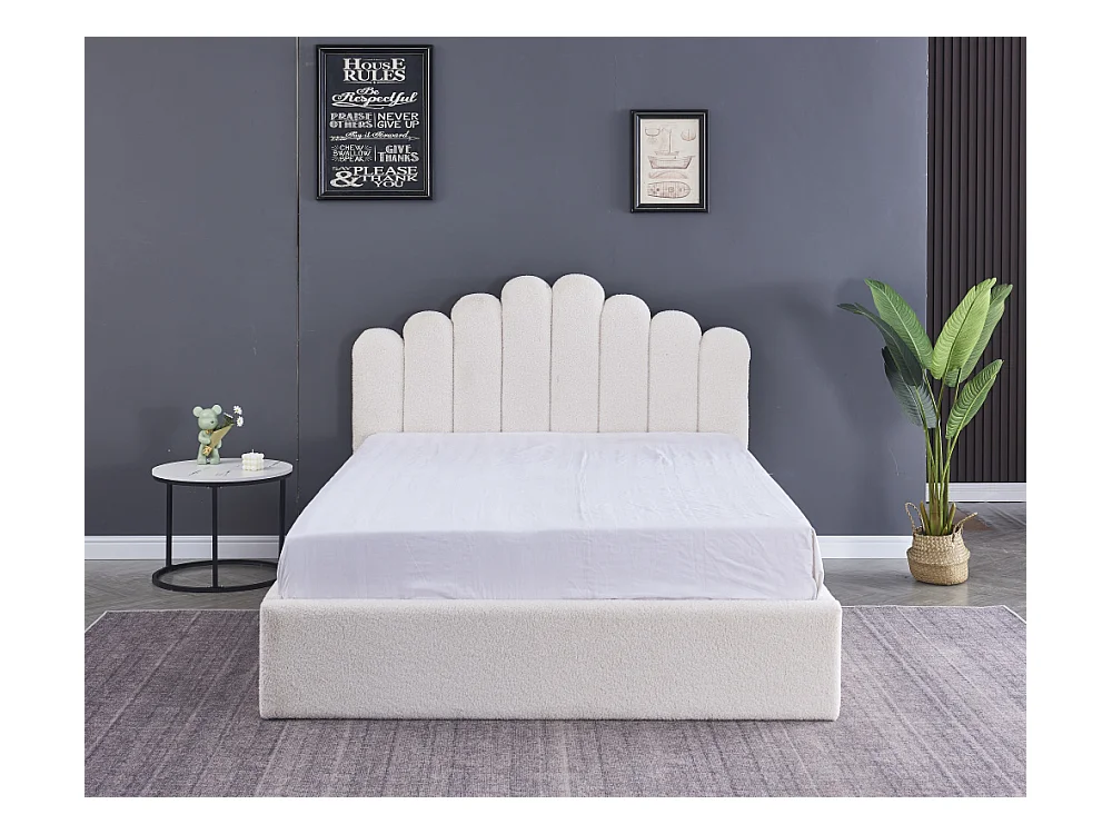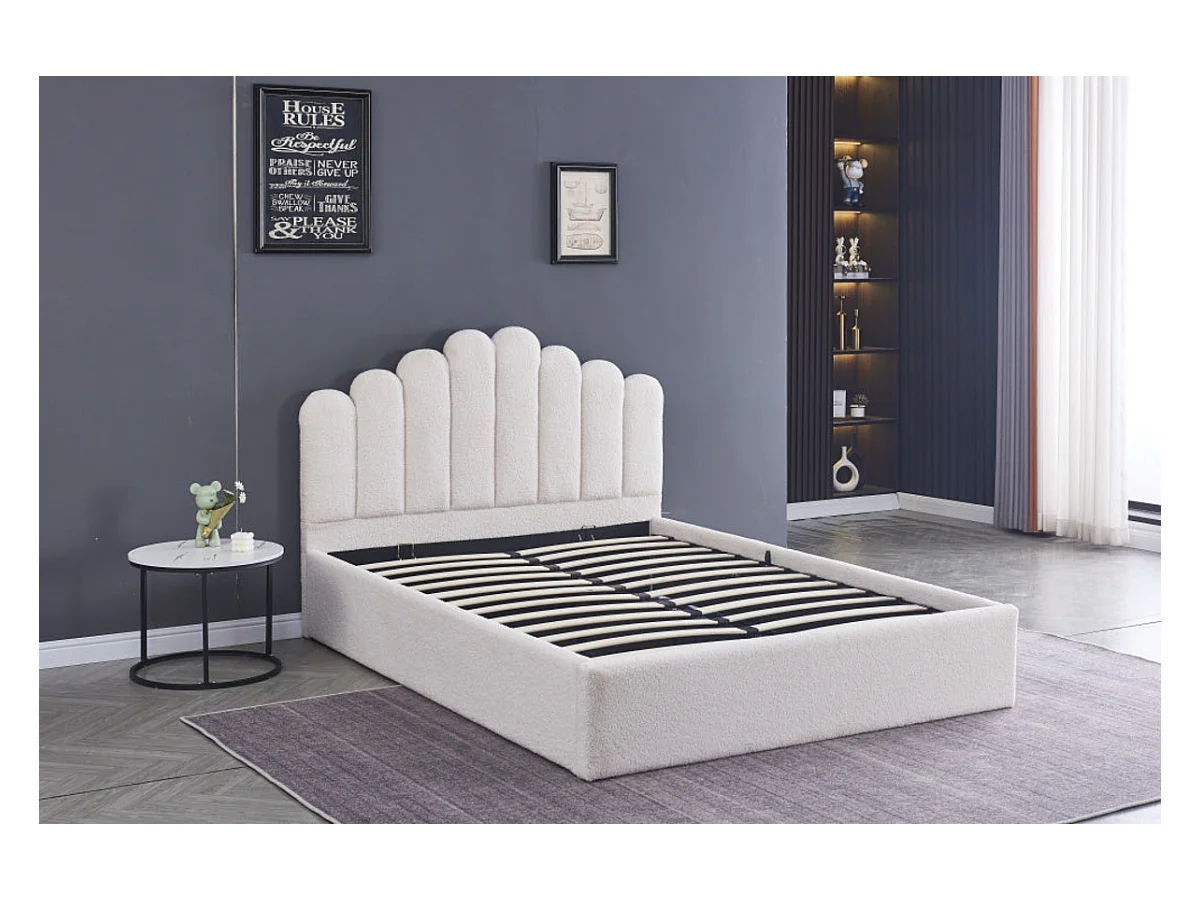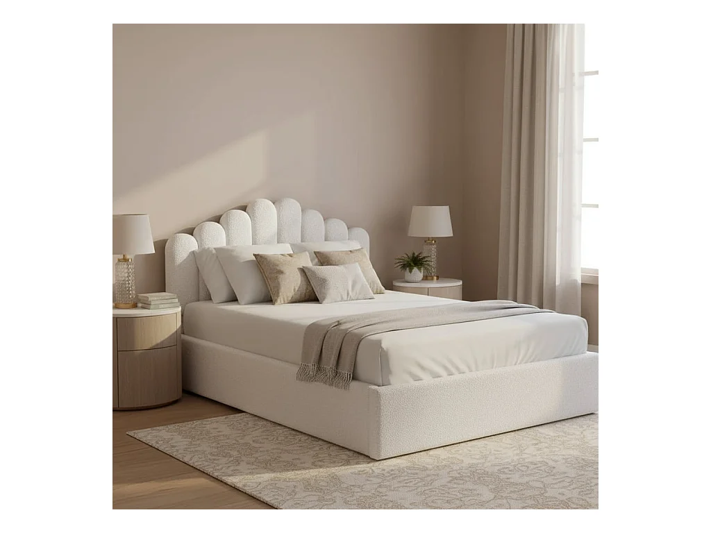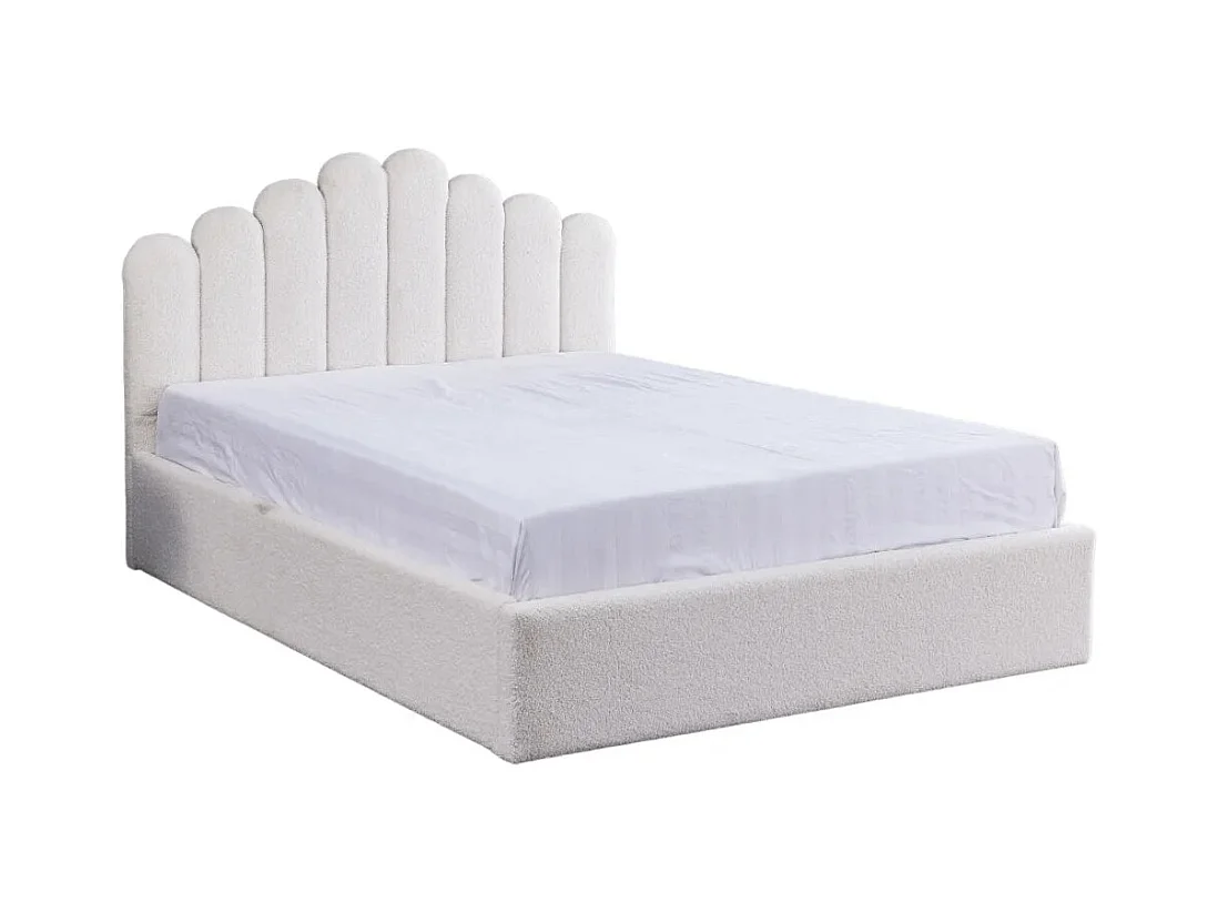 Lit coffre DOHA 2 places 160x200 cm blanc doudou sommier coffre intégré