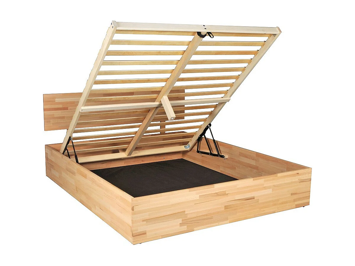 Lit coffre 2 places 180x200cm Hêtre massif huilé avec sommier MALI