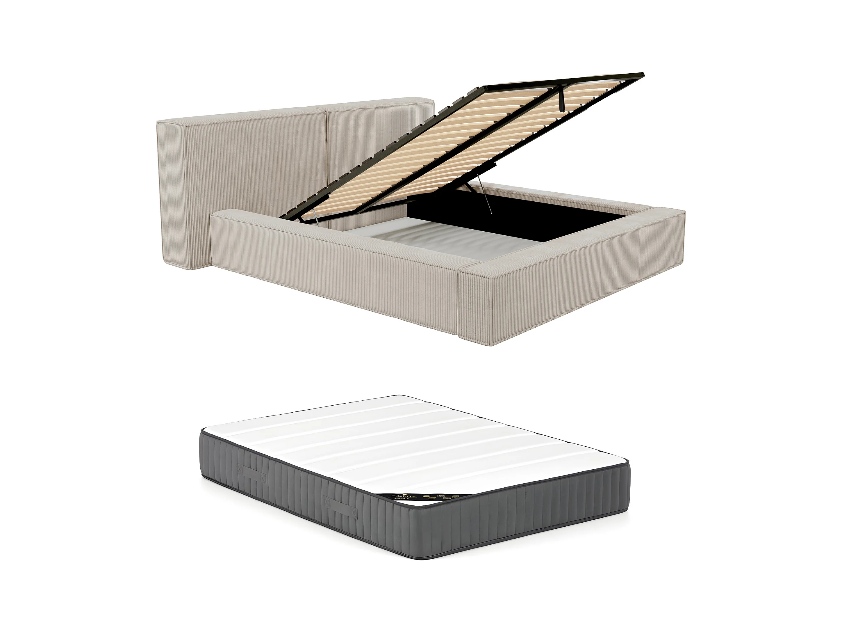 Lit coffre 200 x 200 cm - Velours côtelé - Beige + Matelas - TIMANO de Pascal Morabito