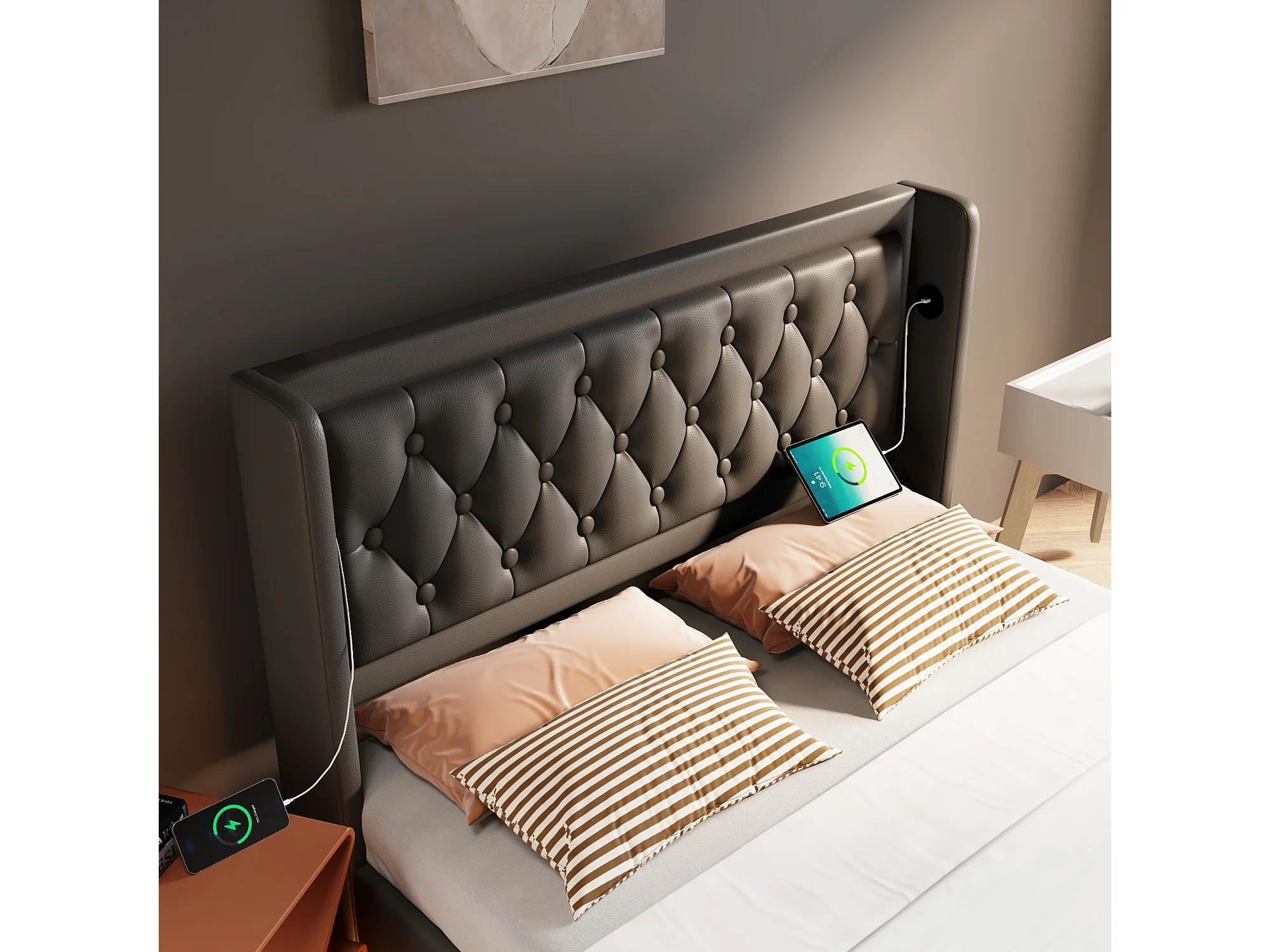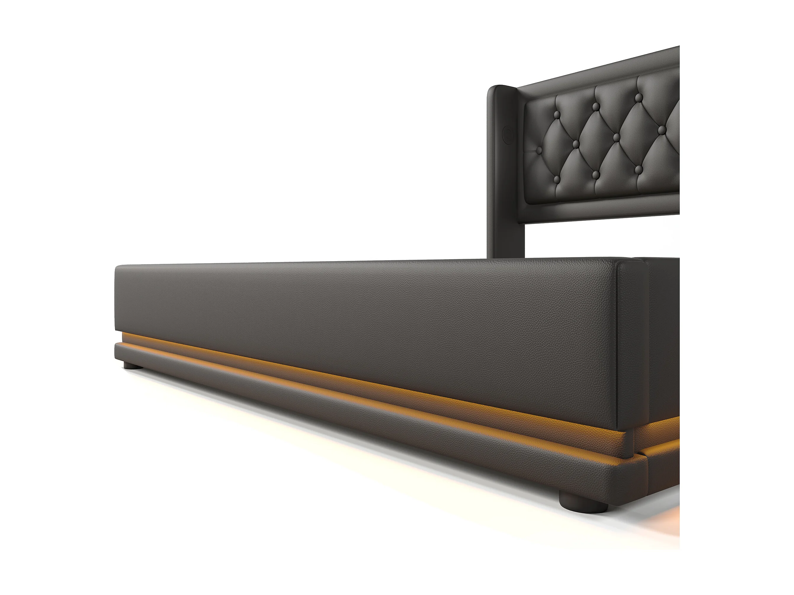 Lit Coffre 210x150x100.5 cm avec LED USB Espace de rangement Matelas Sommier à lattes en bois en noir pour adultes et enfants et adolescents