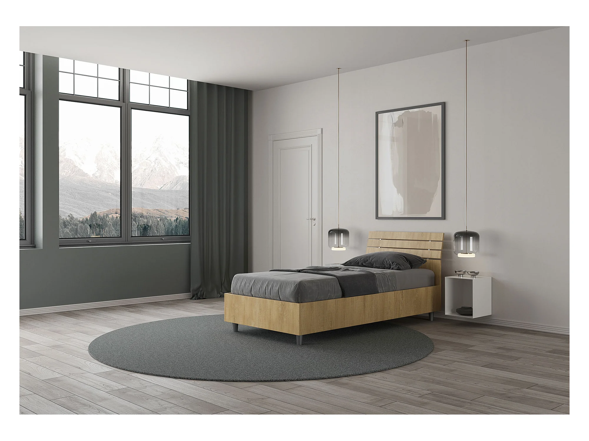 Lit coffre 80x190 avec tête de lit inclinée à lattes en chêne Ankel