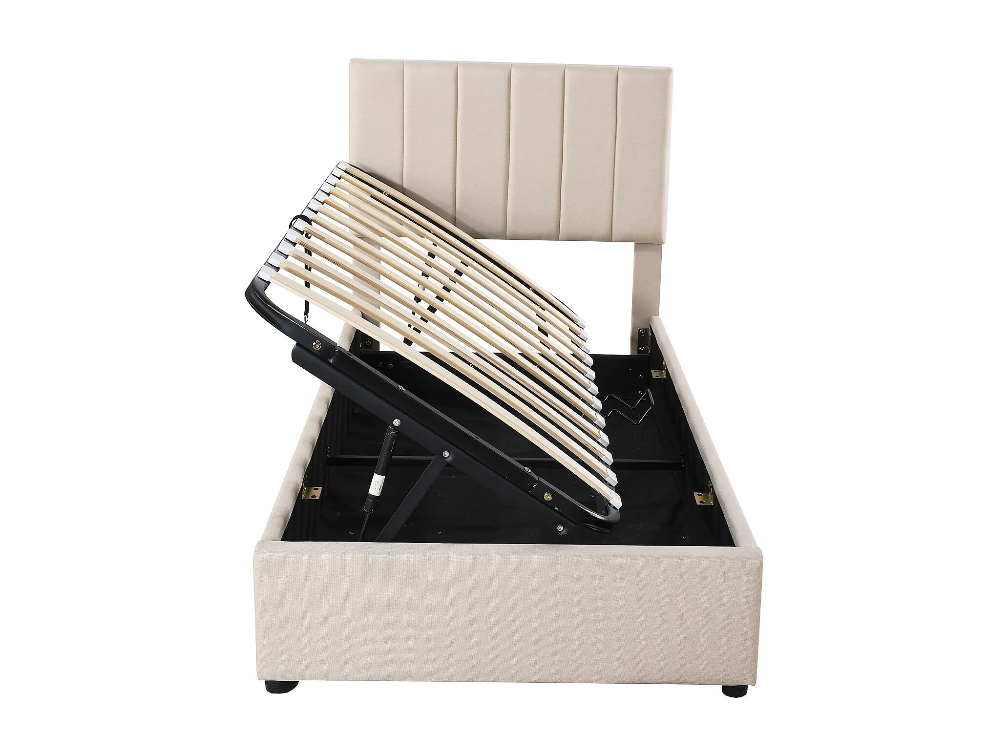 Lit coffre 90 x 200 cm - Lin beige - Lit enfant avec tête de lit réglable en hauteur - lattes en bois - sans matelas