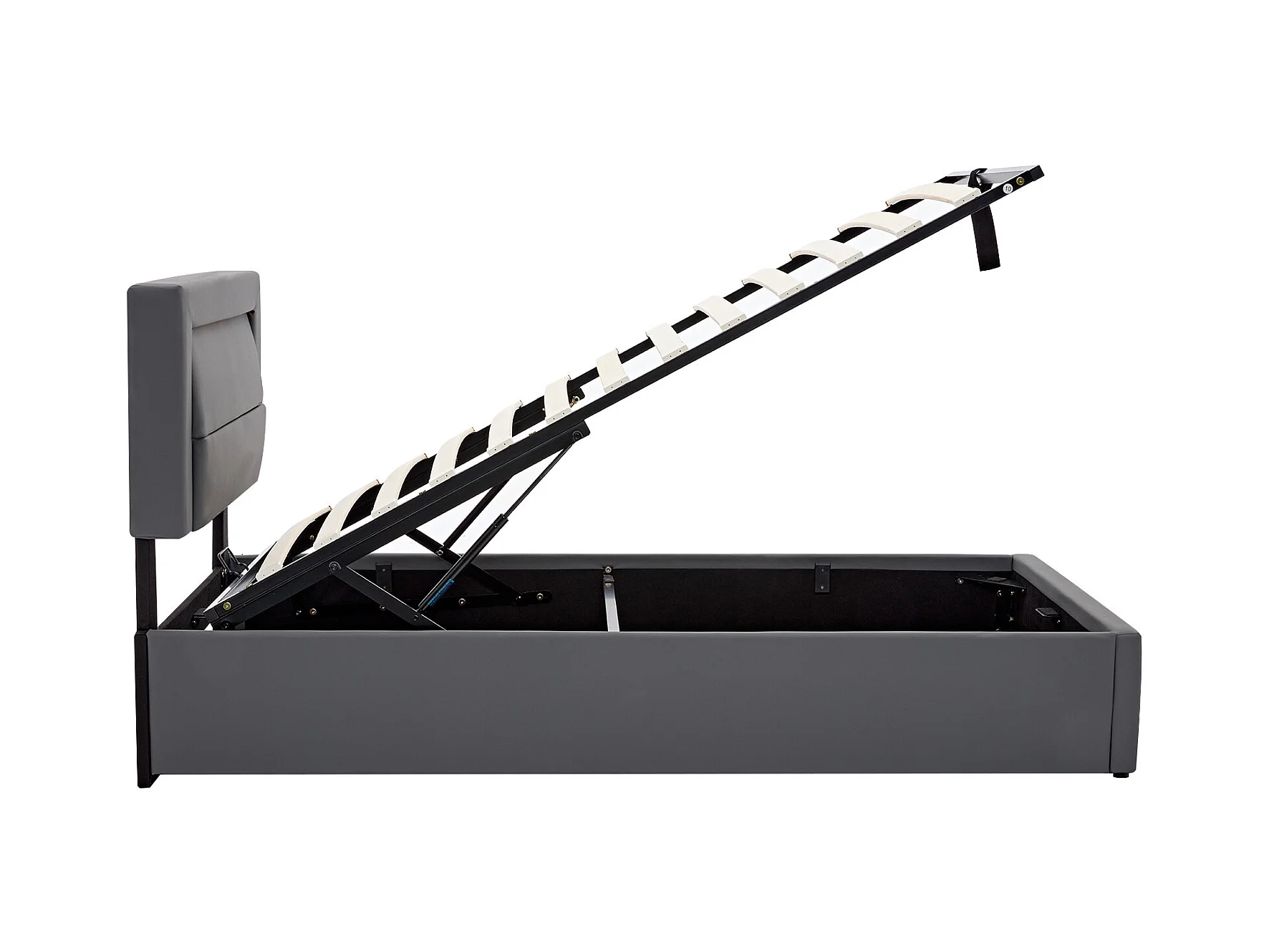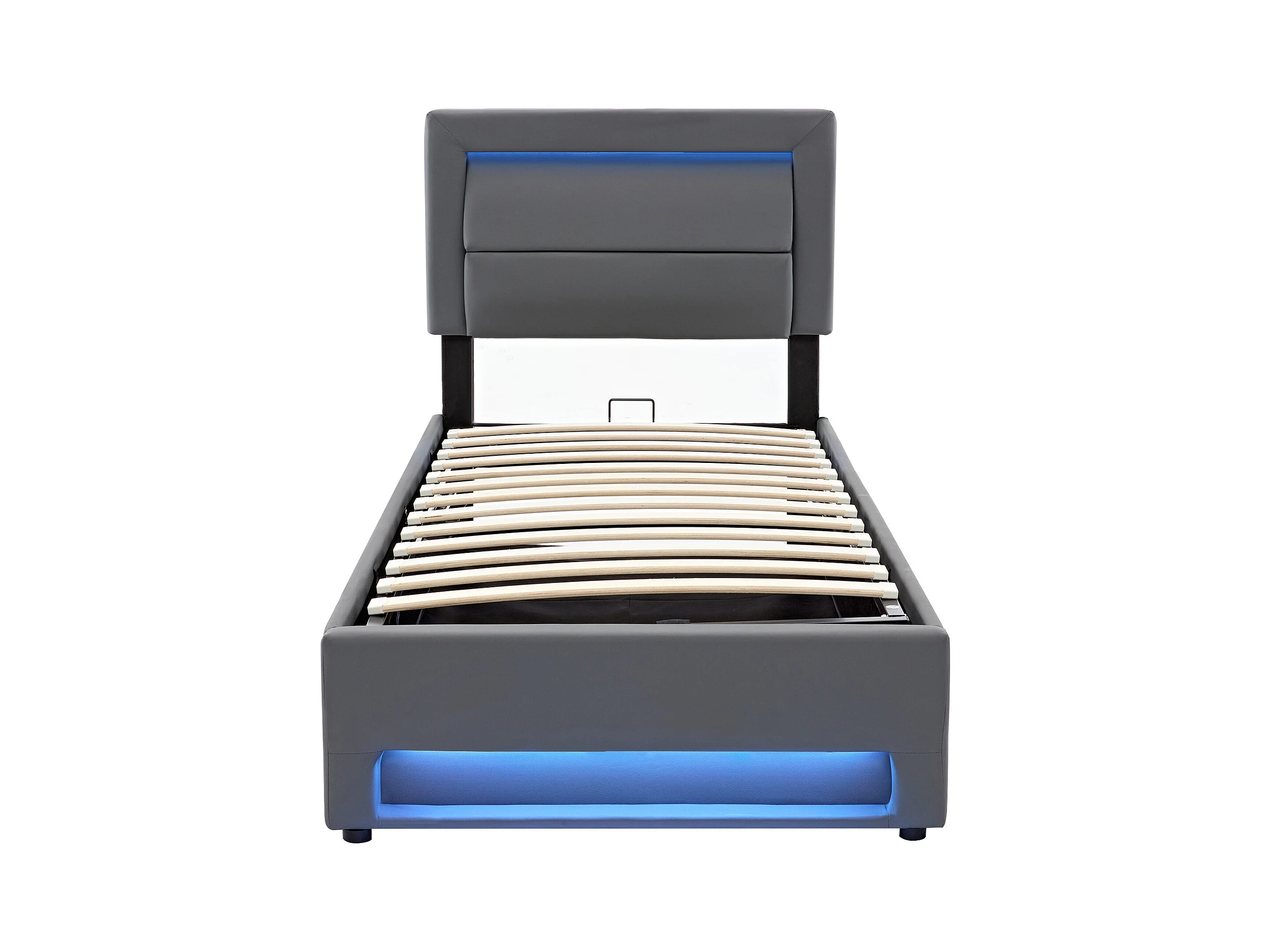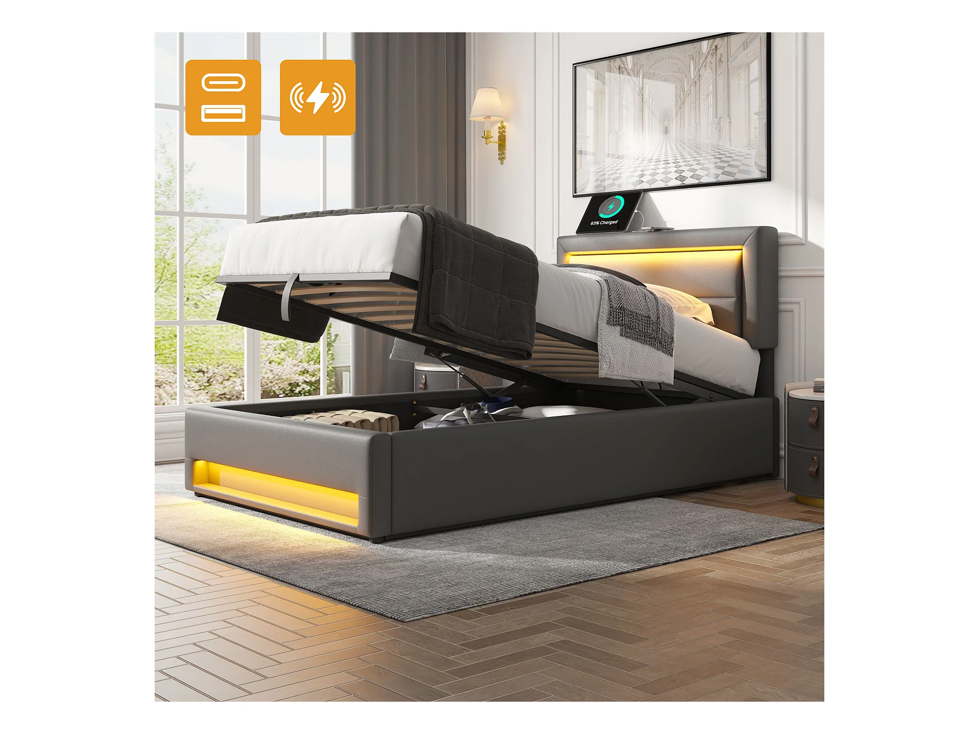 Lit coffre 900x190 cm - Lit adulte avec port USB, éclairage LED et rangements - PU - gris - sans matelas