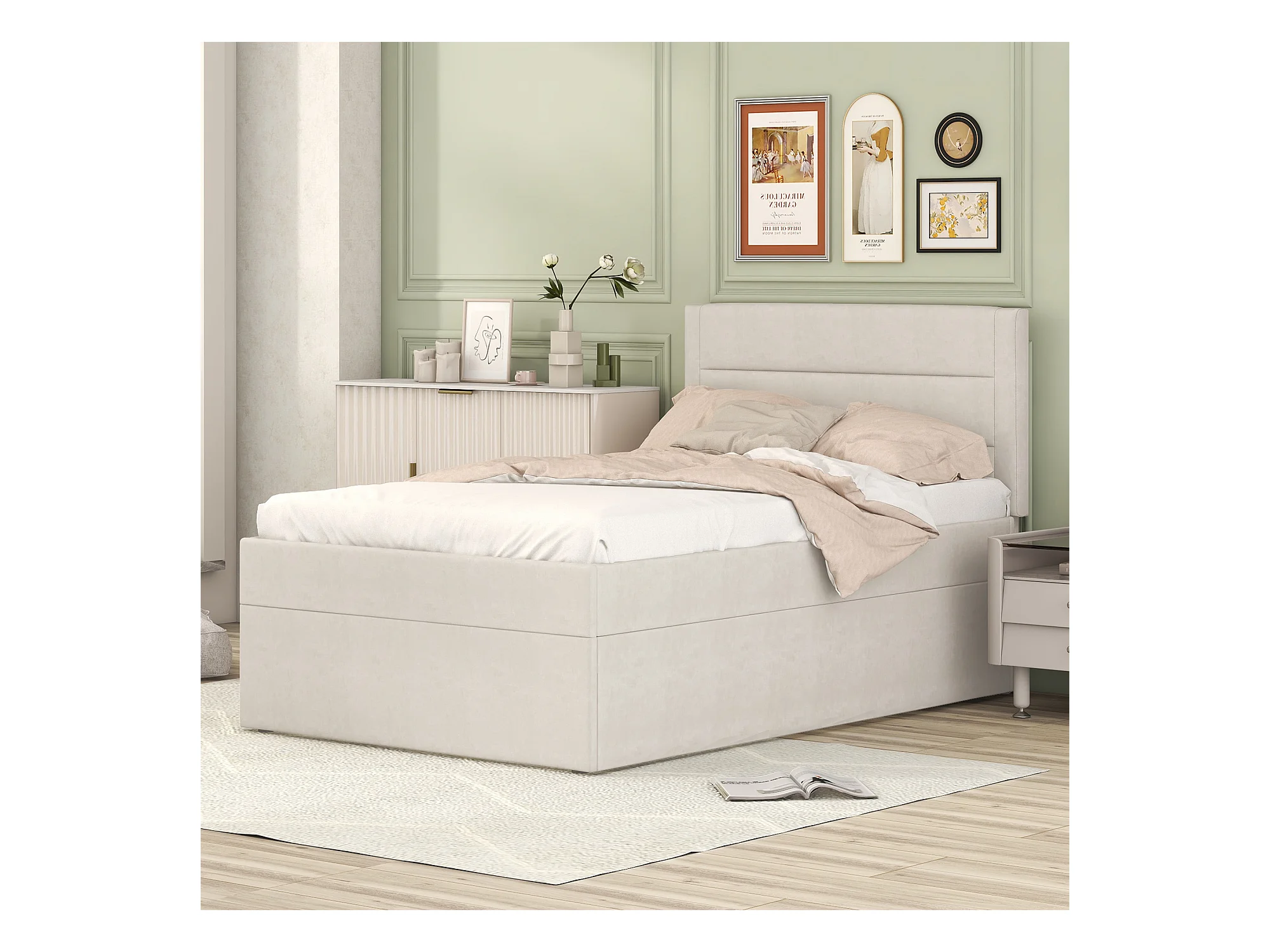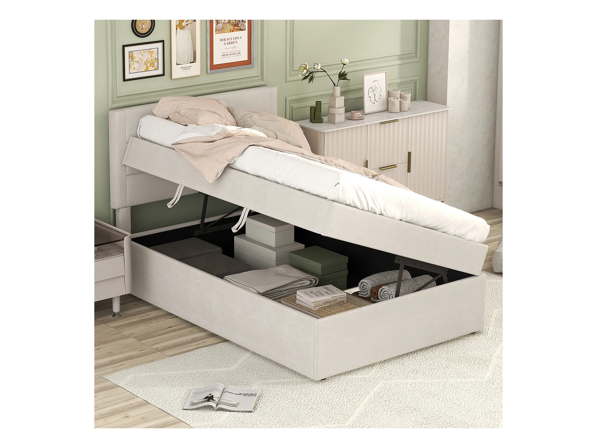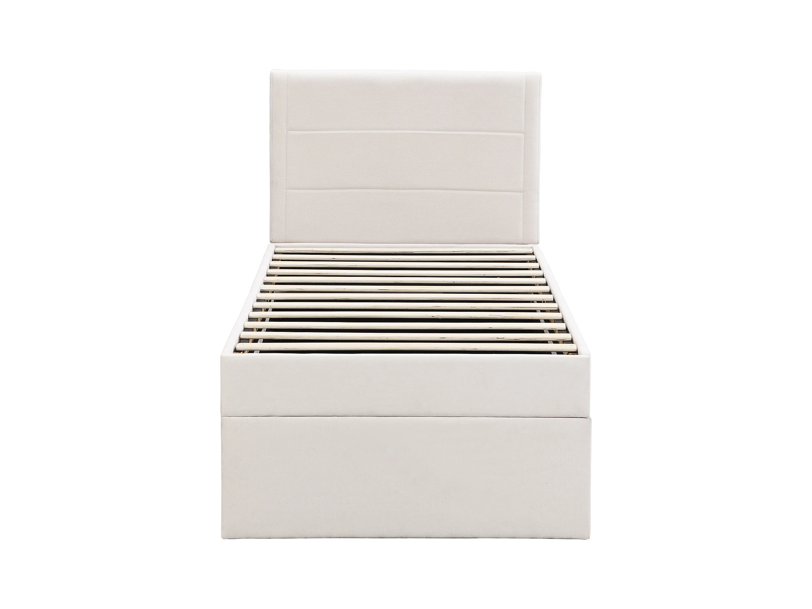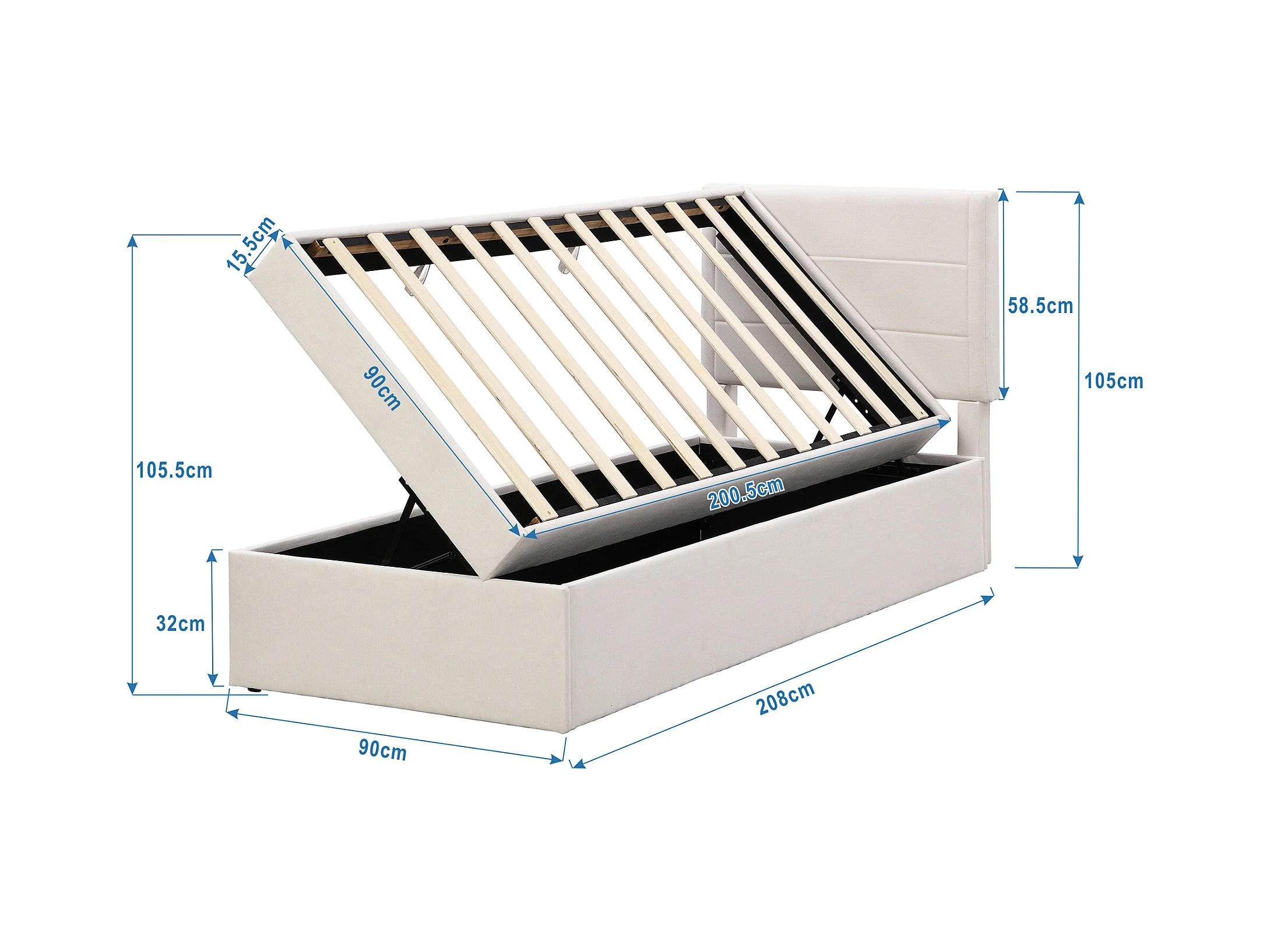 Lit coffre 90x200 cm - Lit enfant avec sommier à lattes - lin beige - sans matelas