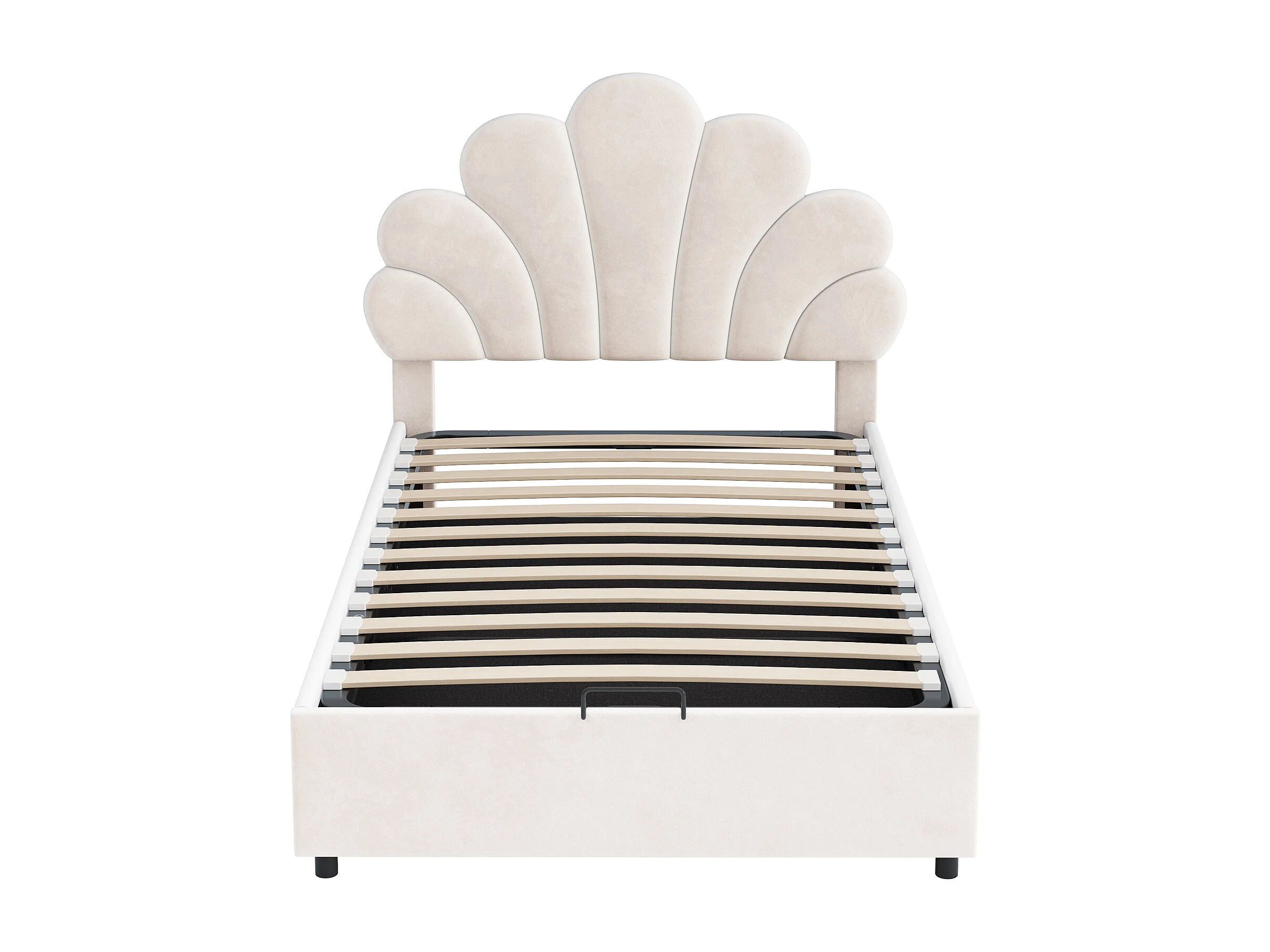 Lit coffre 90x200 cm - Lit enfant avec tête de lit réglable et sommier à lattes - velours beige