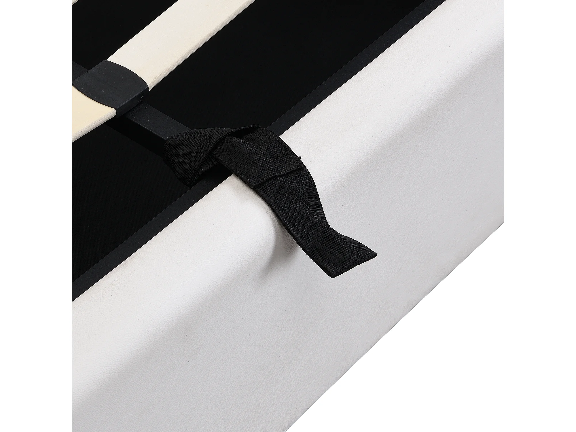 Lit coffre 140x190 cm avec sommier - tête de lit capitonnée avec LED et USB - similicuir - blanc (sans matelas)