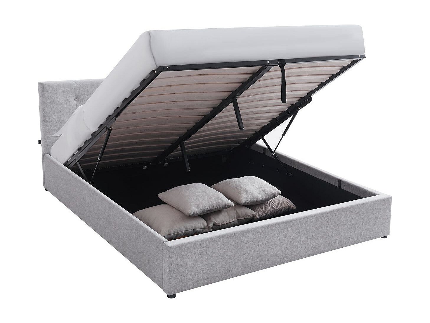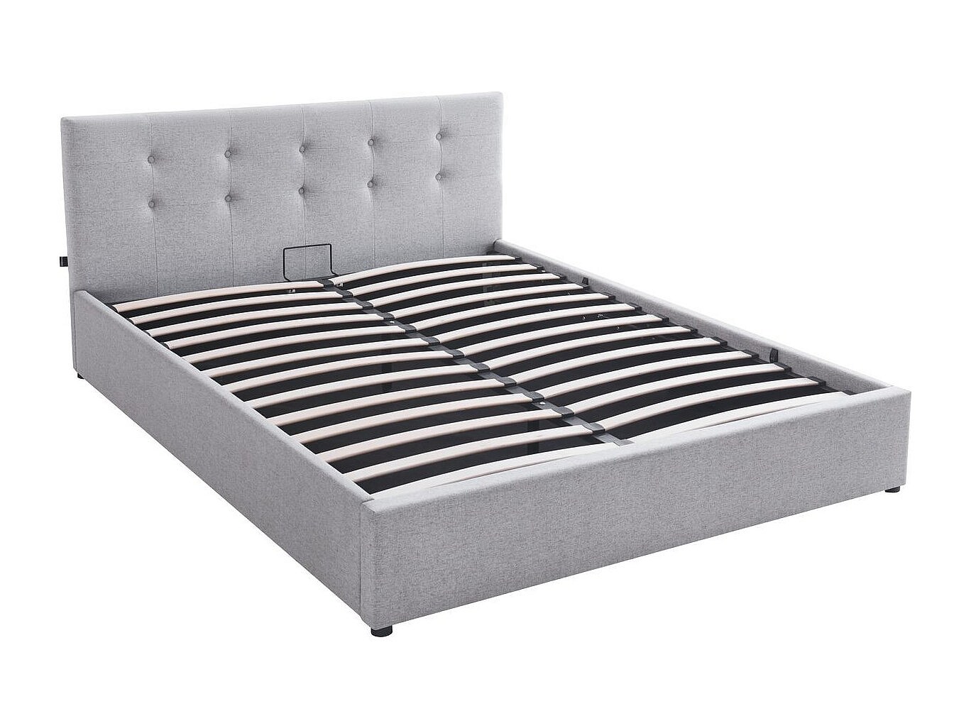 Lit coffre adulte 140x190 cm avec tête de lit matelassée en tissu gris et sommier - Tina