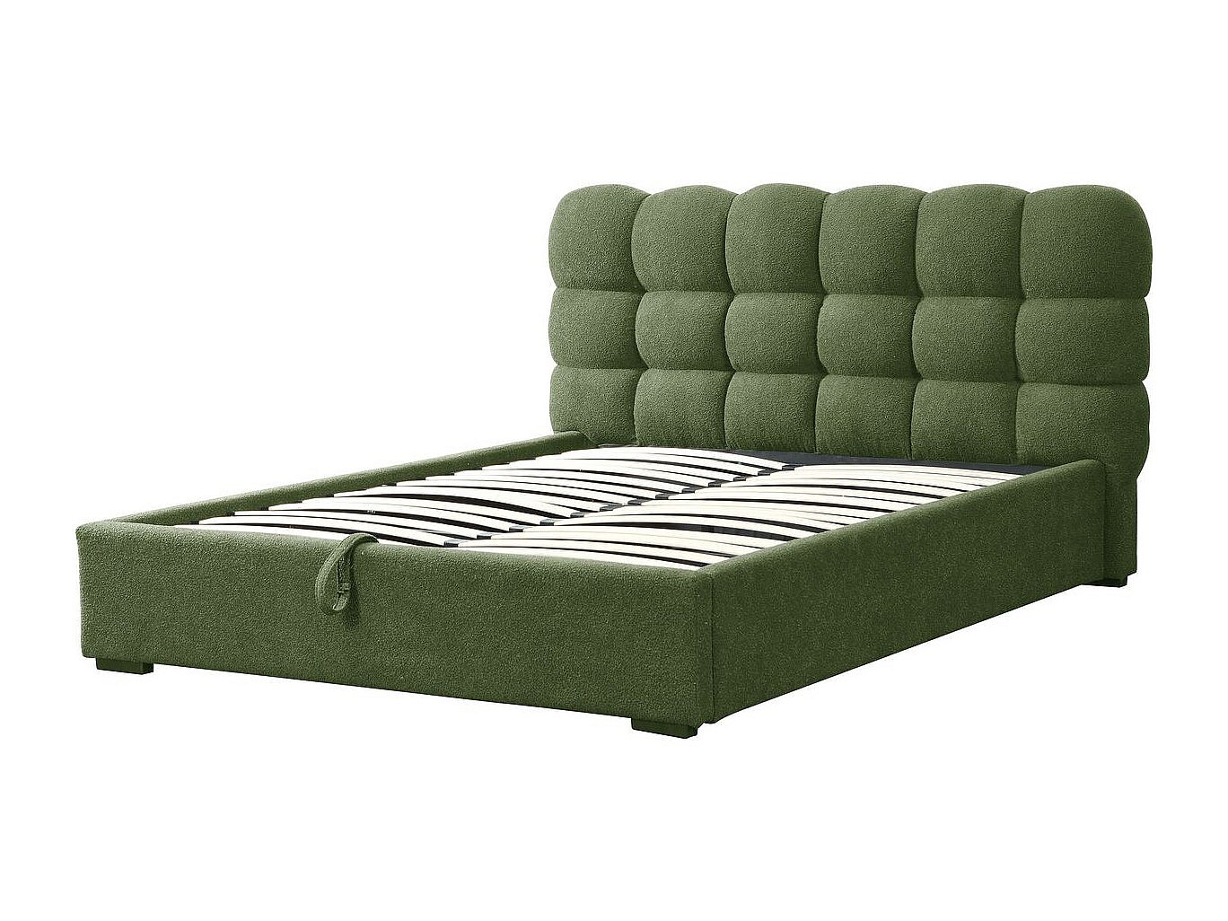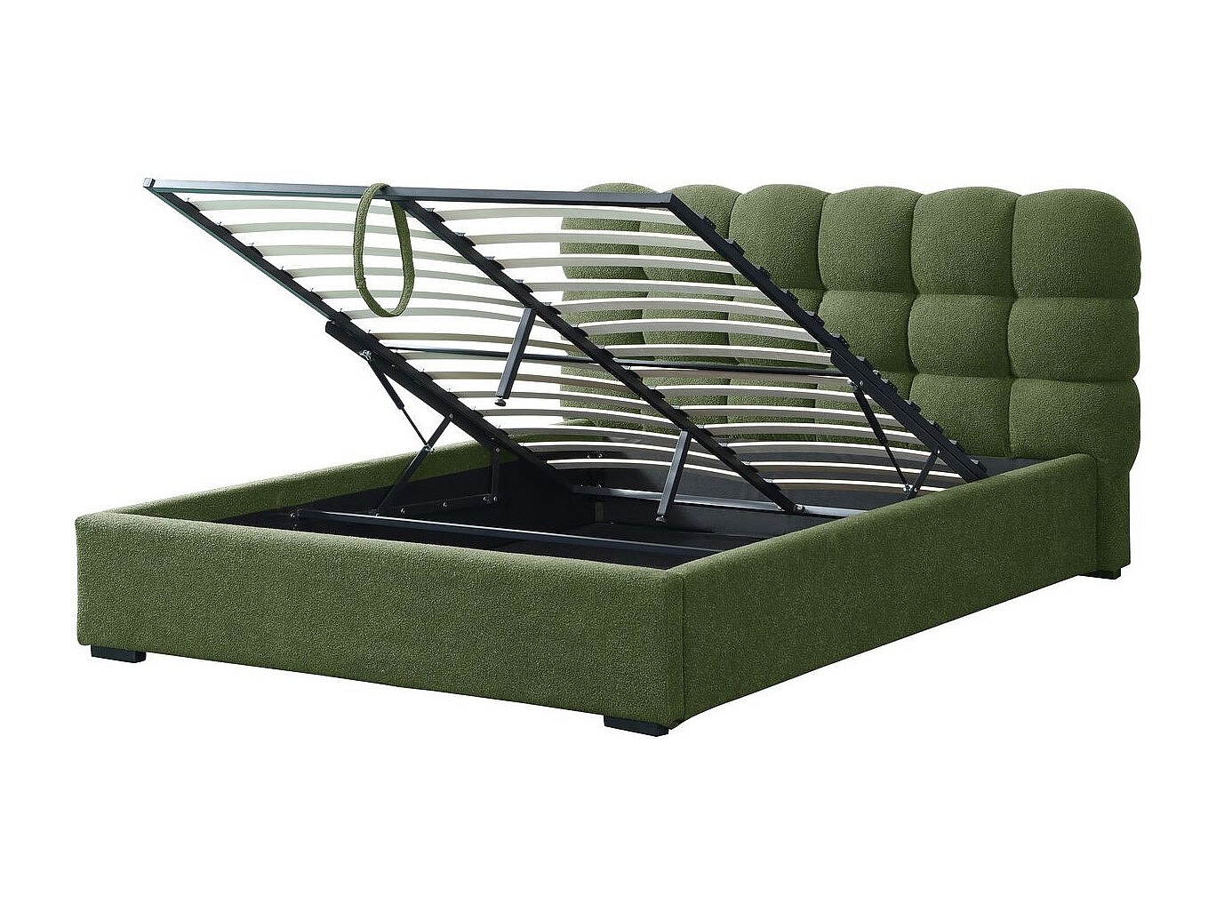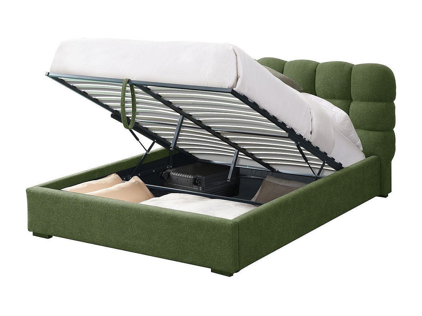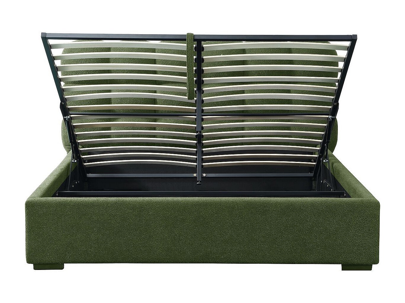 Lit coffre adulte 160x200 cm avec sommier et tête de lit capitonnée en tissu bouclé vert - Lola