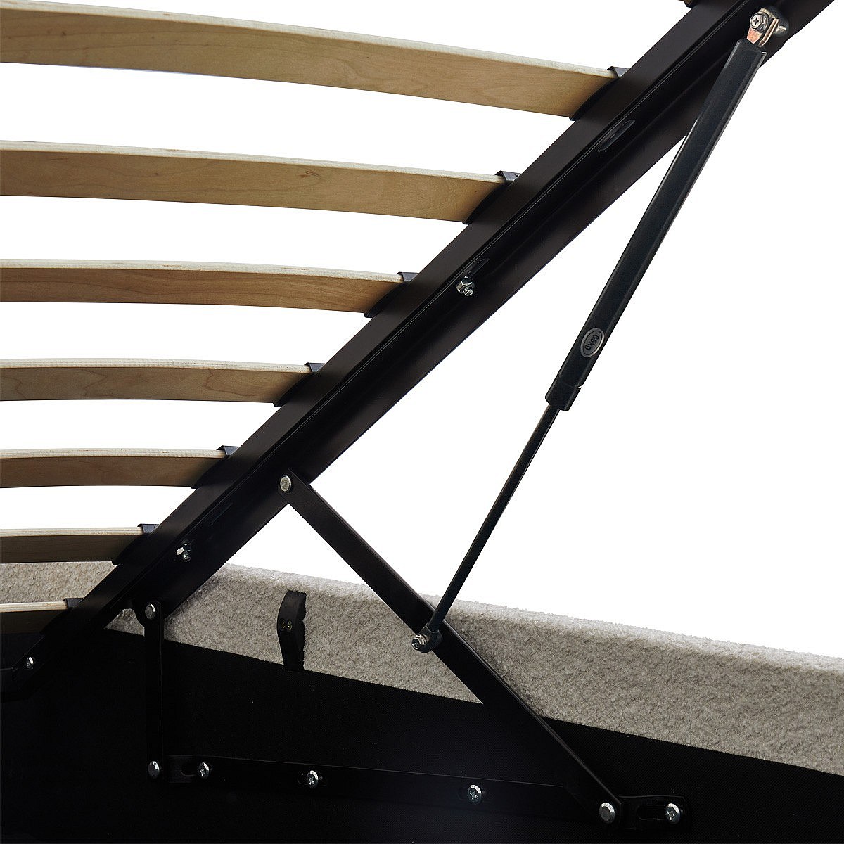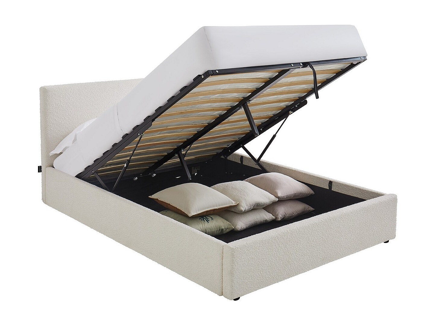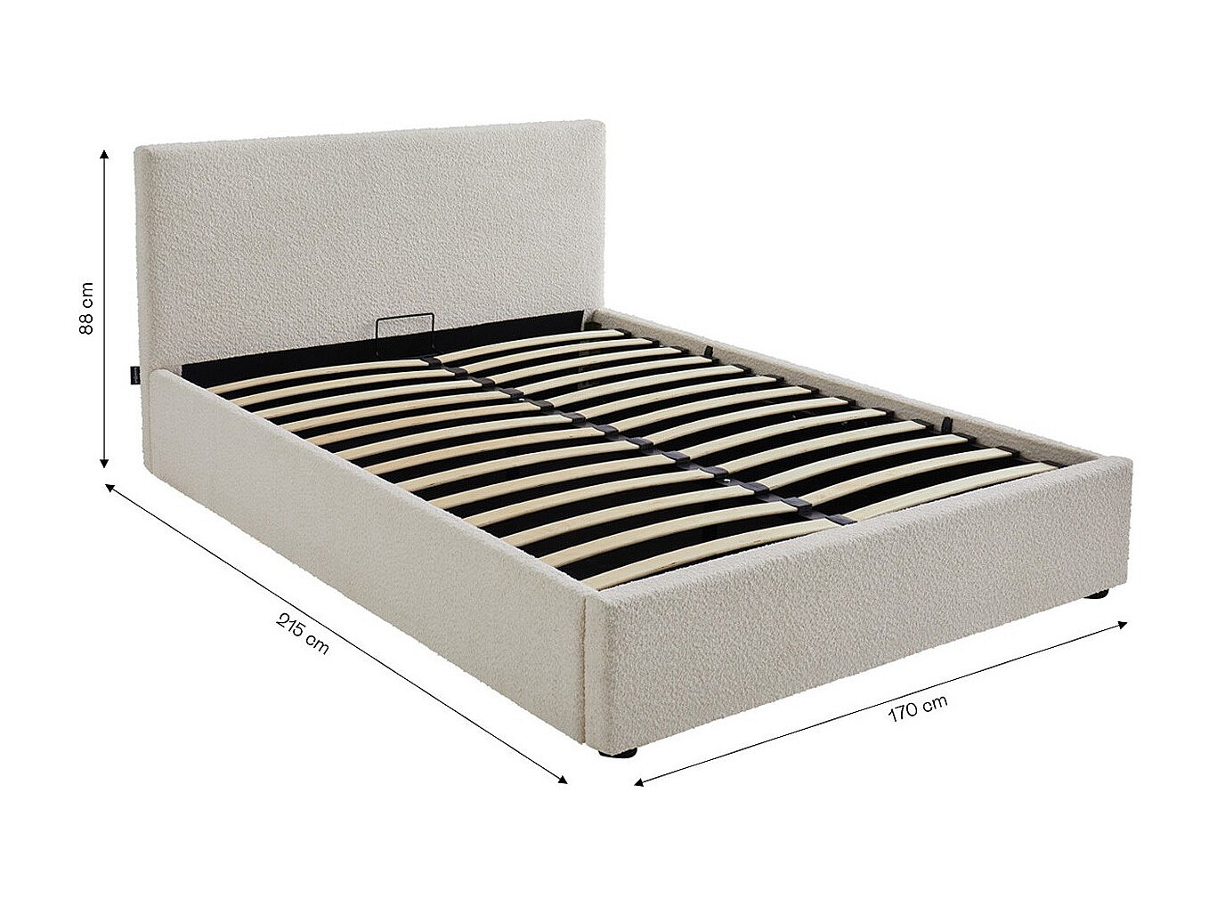 Lit coffre adulte 160x200 cm avec tête de lit matelassée en tissu bouclé beige et sommier - Tina