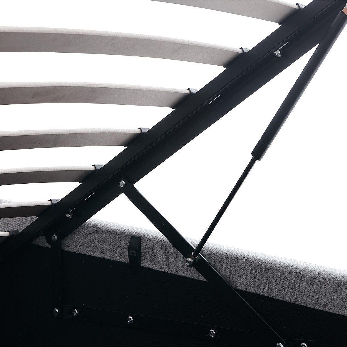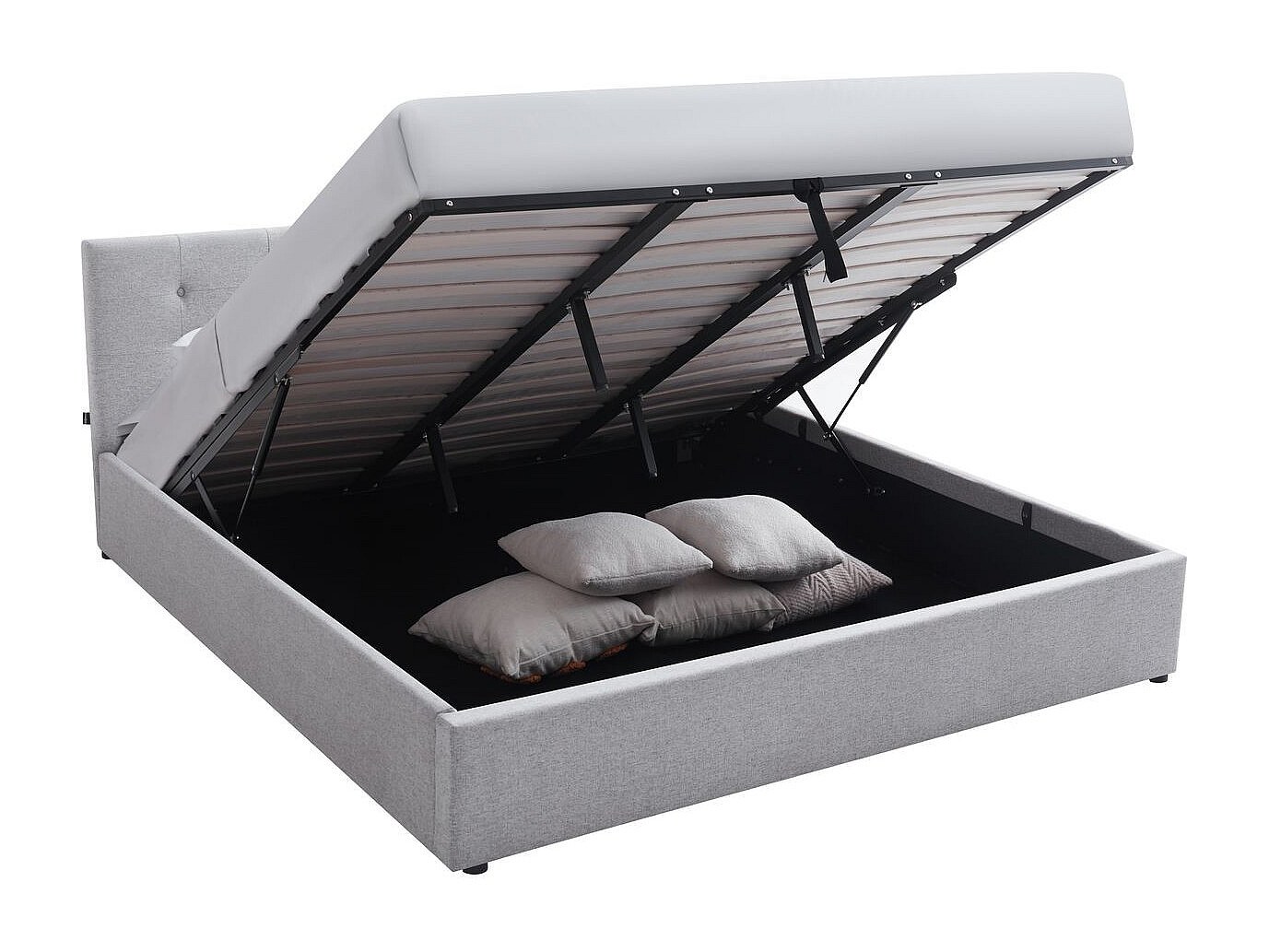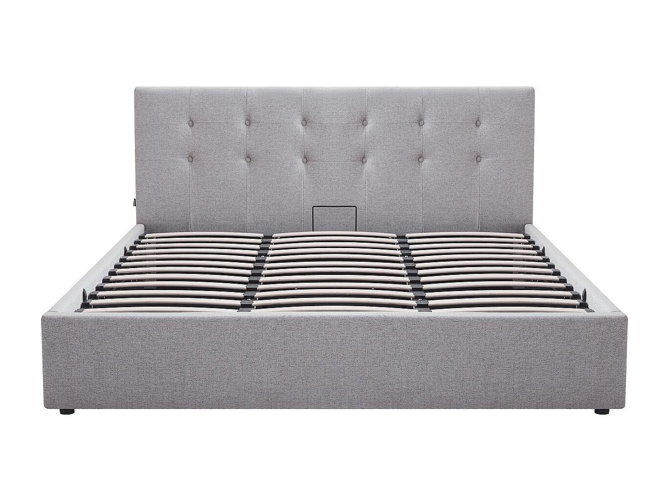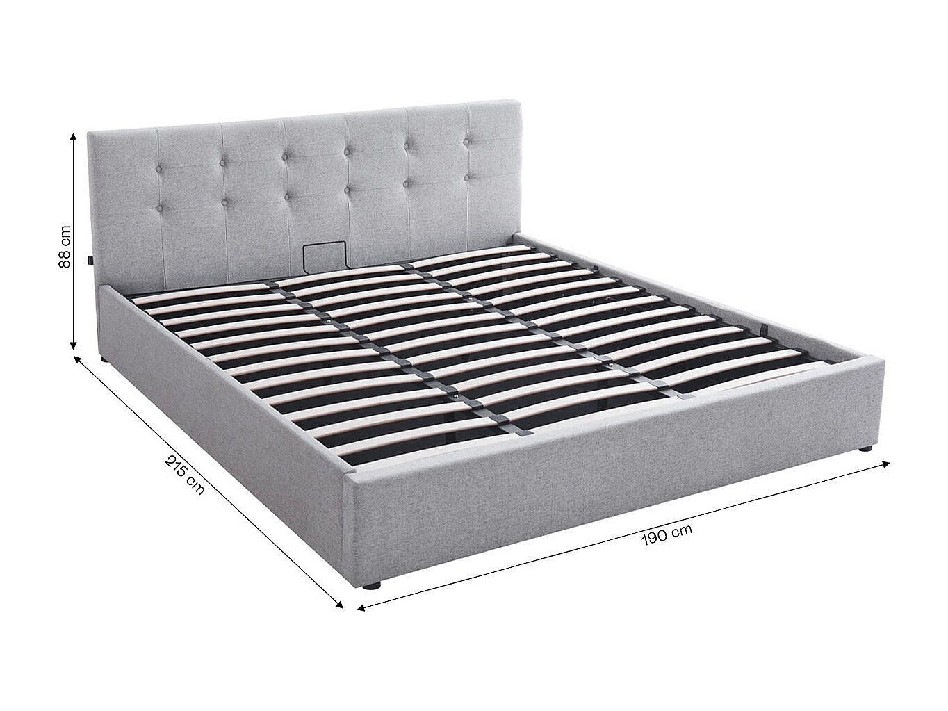 Lit coffre adulte 180x200 cm avec tête de lit matelassée en tissu gris et sommier - Tina