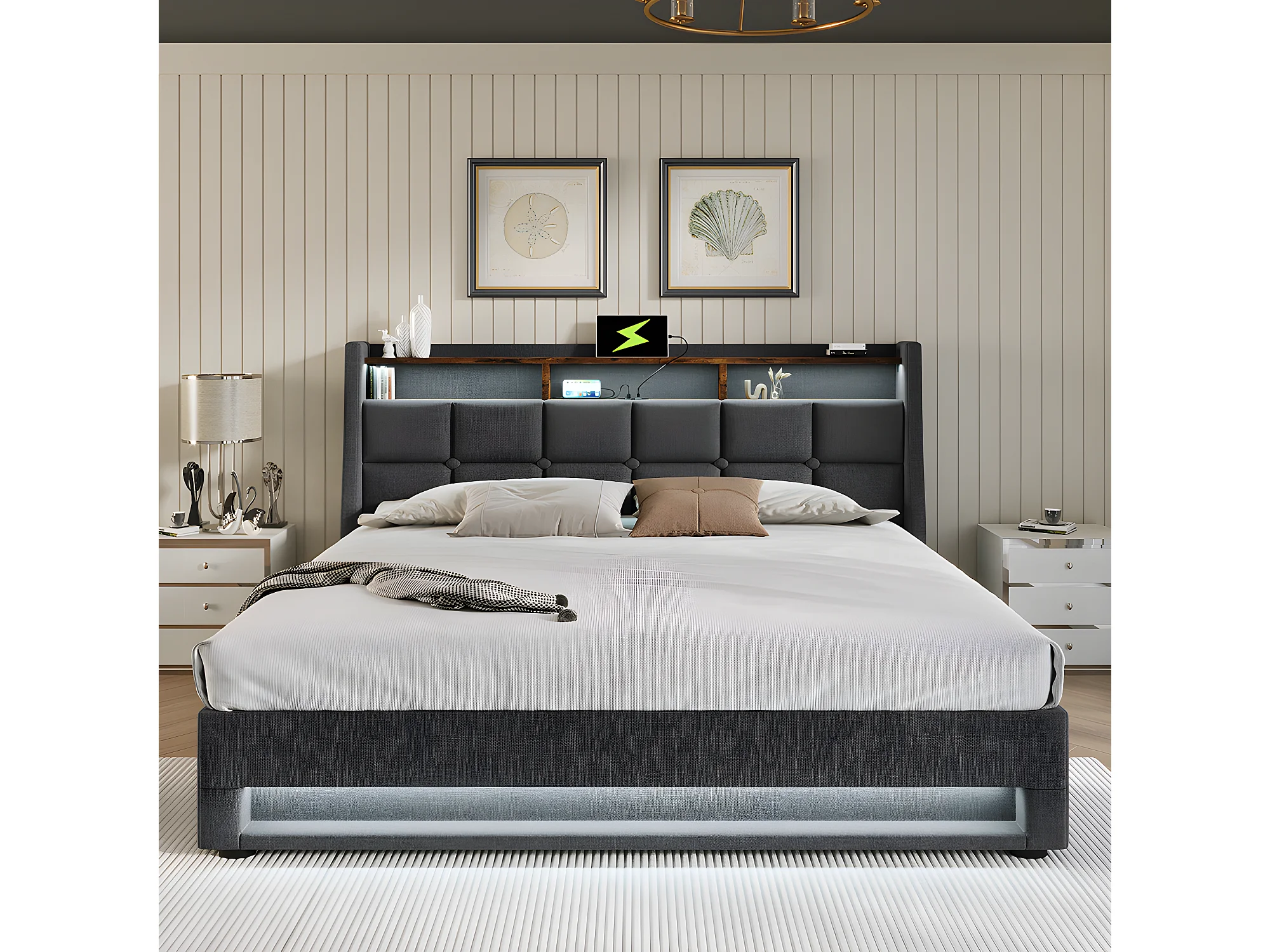 Lit coffre avec chargeur USB et LED - 160 x 200 cm - Gris - Sweiko