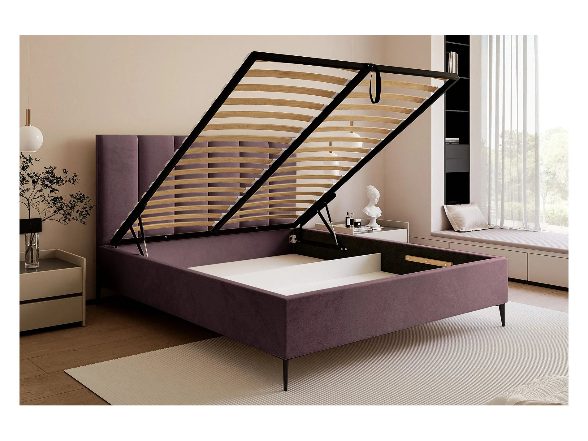 Lit coffre avec pieds - 160x200 cm - en tissu velours violet - MASEGO