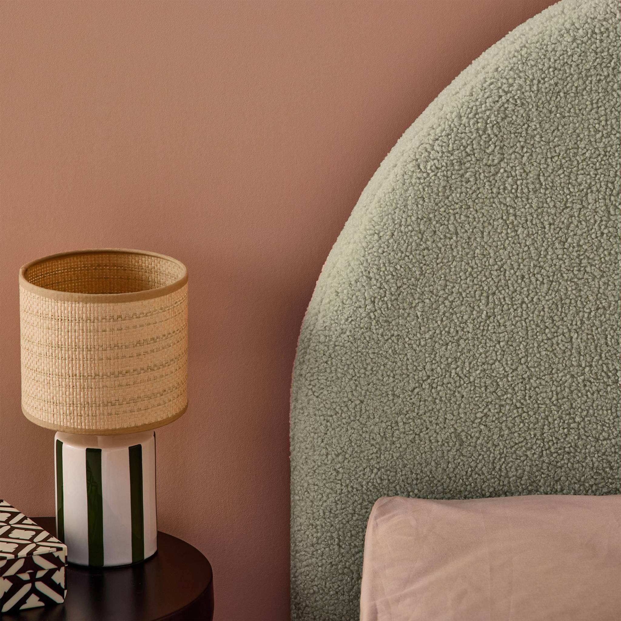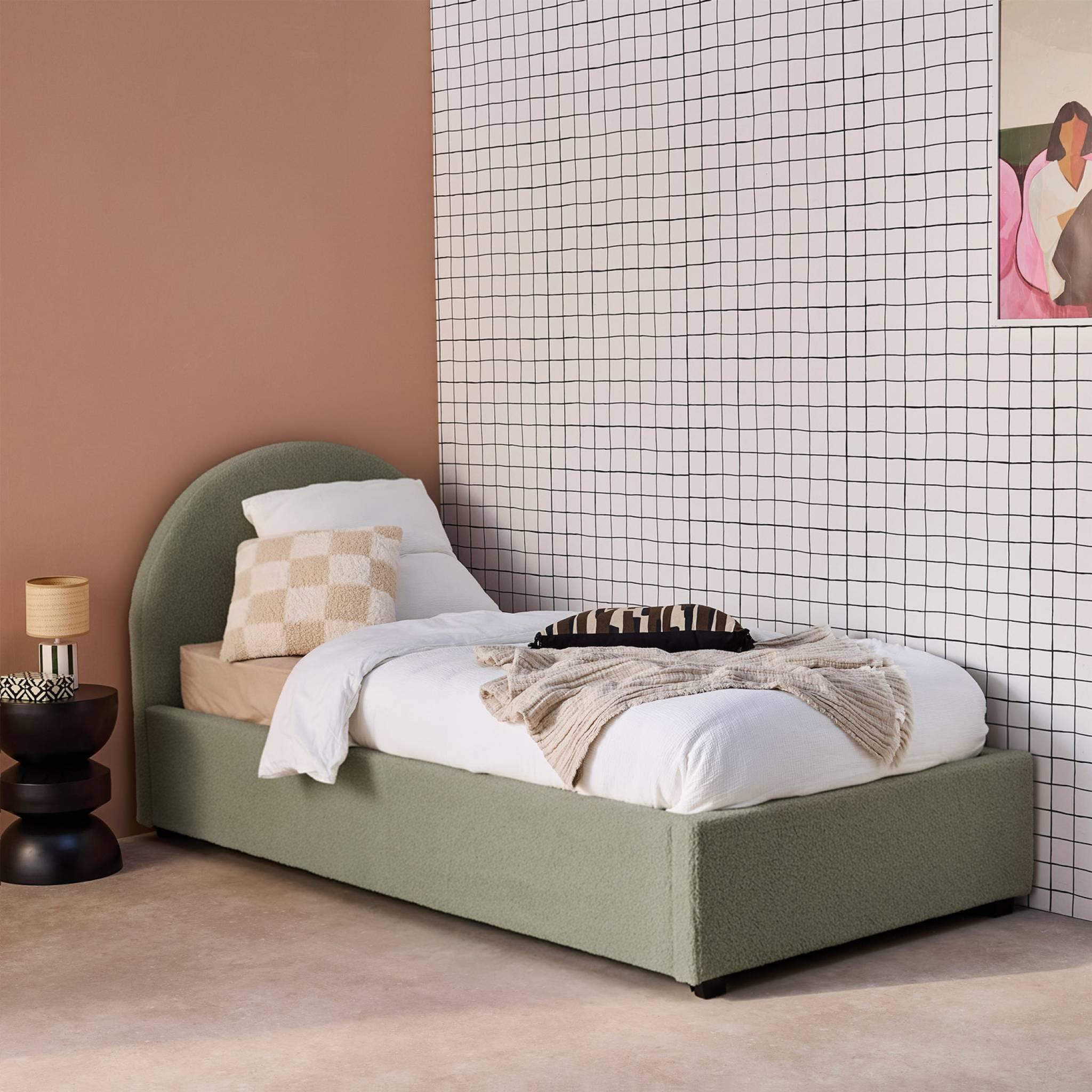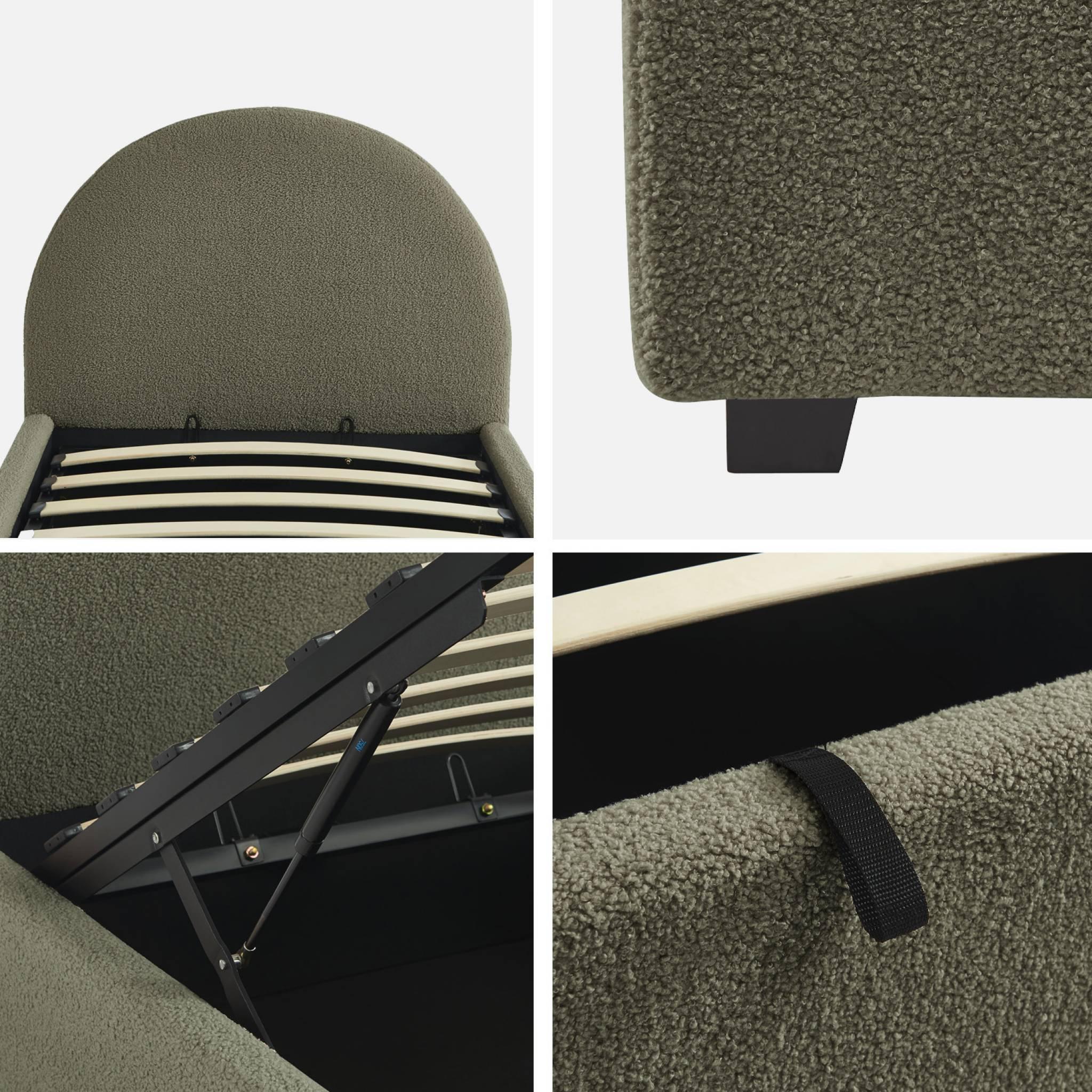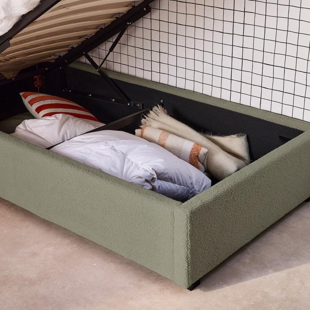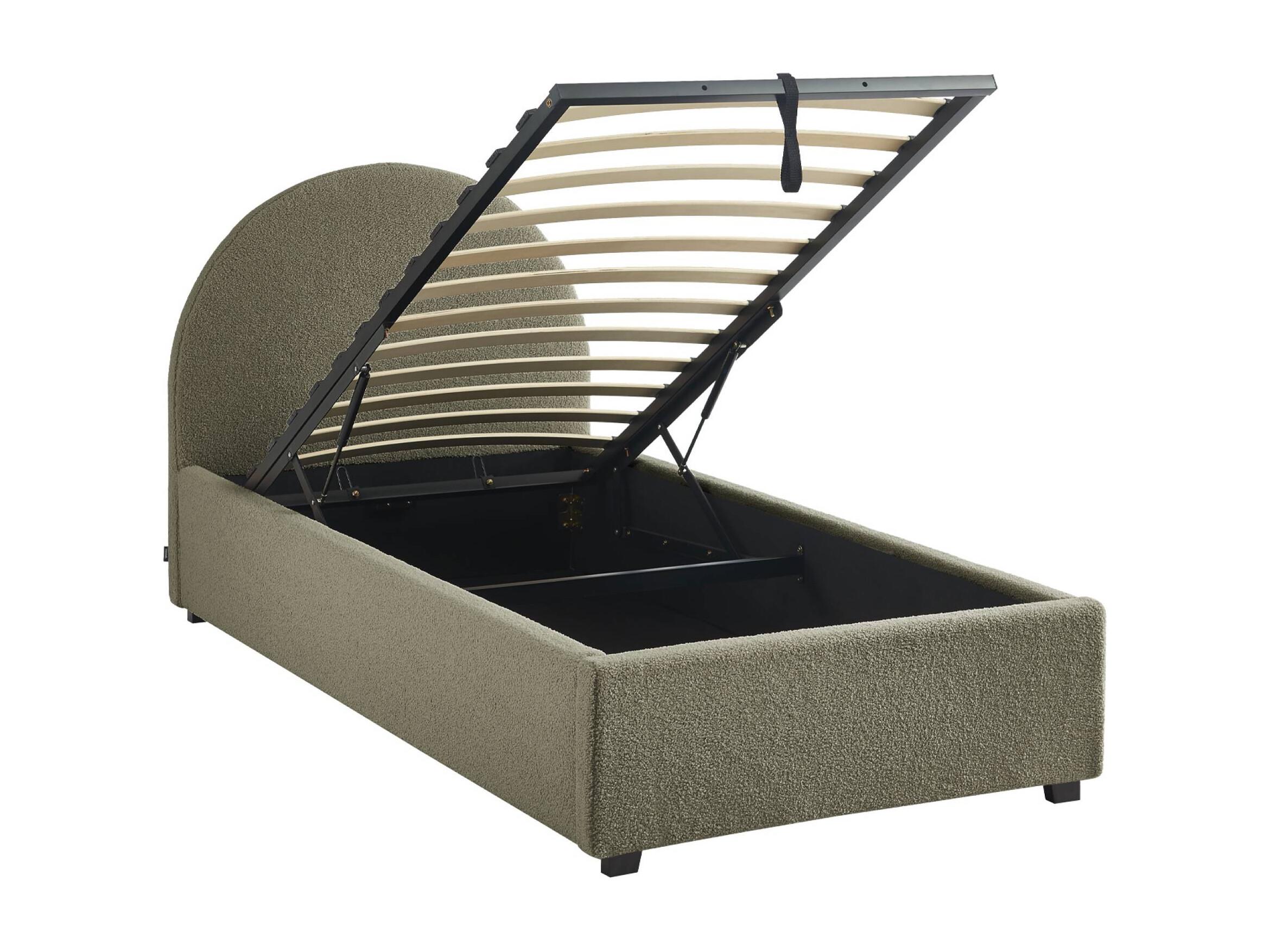 Lit coffre avec sommier à lattes et tête de lit. finition bouclette. kaki. L 206 x P 104 x H 102cm