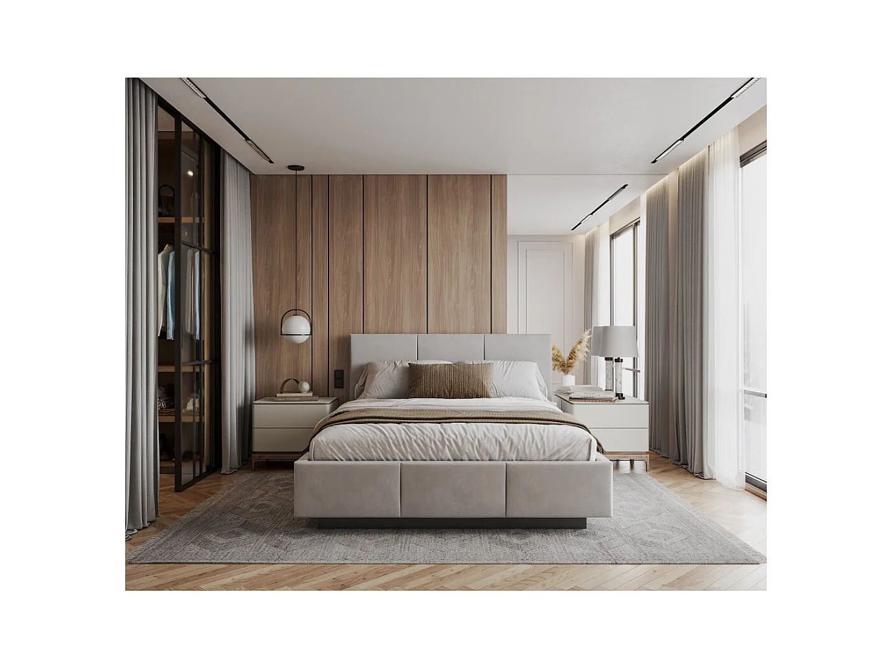 Lit coffre Aveiro 140 x 190 cm avec sommier à lattes relevable Blanc