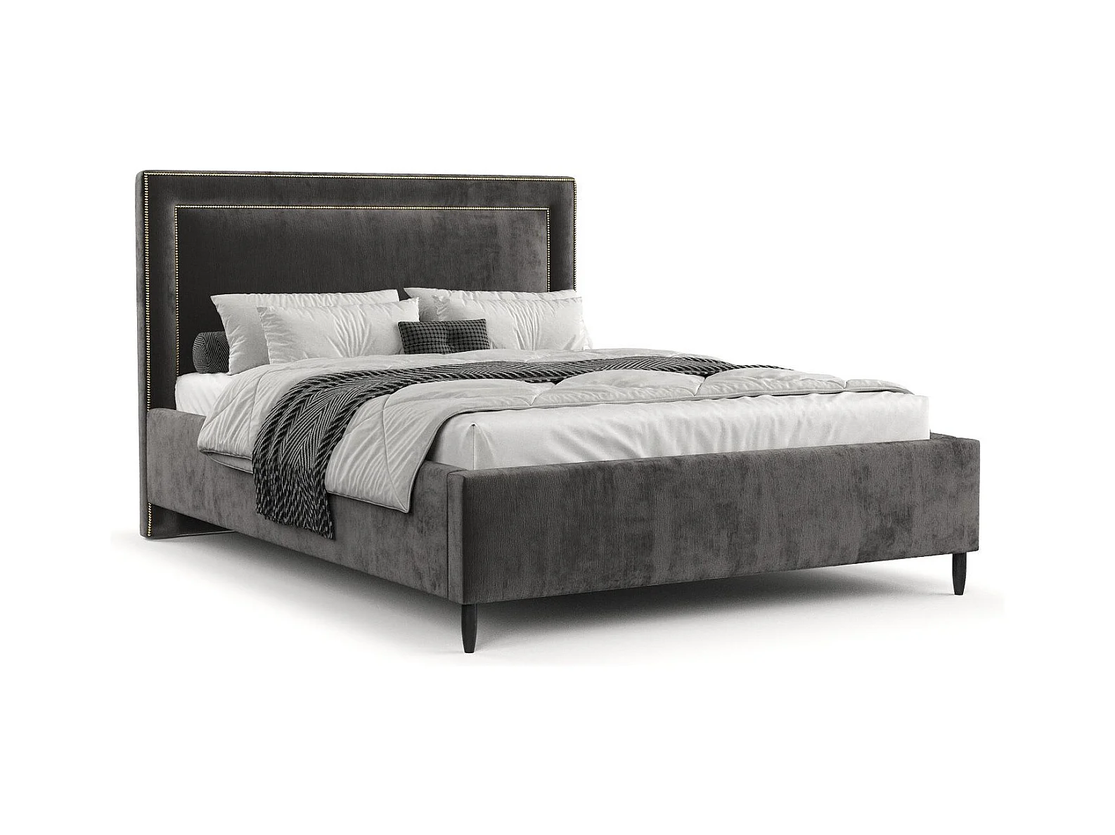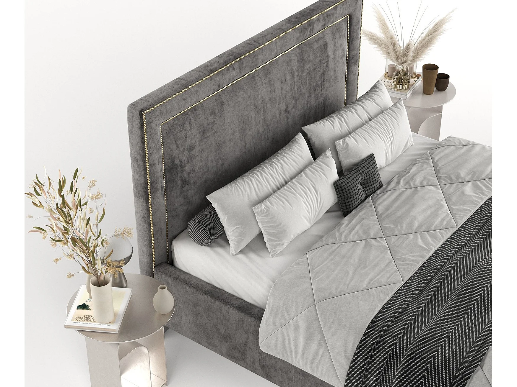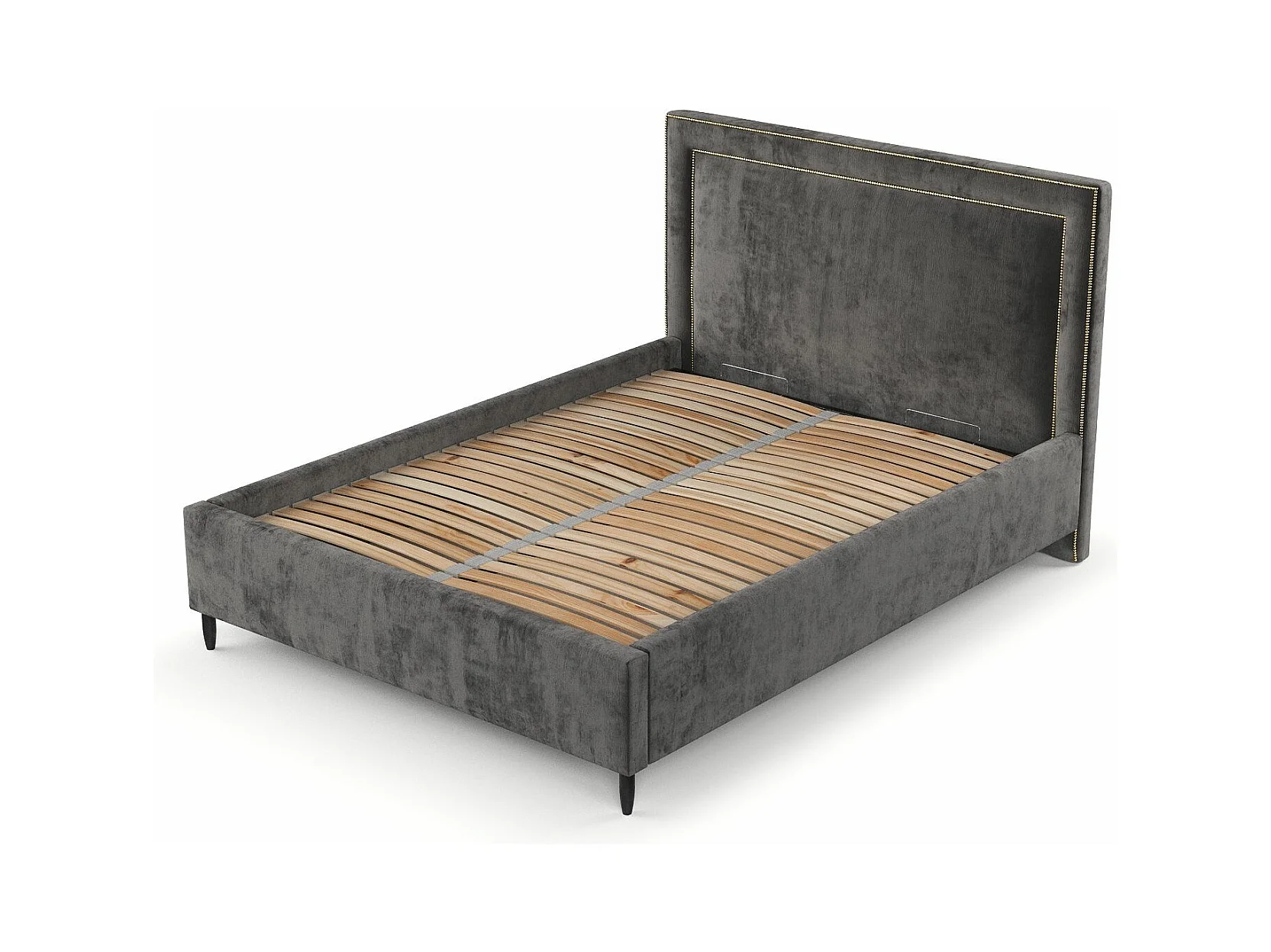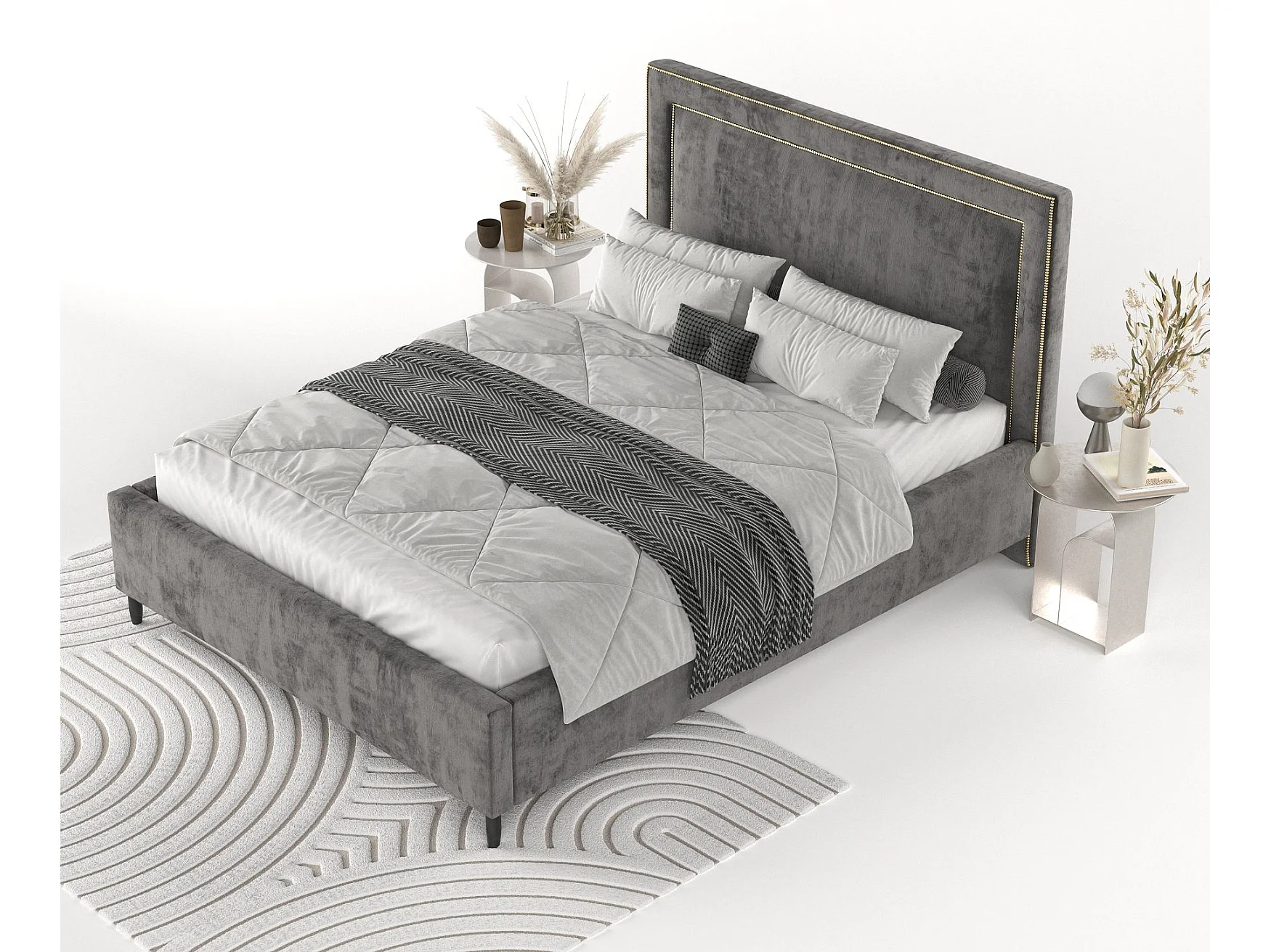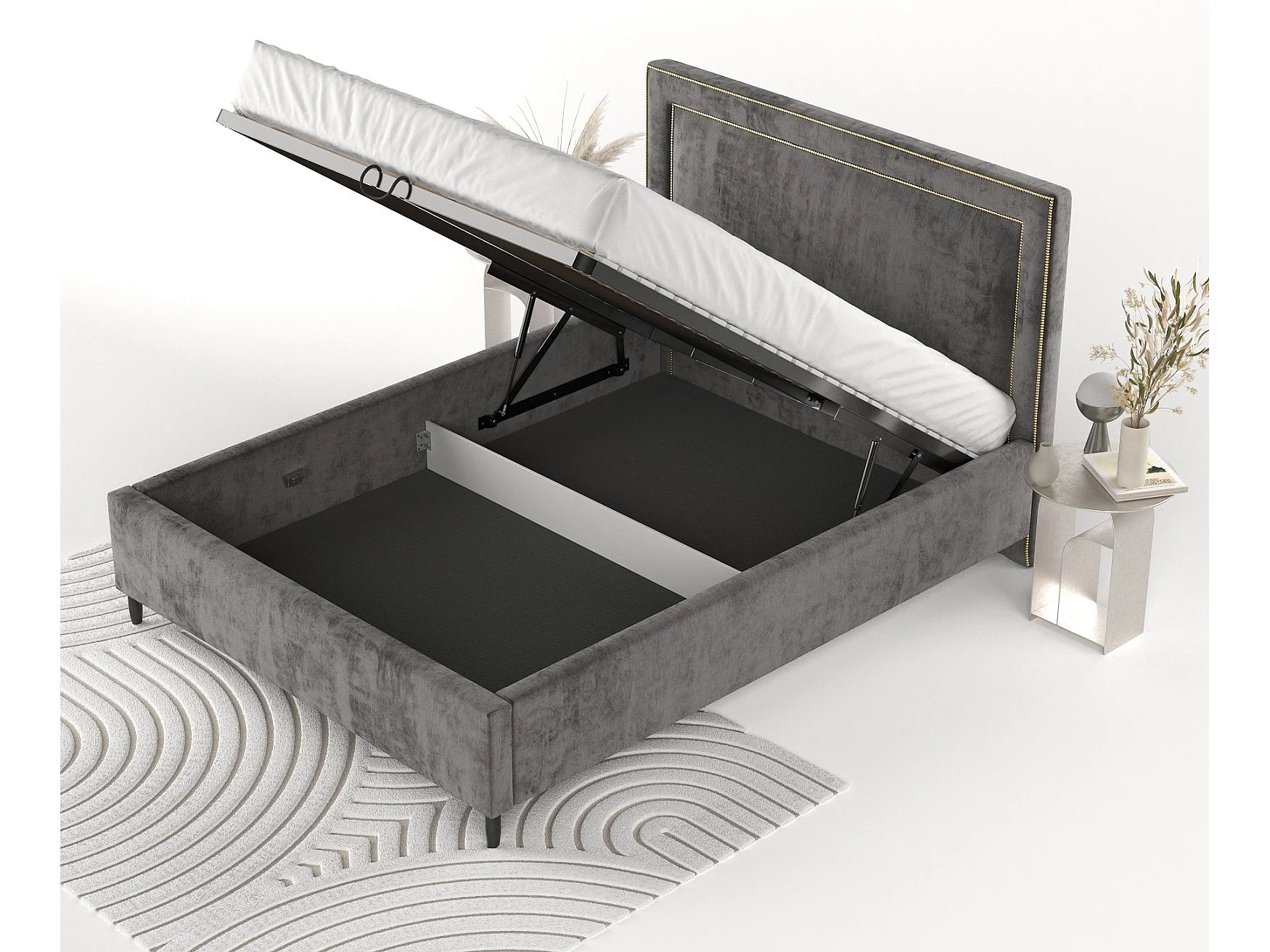 Lit coffre Baleine - 140 x 200 cm - chenille - gris foncé
