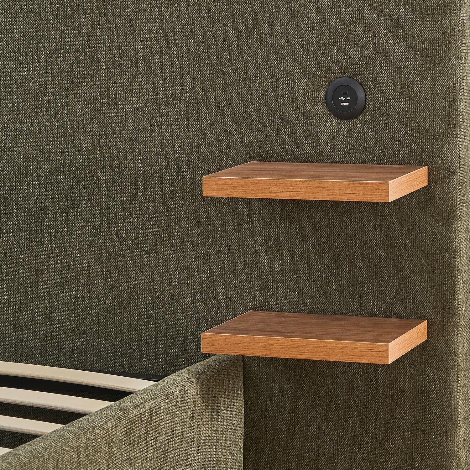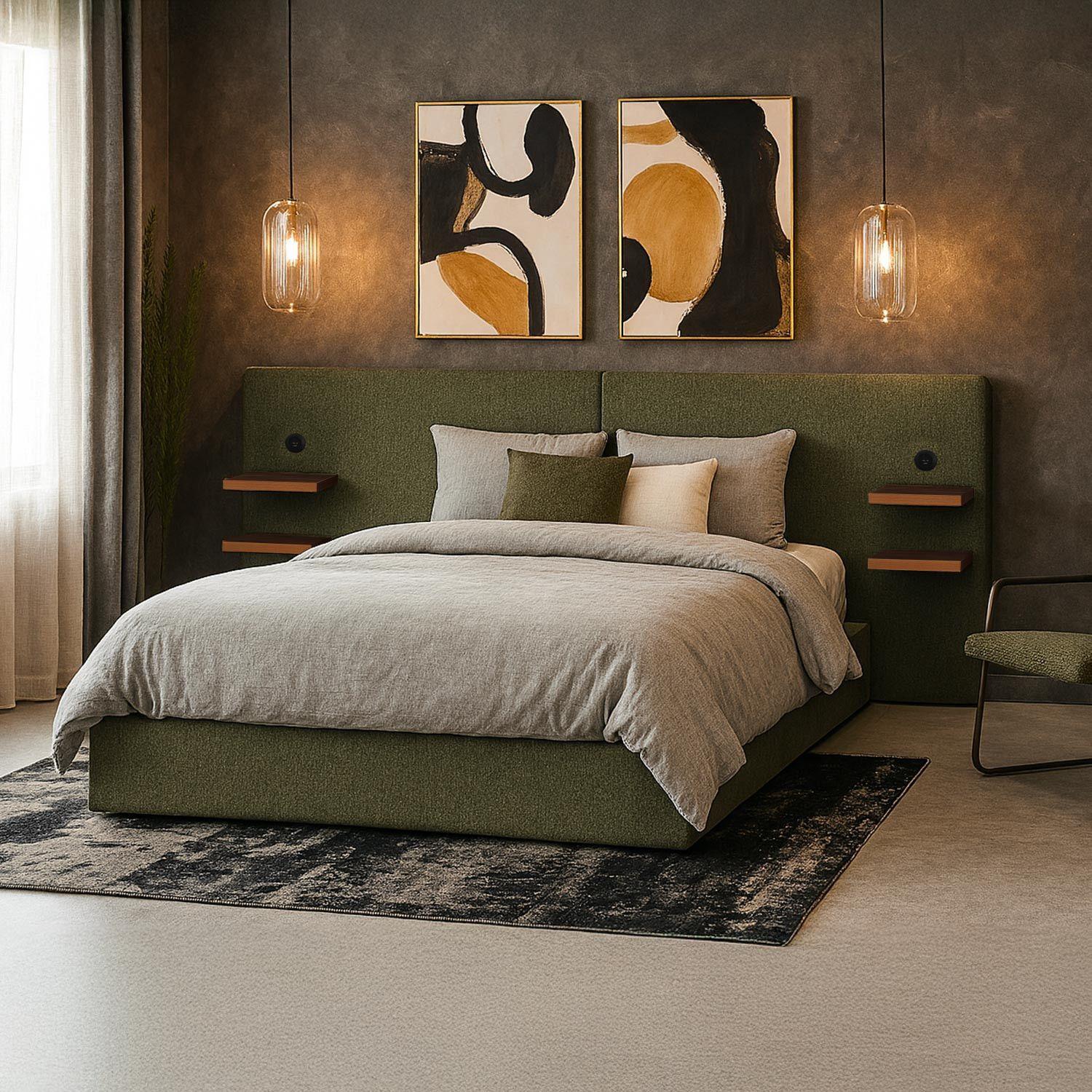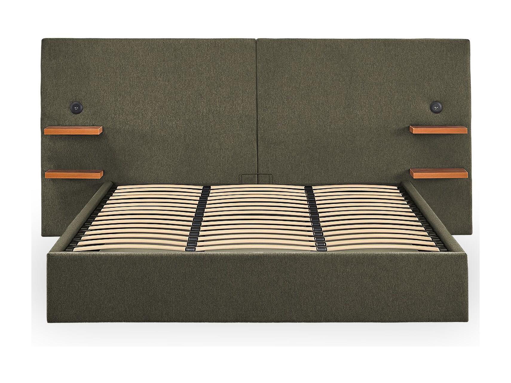 Lit-coffre complet avec tablettes et ports USB intégrés Lukas 180x200cm Tissu Vert