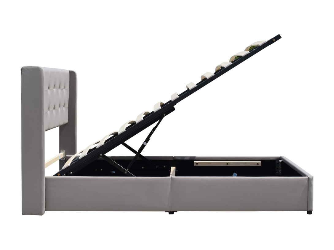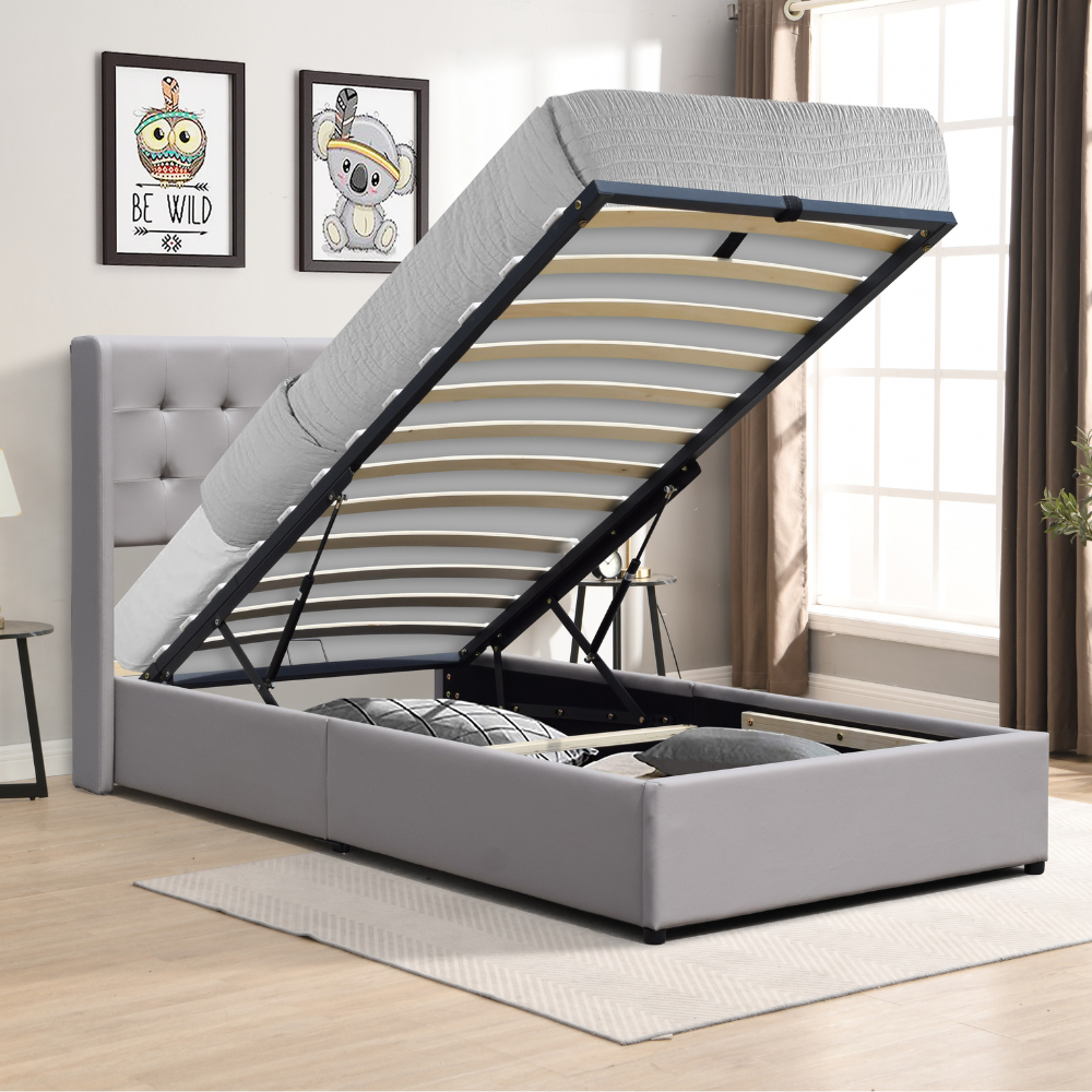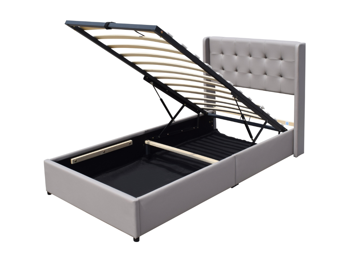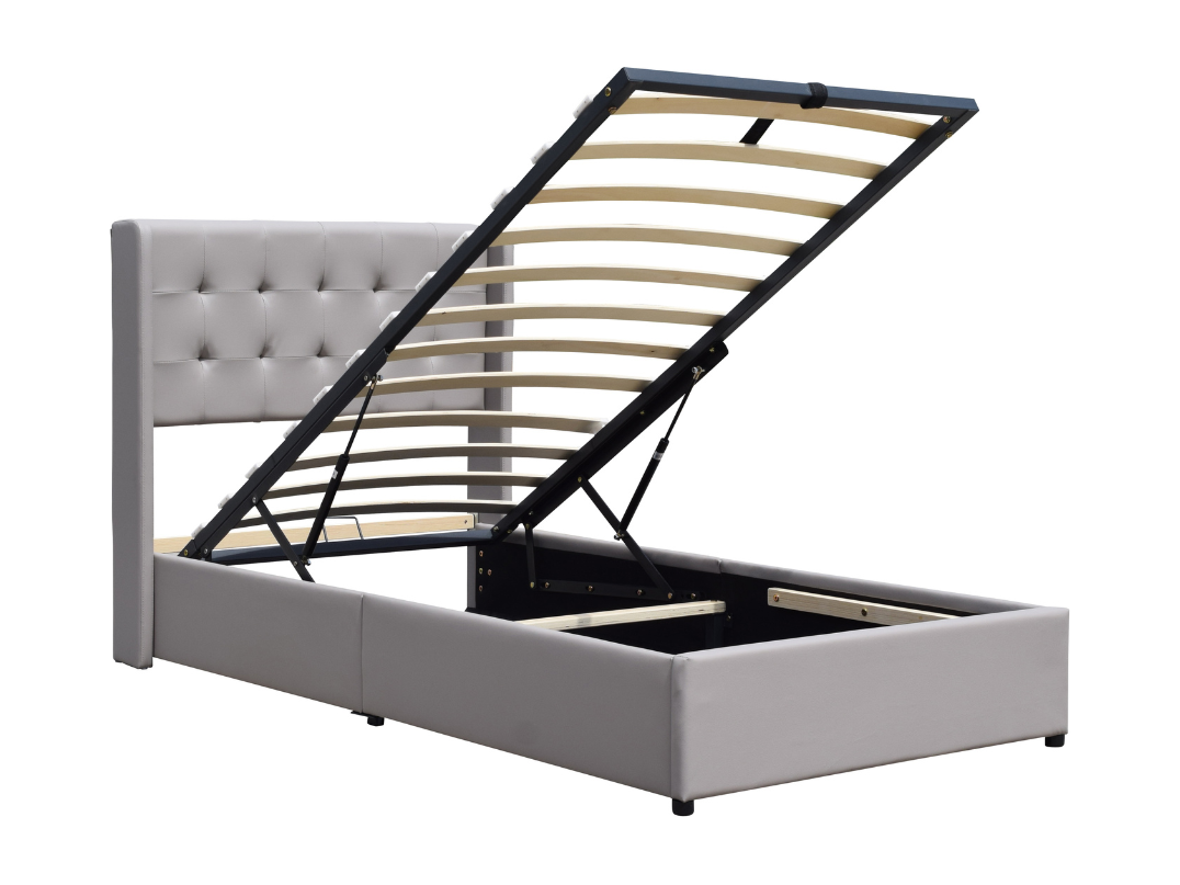 Lit coffre de rangement 120x190 cm avec tête de lit capitonnée et 12 lattes - Montage rapide et facile - Revêtement PVC simili facile d'entretien