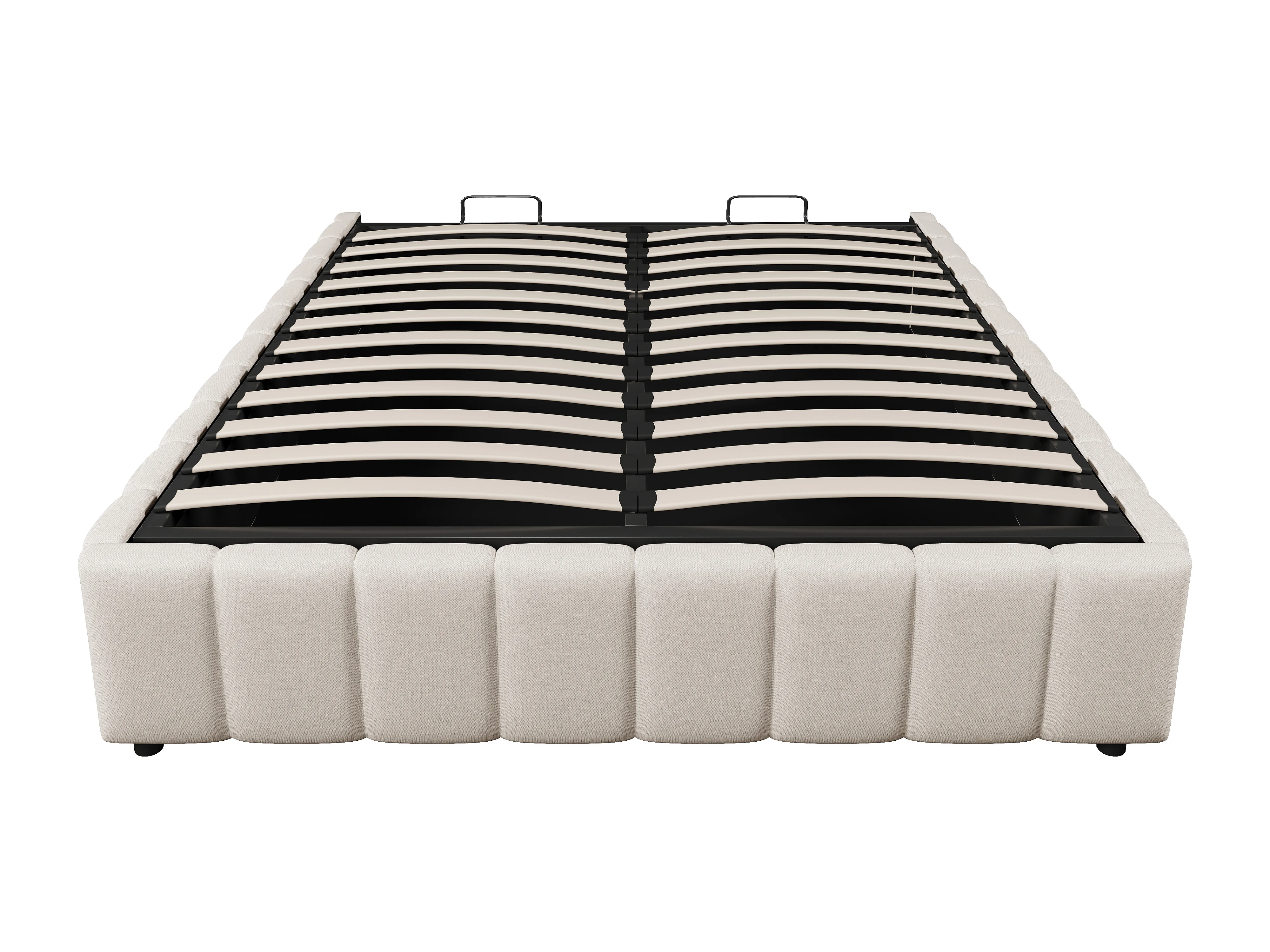 Lit coffre double 140 x 200 cm, tissu en fond, sans tête de lit, en MDF+ lin beige, sans matelas