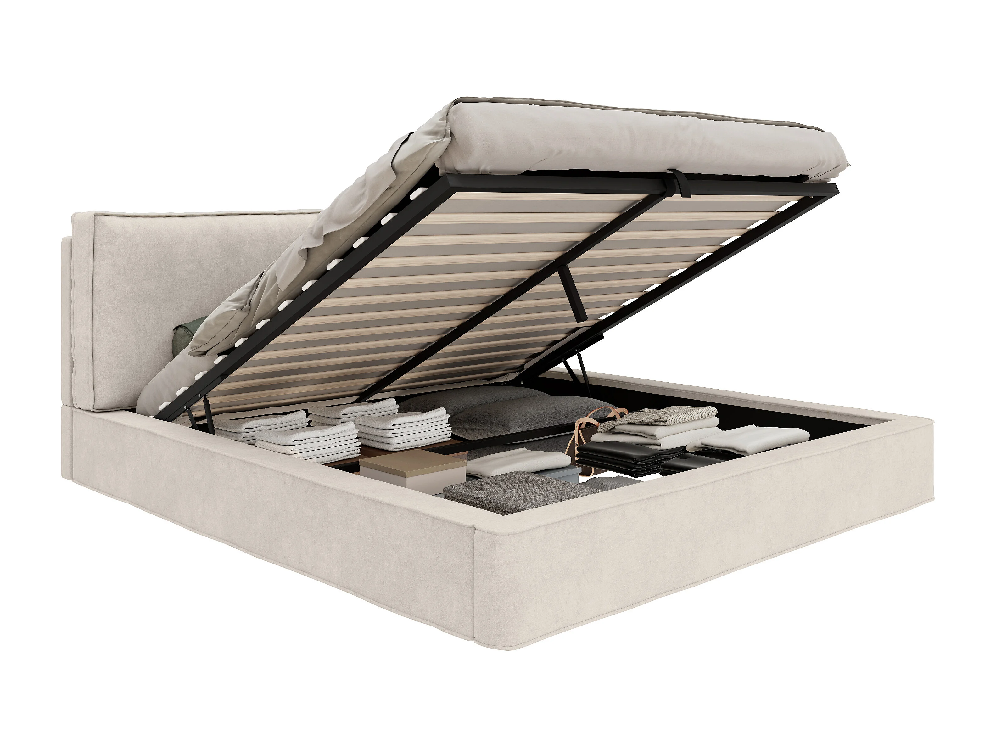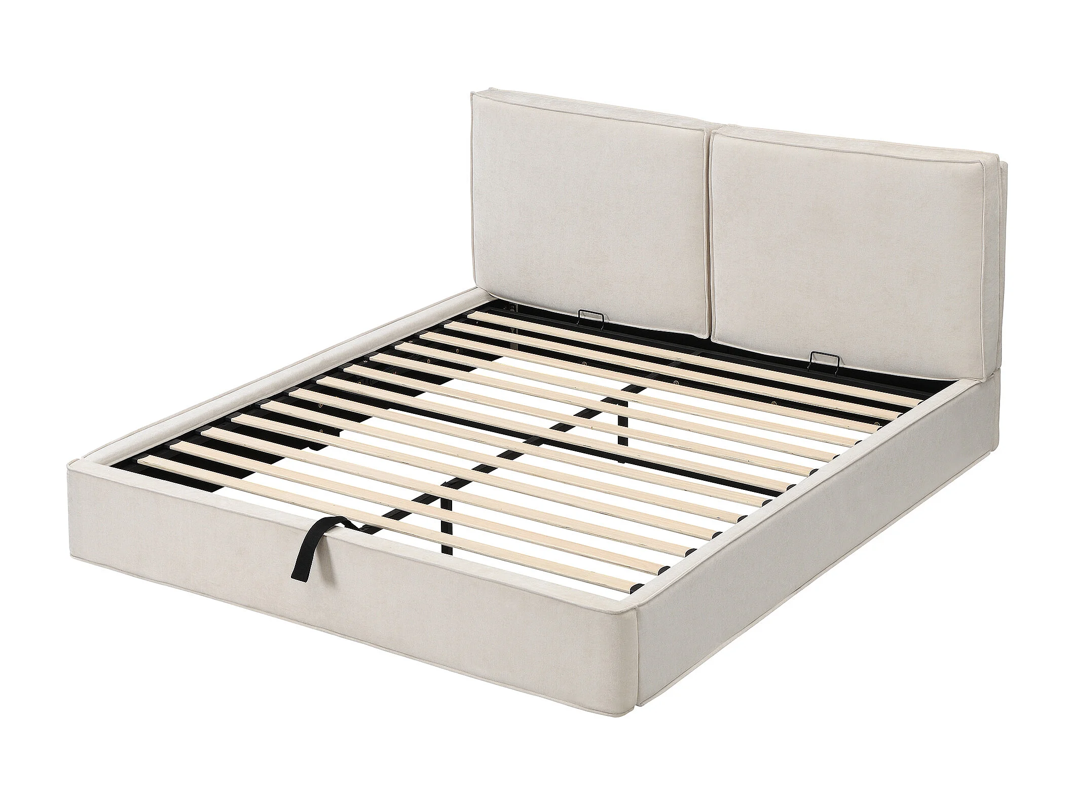 Lit coffre double 180 x 200 cm avec sommier à lattes - Lit capitonnée en chenille beige