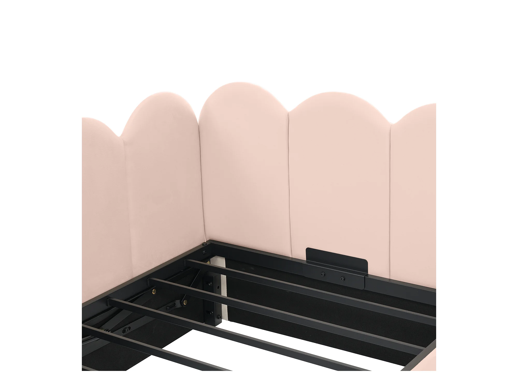 Lit coffre enfant 90x200cm, cadre en Métal, revêtement en velours rose, sans matelas