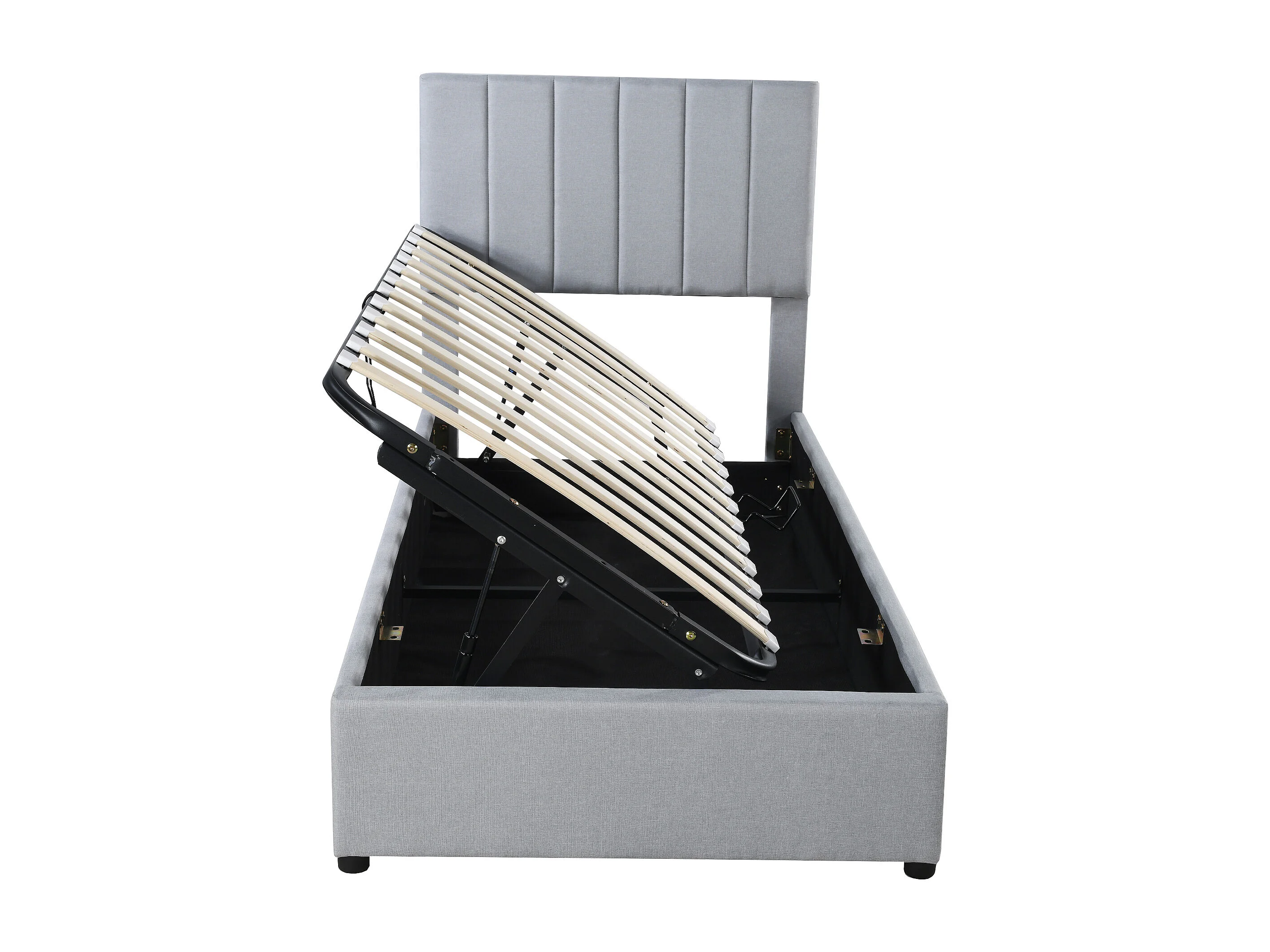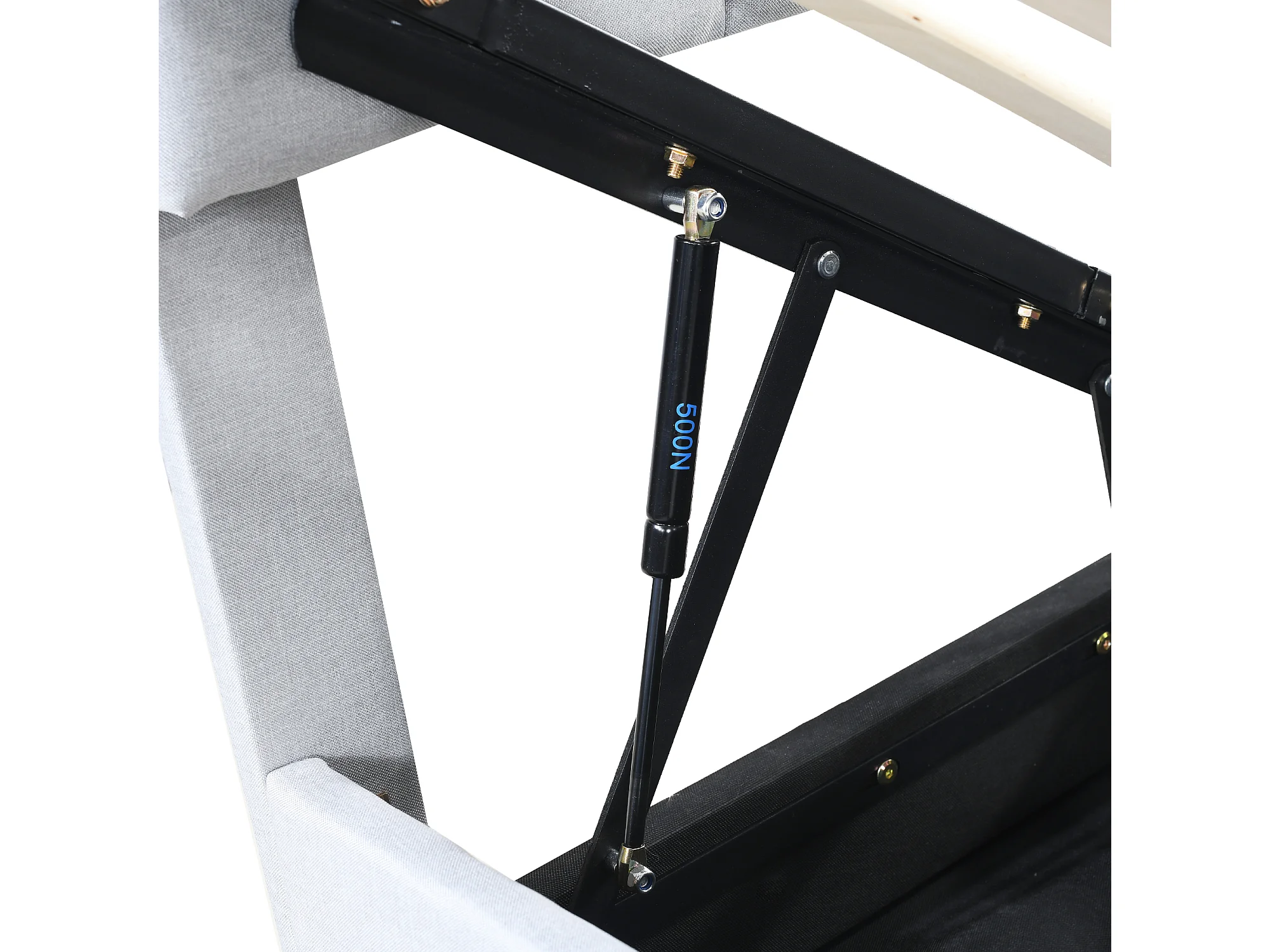 Lit coffre hydraulique enfant, tissu lin gris, rembourrage doux, multifonctionnel (203x90x105cm)