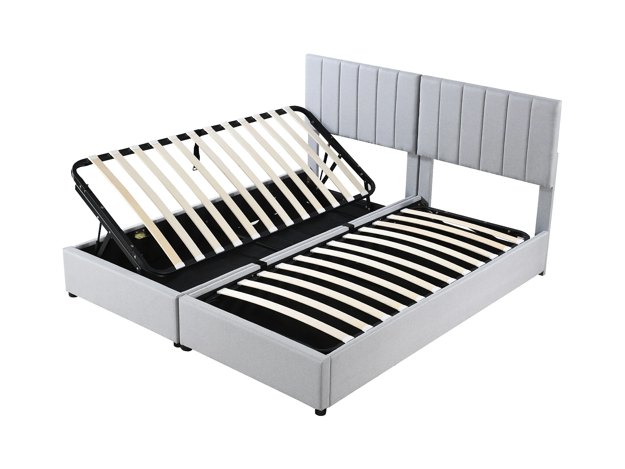 Lit coffre hydraulique multifonctionnel, lin, gris, cadre flottant rembourré (203x180x105cm)