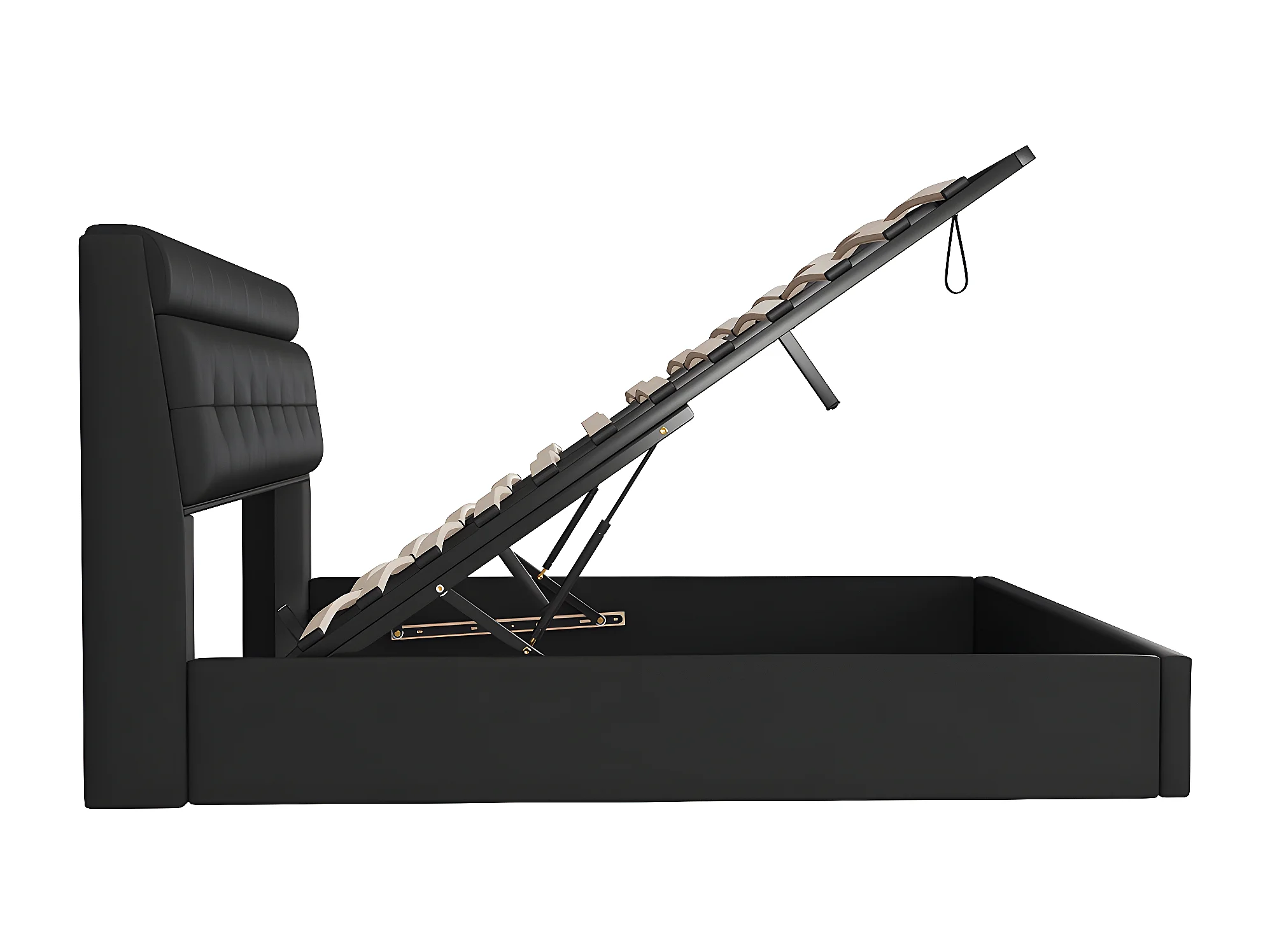 Lit coffre Lit 160x200 cm lit hydraulique rangement tête de lit caché avec sommier à lattes PU Noir