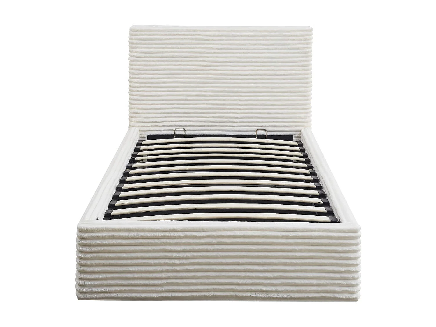 Lit Coffre MAIA 90x190cm Velours Côtelé Écru avec Sommier