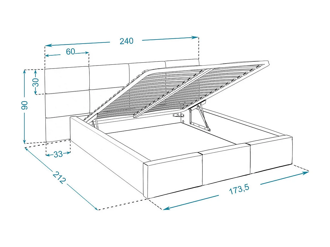 Lit coffre Miami 160 x 200 cm avec sommier à lattes relevable Gris Foncé