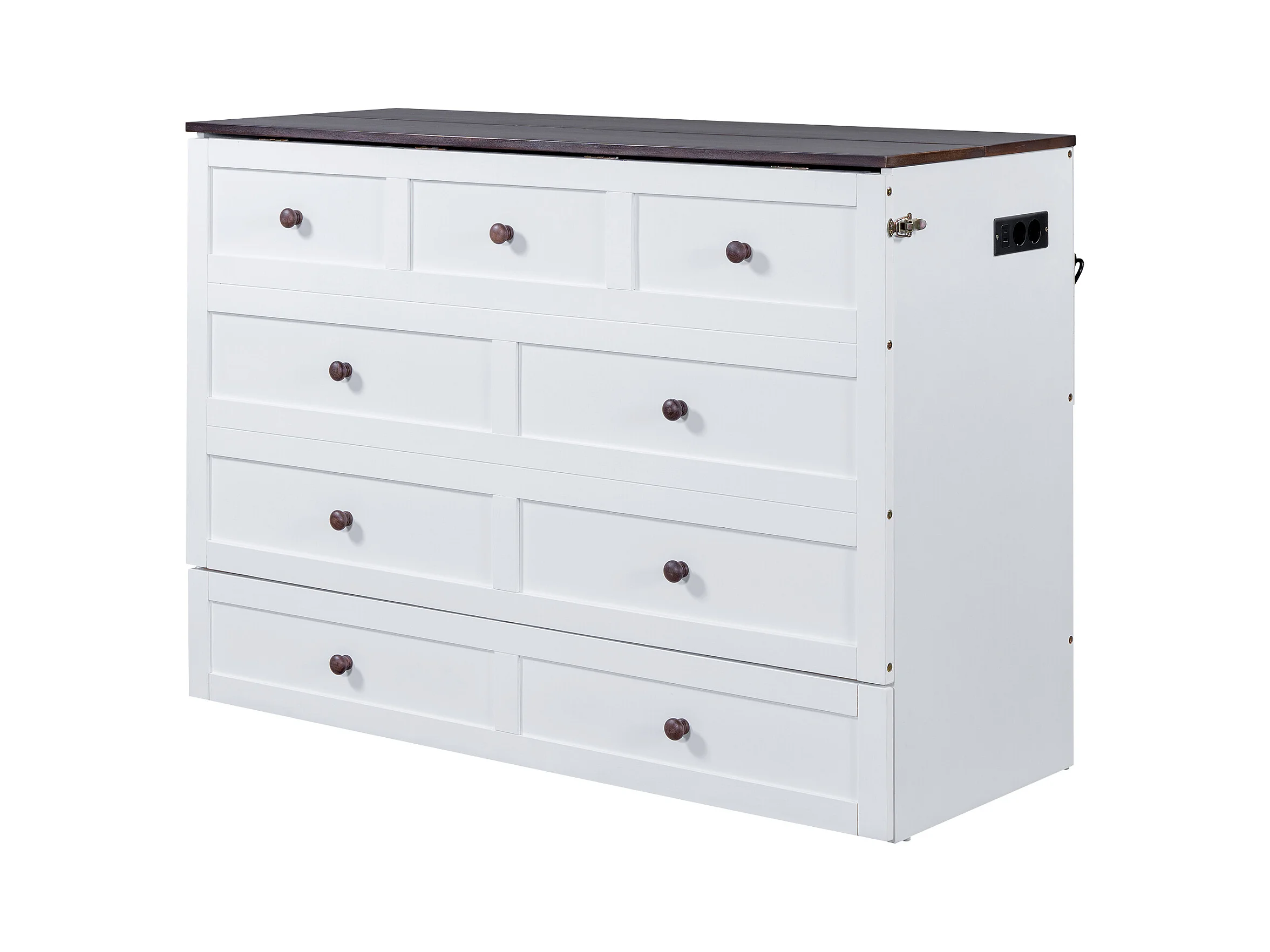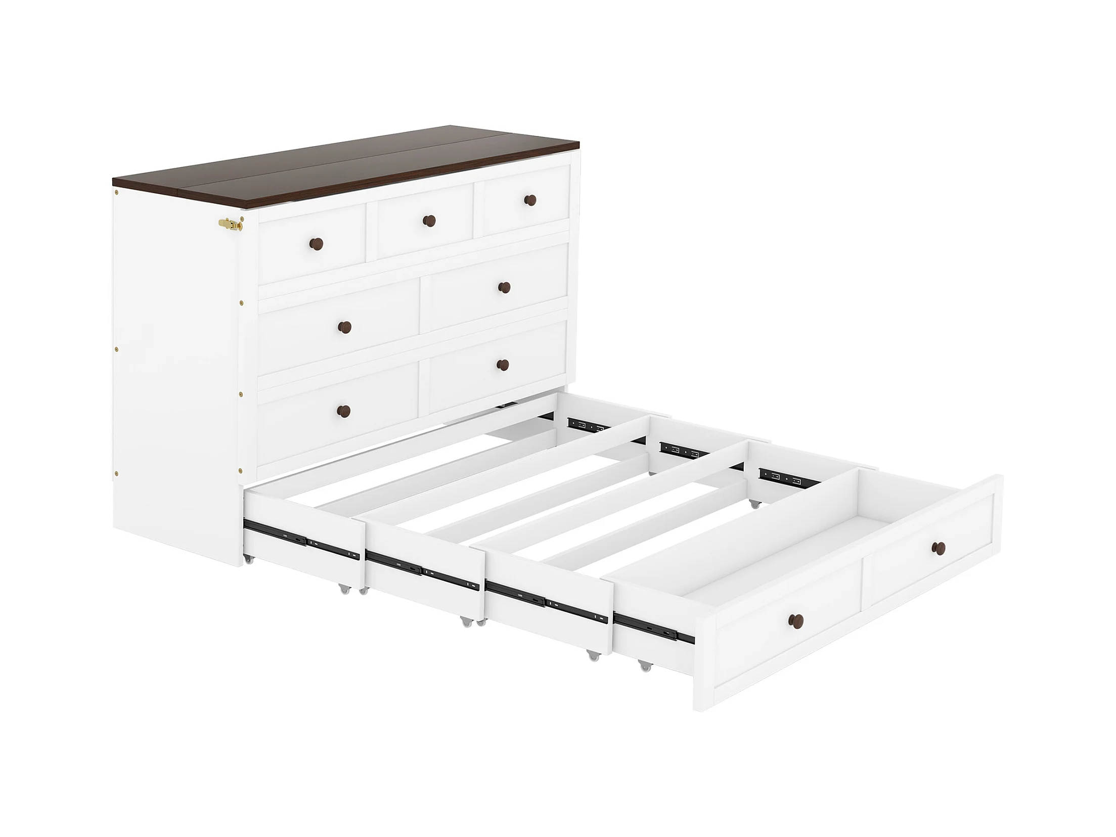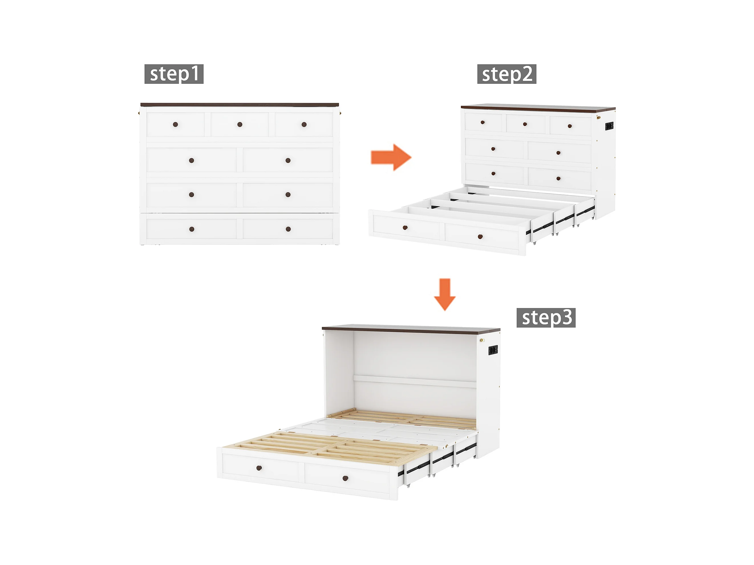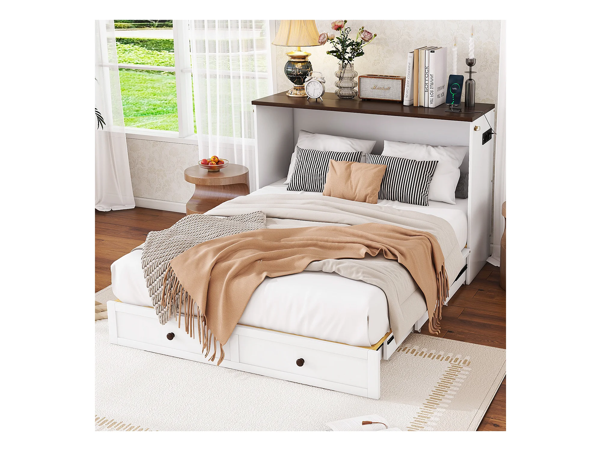 Lit coffre mobile 140x200 cm, lit avec tiroirs et étagère, design convertible avec prise USB, blanc