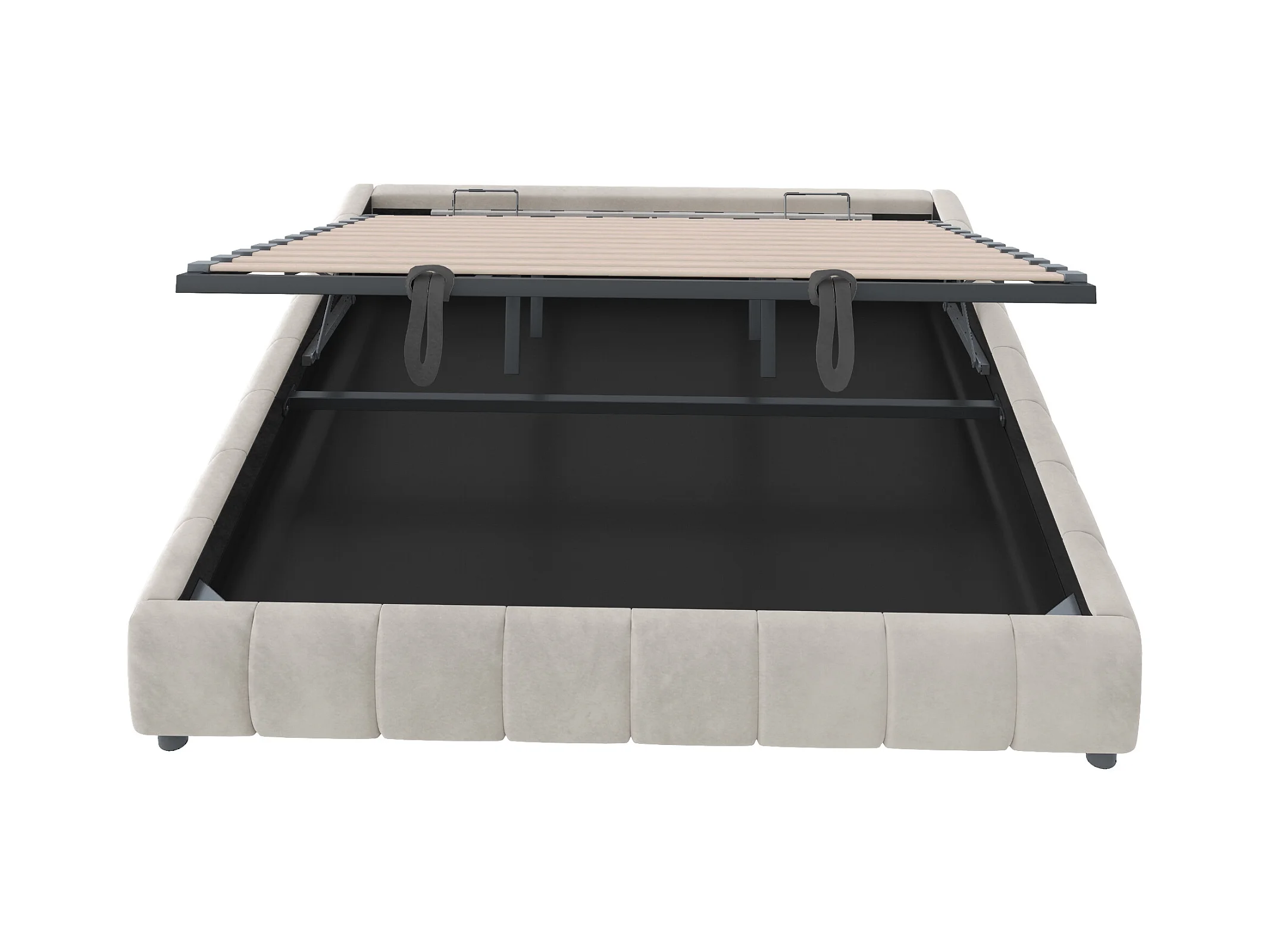 Lit coffre rembourré - 180 x 200 cm - sans tête de lit - avec Leds - velours + contreplaqué + MDF - beige