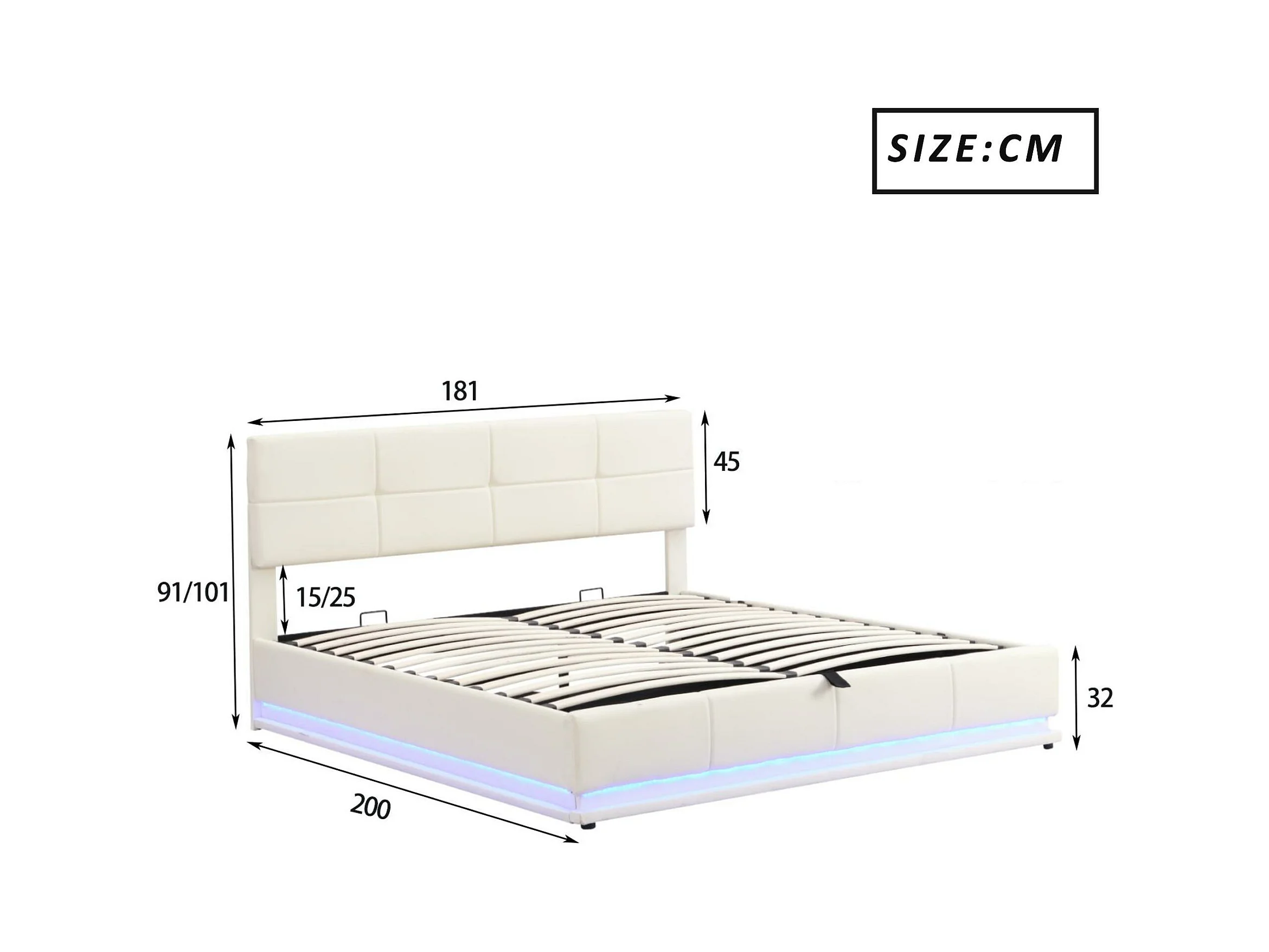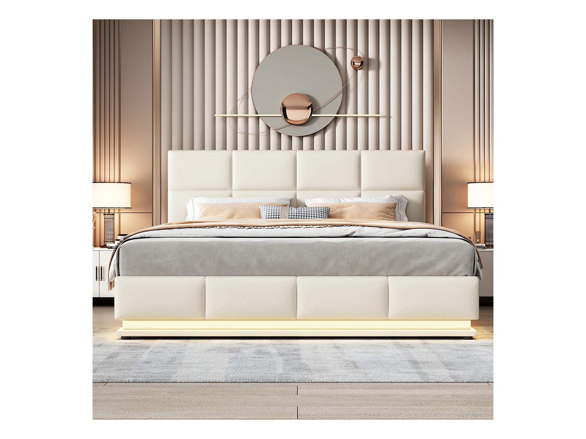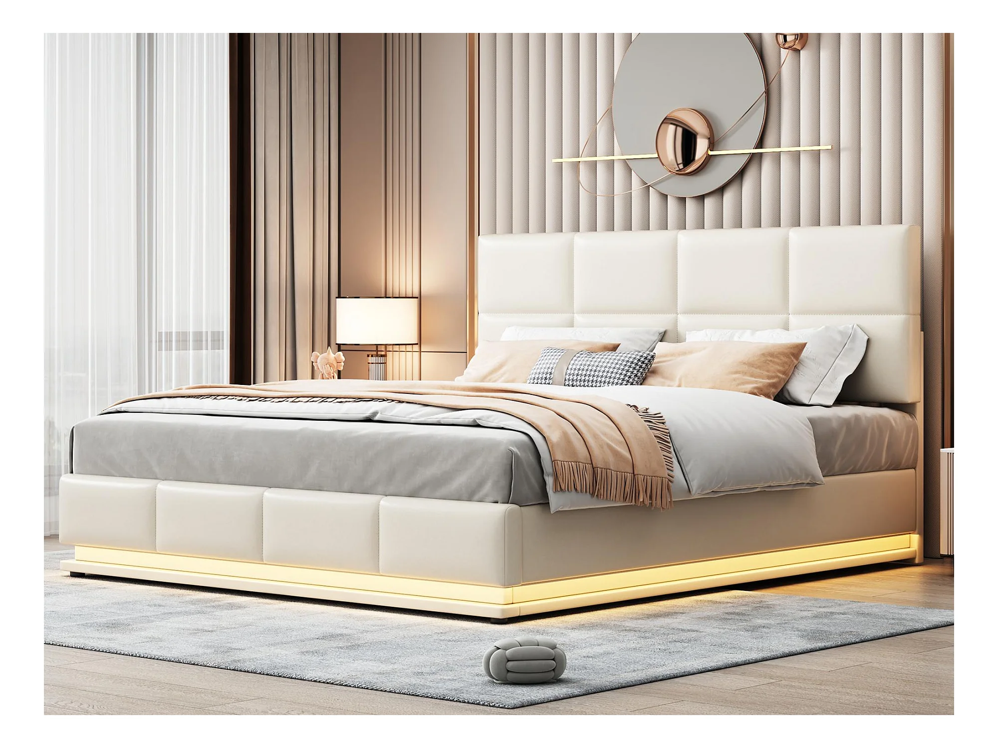 Lit coffre rembourré 180x200 cm avec éclairage LED - en similicuir - Beige
