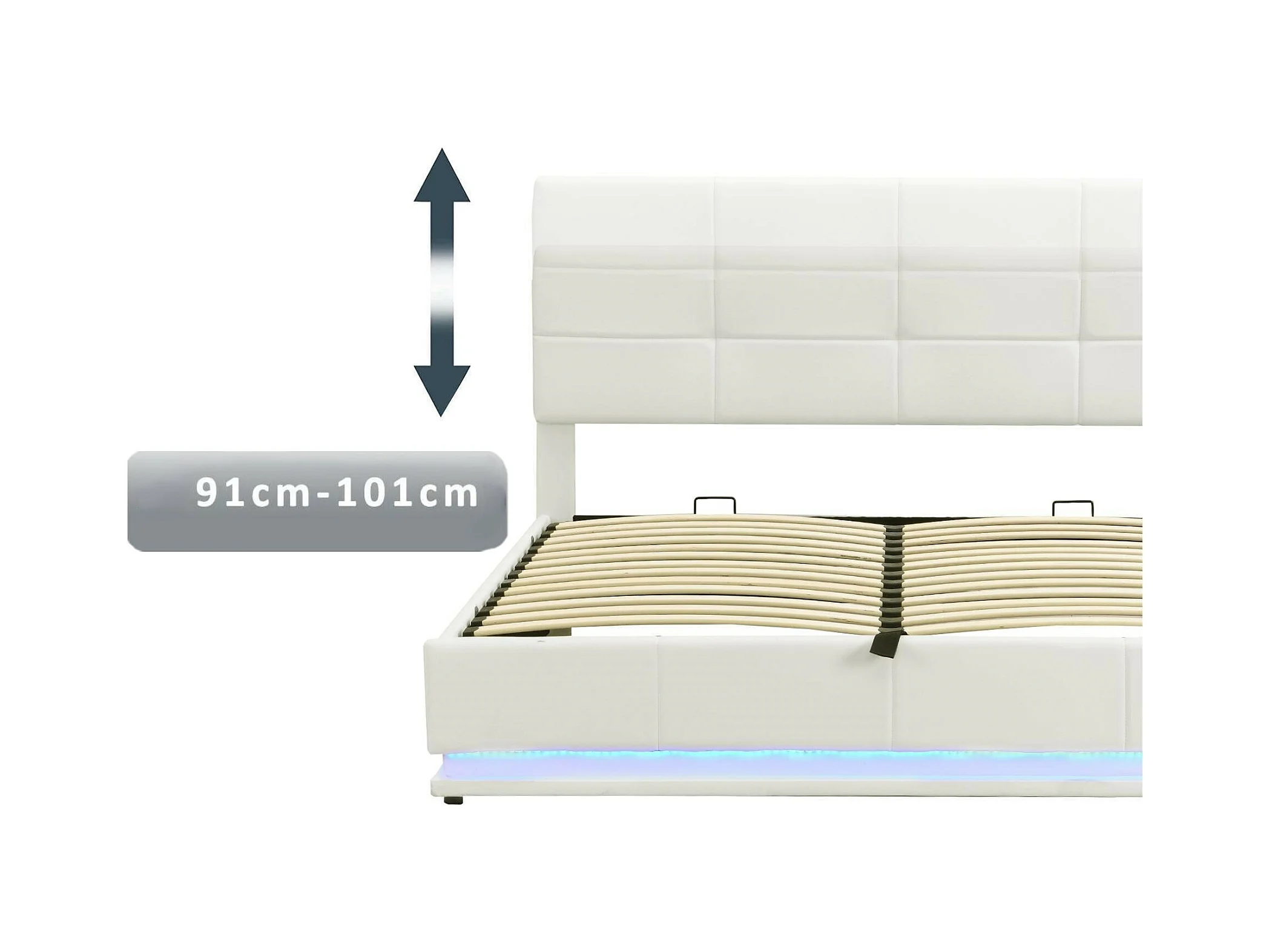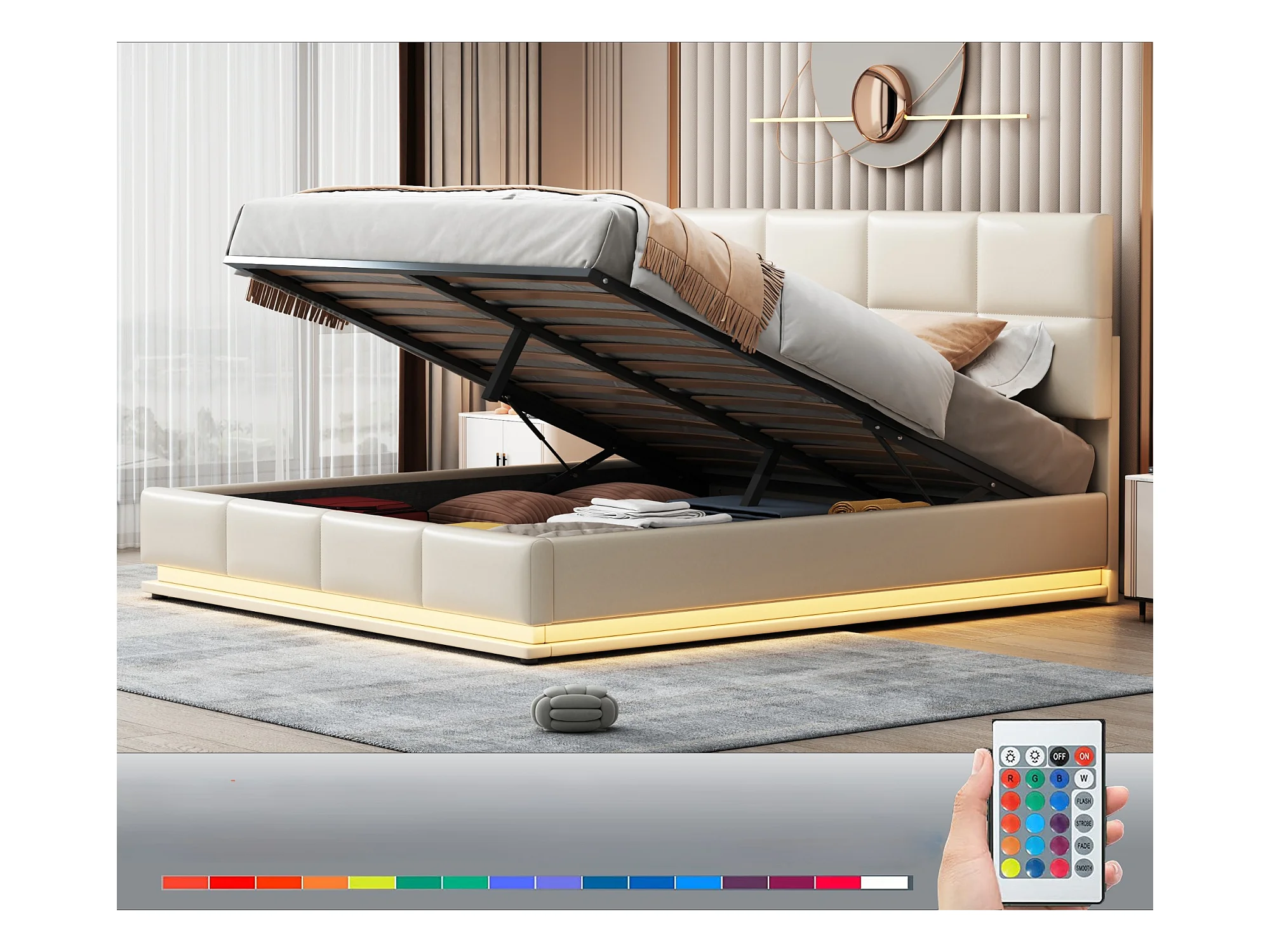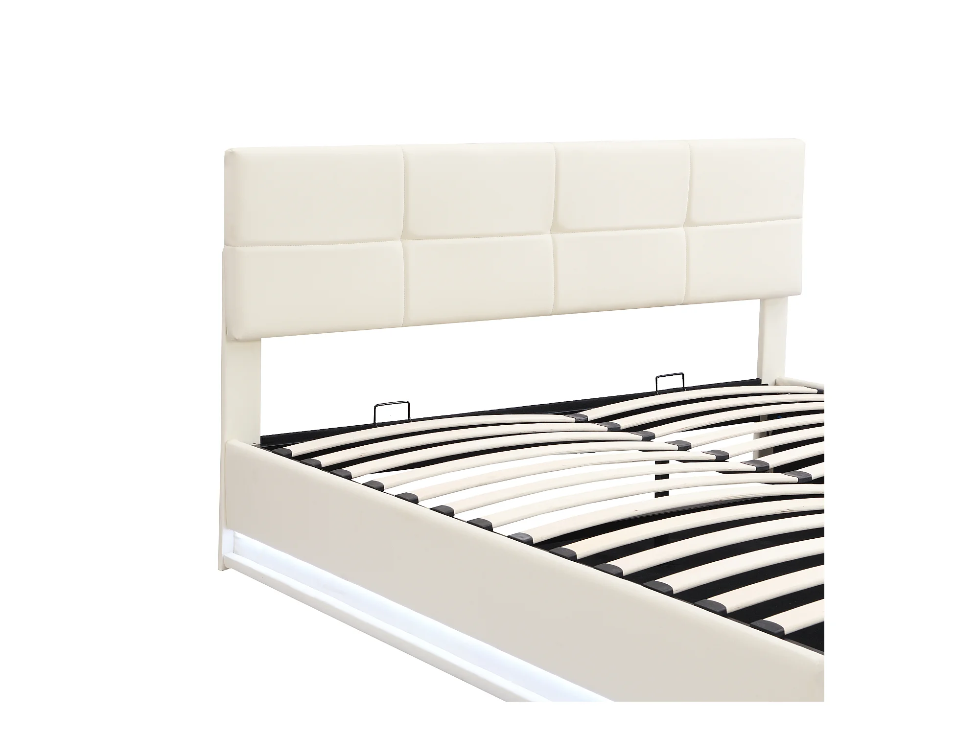 Lit coffre rembourré 180x200 cm avec éclairage LED - en similicuir - Beige