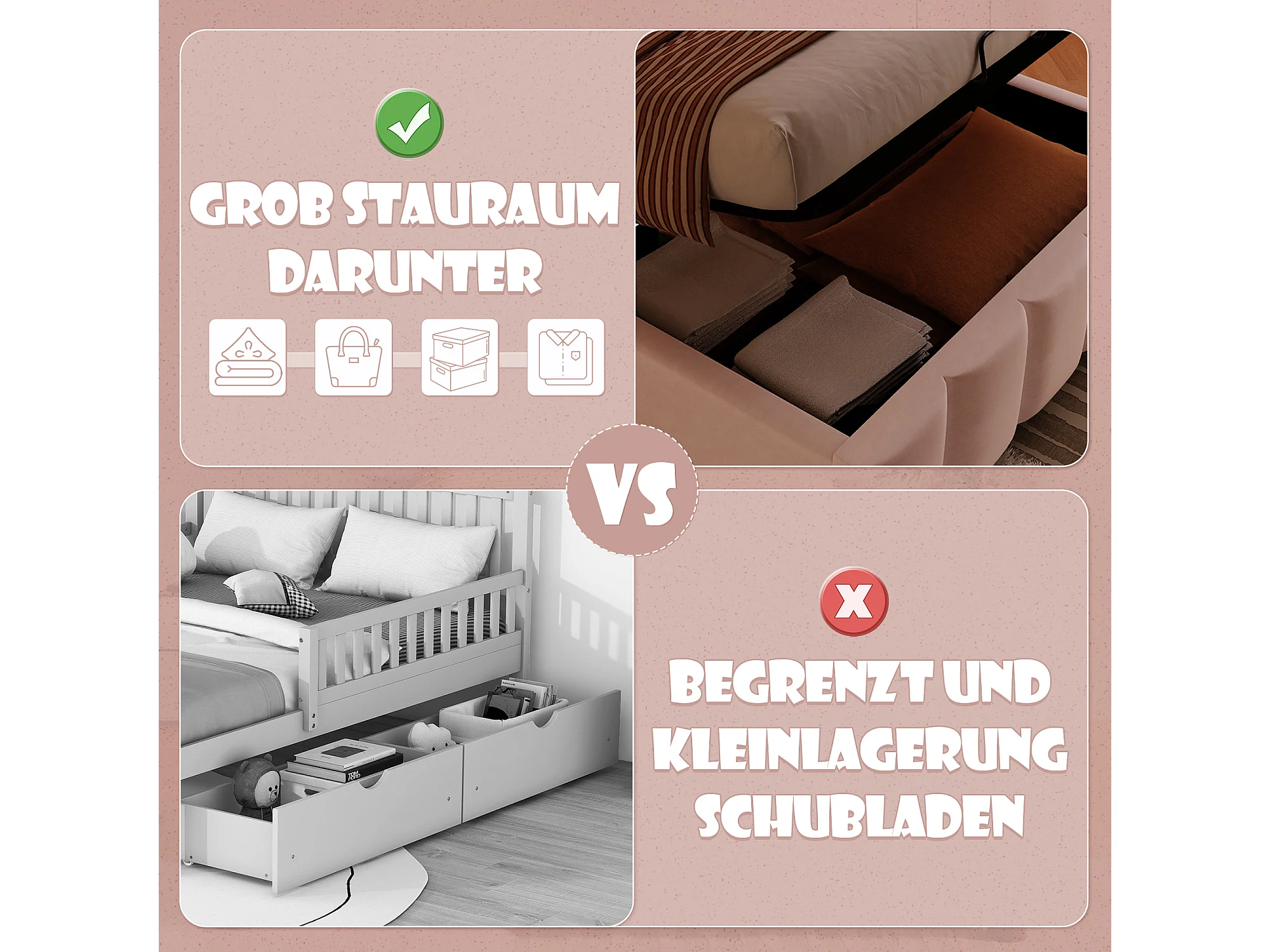 Lit coffre rembourré - 90 x 200 cm - avec rangement hydraulique + tête de lit réglable - velours - rose