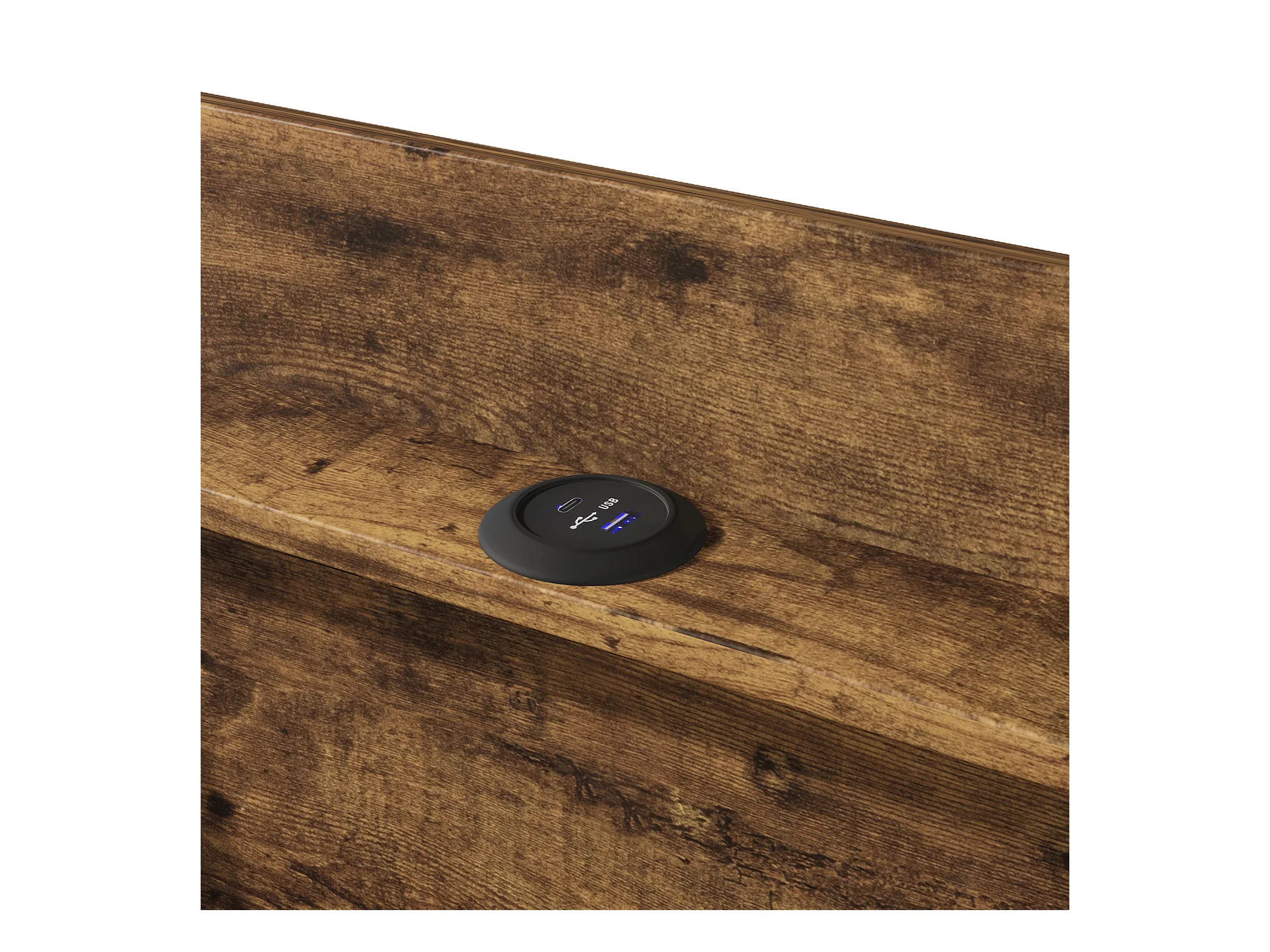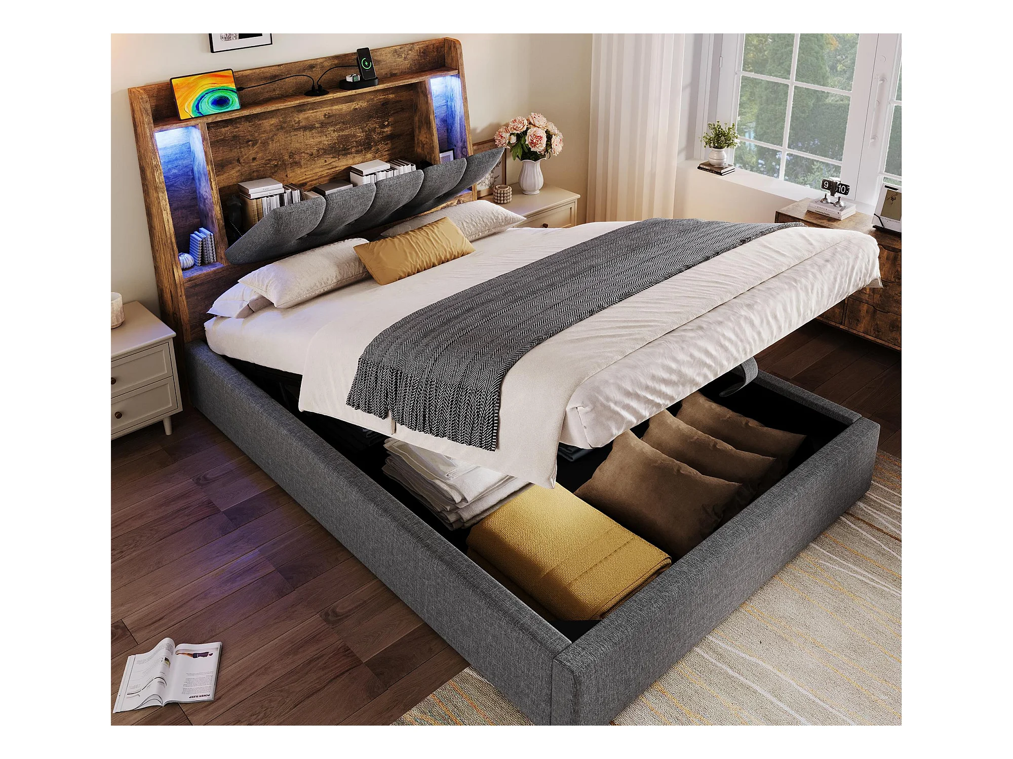 Lit coffre rembourré 90x200 cm - avec chargement USB Type-C - éclairage LED - lin - gris (matelas non inclus)